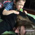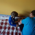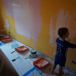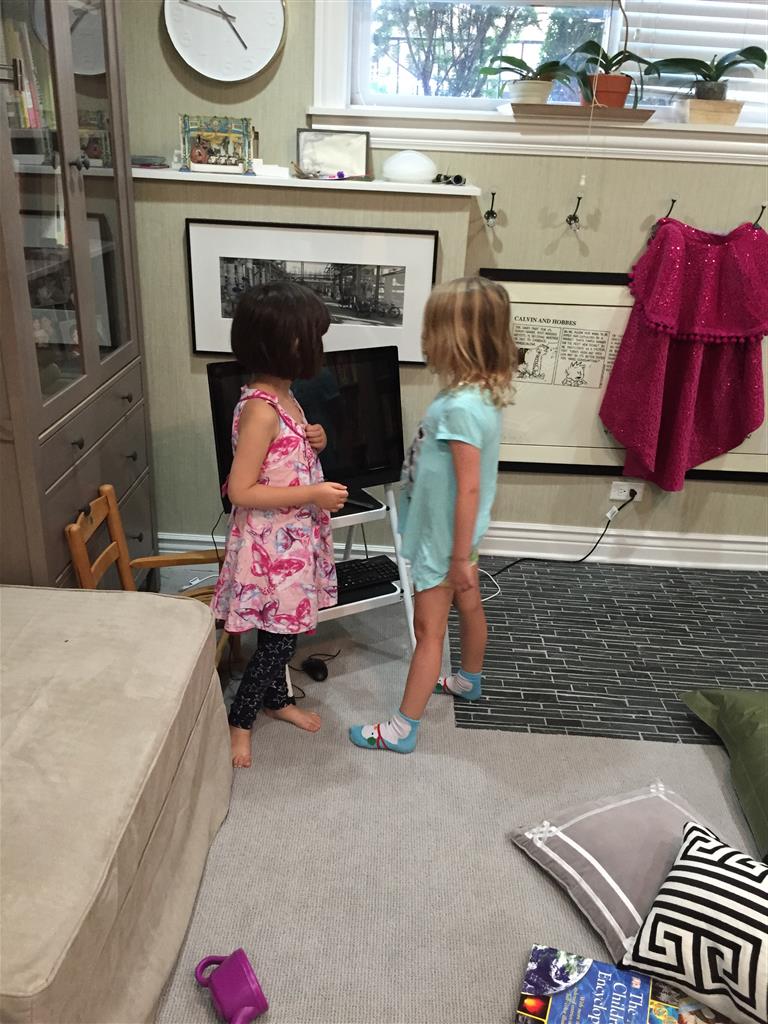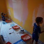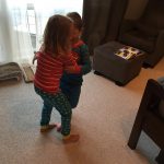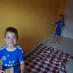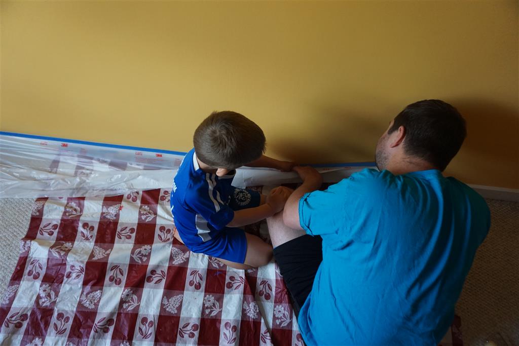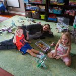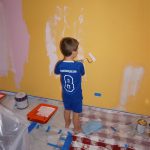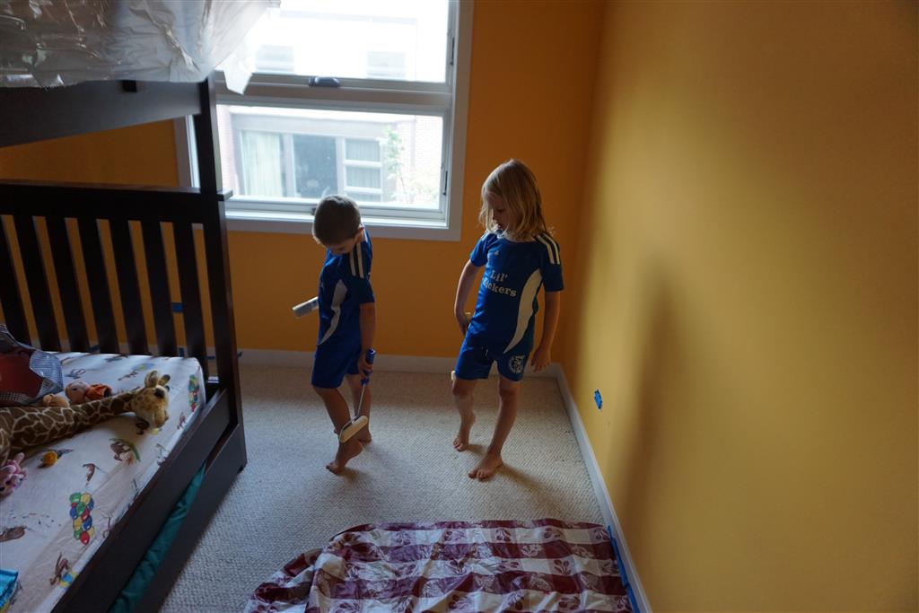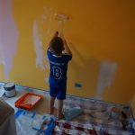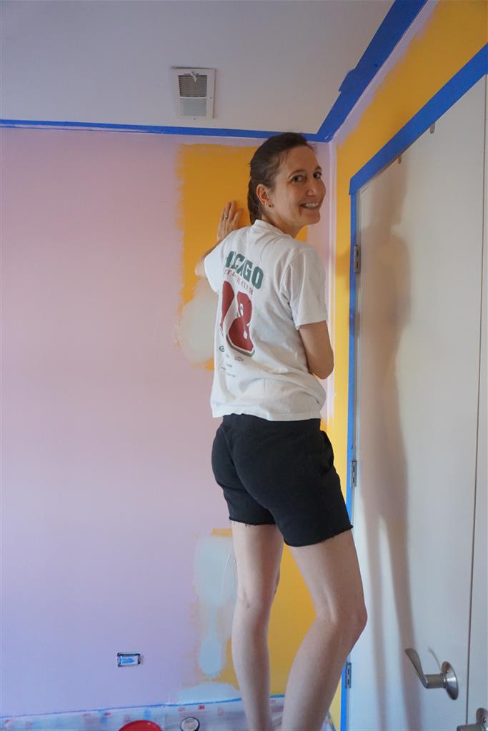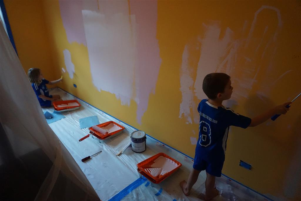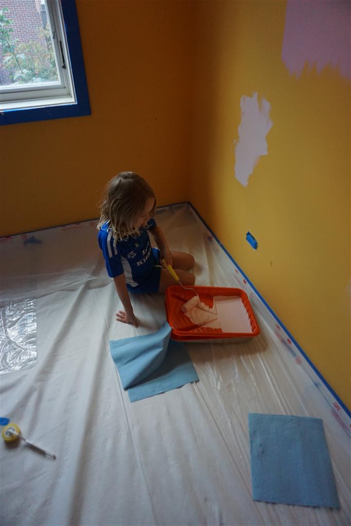 This week we finally got around to repainting Eleanor’s room. She had been asking to redecorate her room to a pink theme, and to take down the wall stickers and replace them with other things. So on Saturday we took a family trip to Home Depot and Eleanor picked out the color, and we got all the necessary supplies. We tried three different colors on the wall, and Eleanor’s original favorite was “Funny Face”, but we all agreed that “Funhouse” looked better once it was dry on the wall. It took a bit longer than expected to get everything ready, but finally after dinner Eleanor and Henry were able to start painting on the walls. They ended up loving it, and we painted together for about 90 minutes, during which they did the lower half of three walls. On Sunday we finished up the last wall and some edges – we’ll let it dry and then she should be back in her room on Monday :)