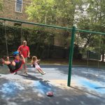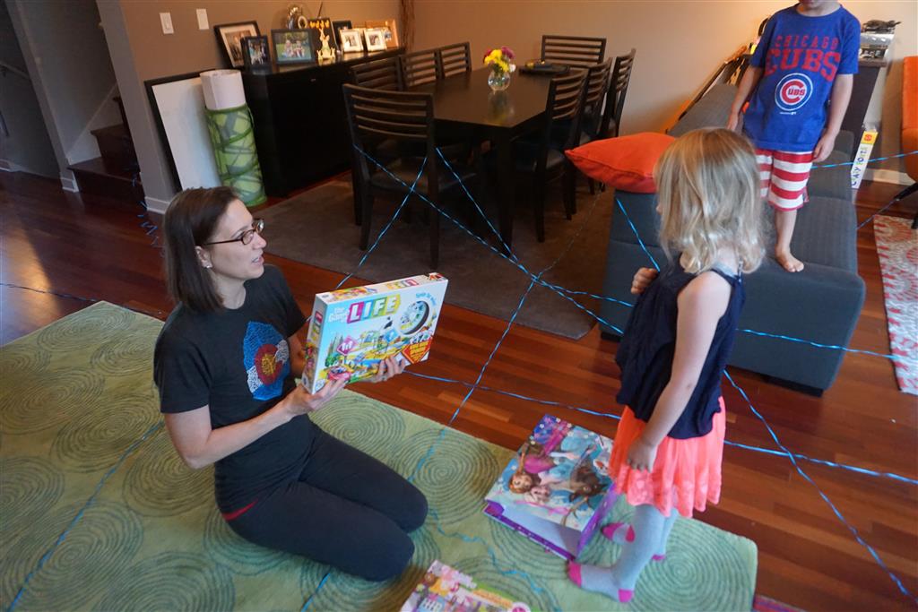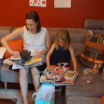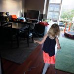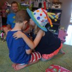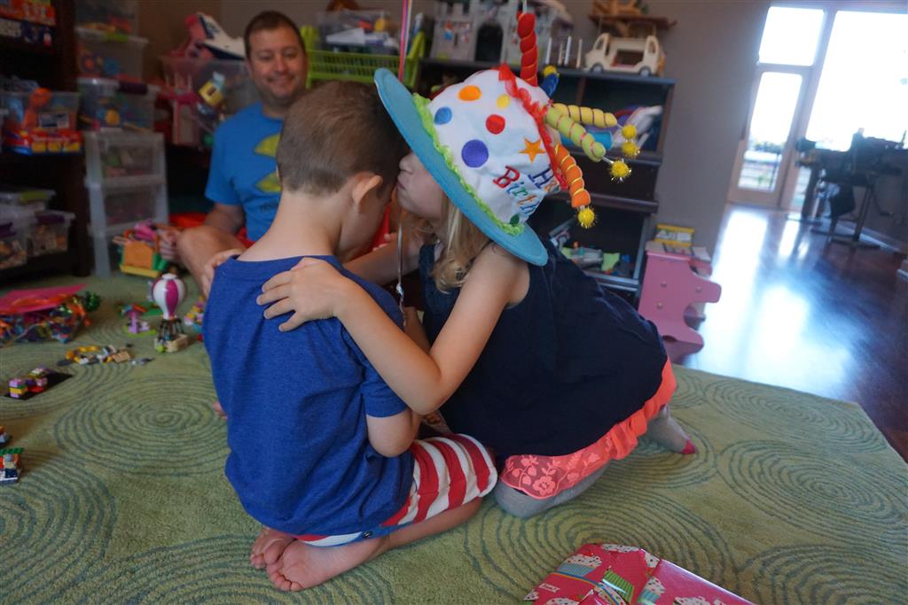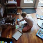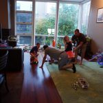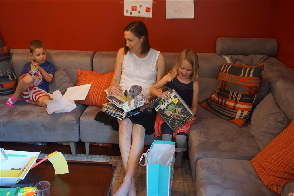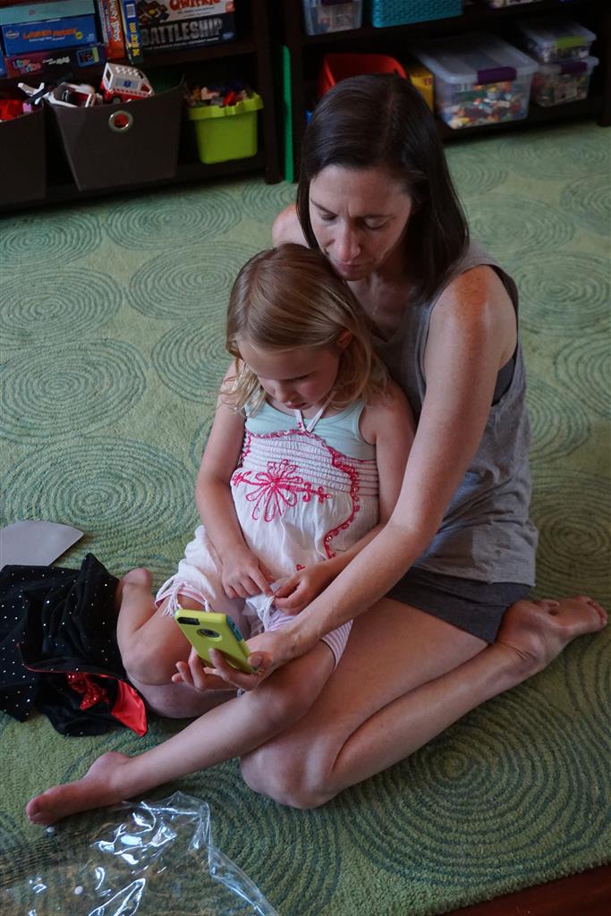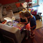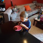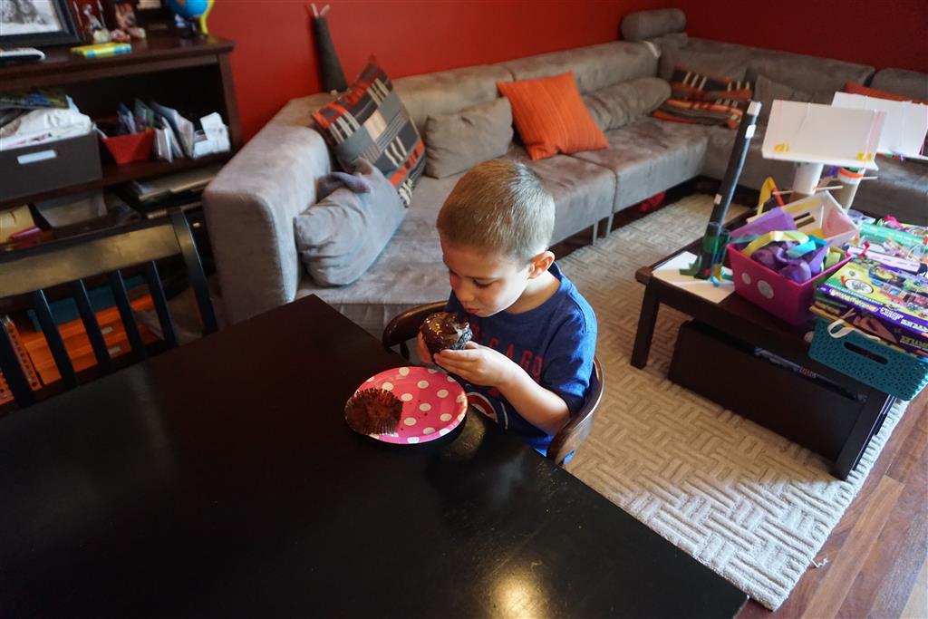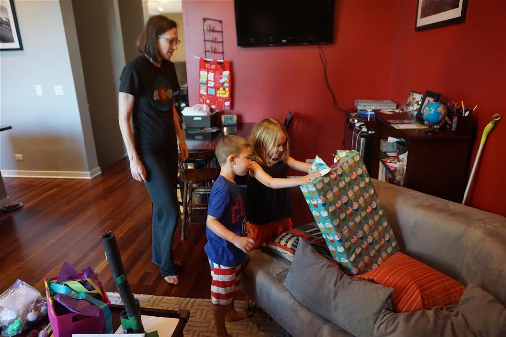 Eleanor was excited to celebrate her sixth birthday this week. She had been considering plans for a while, and had plans for all three meals of the day, as well as activities throughout the day and sleeping arrangements for the night before and night of. We started festivities with a slumber party with Mom on the night before. Eleanor awoke to the string trail ready to do – and after waiting a bit for Mom and Dad to get around, we followed the string downstairs and opened up presents along the way. Then, it was off to Whole Foods for breakfast with Lala, and then back home for more playtime with new toys. Eleanor had a lunch spot picked out, but decided to just have lunch at home so that we could have more playtime. Lala and Uncle B joined us later that afternoon for birthday cupcakes. Dinner was mac and cheese at home, and then off to bed. Eleanor and Dad had a slumber party, and Mom and Henry had one as well. All in all a successful birthday!