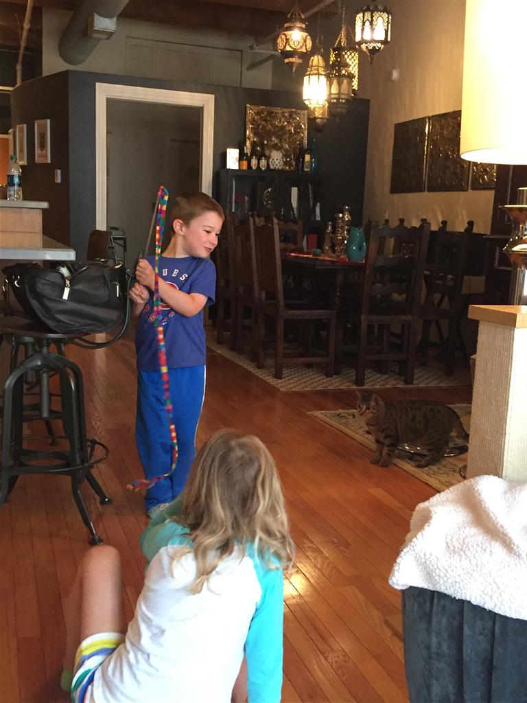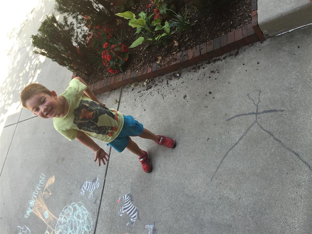 Earlier in the week, the kids had a fun trip to the zoo, and later that afternoon while doing sidewalk chalk, Henry drew his first ever stick figure, which he was very proud of. They also had a fun afternoon visiting with Tia and her two cats, and Cousin Kristen, who was in town for the day.