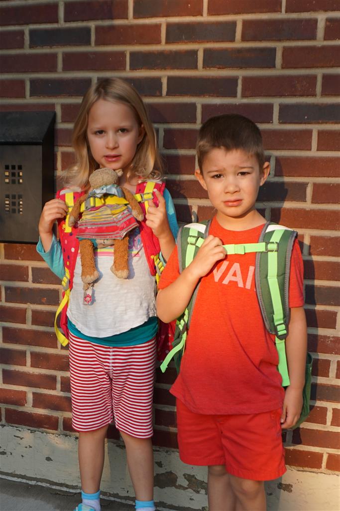 It was back to school time for Eleanor and Henry this week. Eleanor wasn’t particularly looking forward to heading back to school, but Henry was pretty excited. He has the same kindergarten teacher that Eleanor had, so he knew what to expect. He is really looking forward to going to the same school as Eleanor, and to making some friends in his new class. All things considered, the week went well. Henry had to utilize his spare close on day #2, and while asking him about it, we found out that he had an accident on day number 1 as well, but “just let it dry”. Poor guy. Turns out there is a rule that you can’t get up to go potty during rest time, and both days he neglected to plan ahead. Days three and four were accident free, so hopefully he has that part figured out. On the down side, on day 3 he asked someone to be his friend and the other kid said “No!” and held his hand out like a stop sign. Poor Henry. He is so anxious to have friends like Eleanor does that I think he comes off a bit intense. We have told him not to ask kids to be his friend, but just to play with them instead. On Friday he found two kids who “also like super heroes”, and he reported that they are now his best friends.
