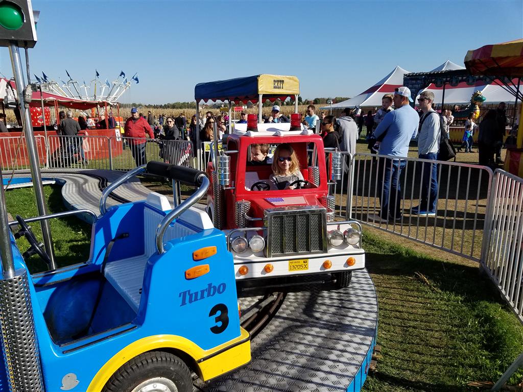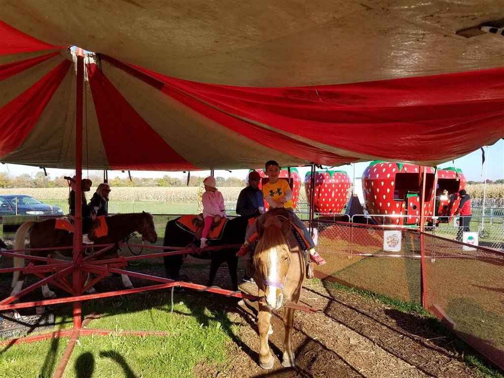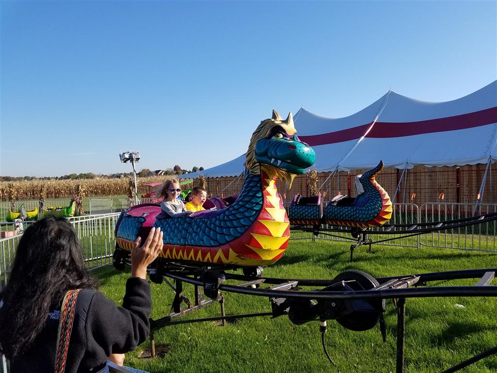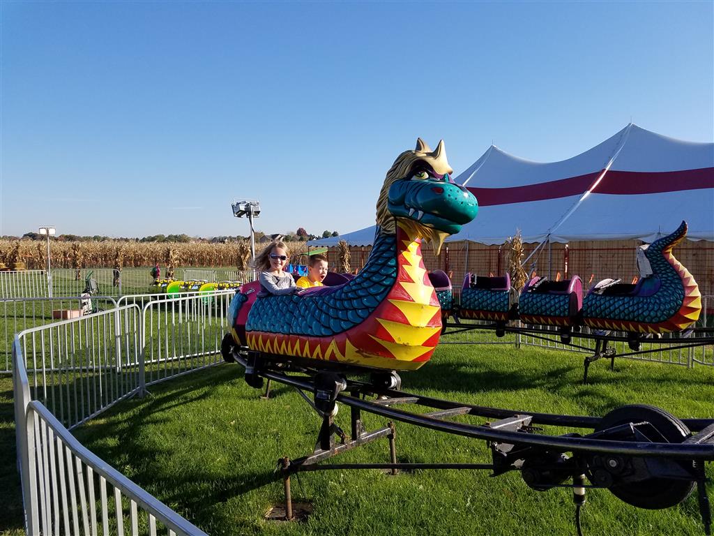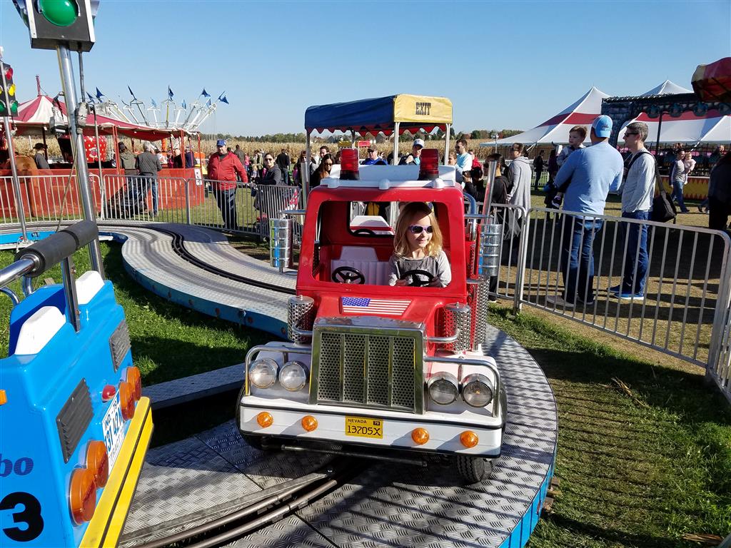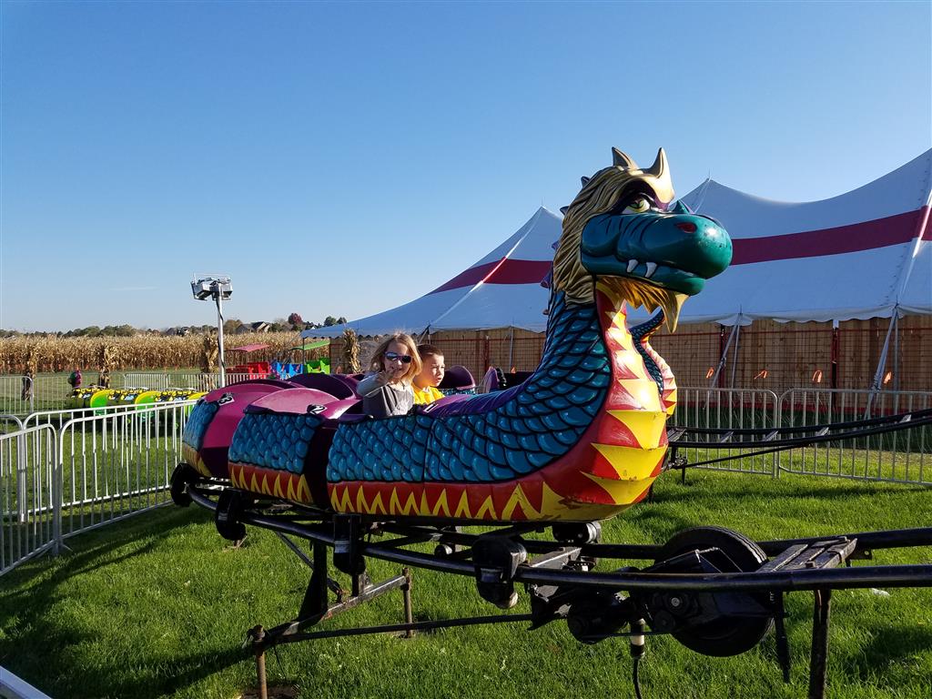 This week Eleanor and Henry headed out to Didier Farms for their annual Fall Festival. Eleanor was disappointed that they didn’t have the funhouse ride, but all in all we had a good time. Henry’s favorite ride was the Mini Himalaya, and Eleanor’s favorite was the Dragon Roller Coaster. Eleanor loved the first loop on the Himalaya, but she was on the outside of the car, and Henry started squishing up next to her, and she was unhappy the rest of the ride. Hopefully I caught the change of expression on the video. We also had fun with the pony rides, a hay ride, and the petting zoo. Both kids loved feeding the animals carrot sticks, and then we got to watch a pig race – a first for Dad too! The winning pigs were named Dale Earnhog and Lindsay Loham. The Emcee of the pig race was quite a jokester!