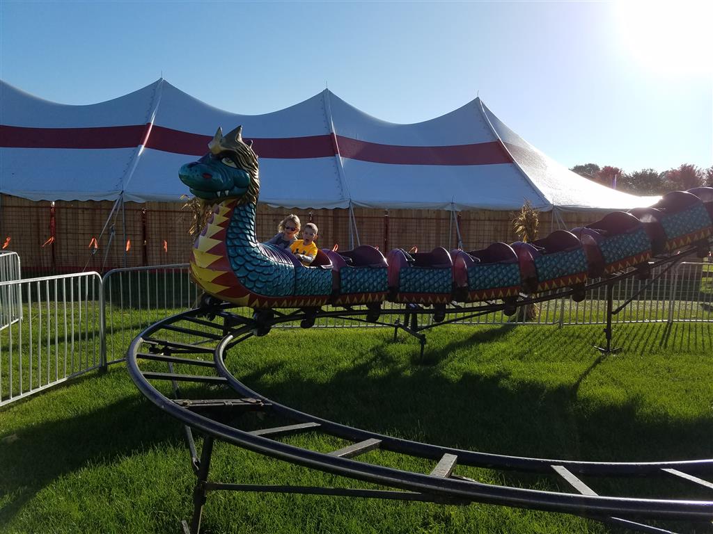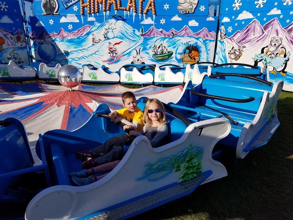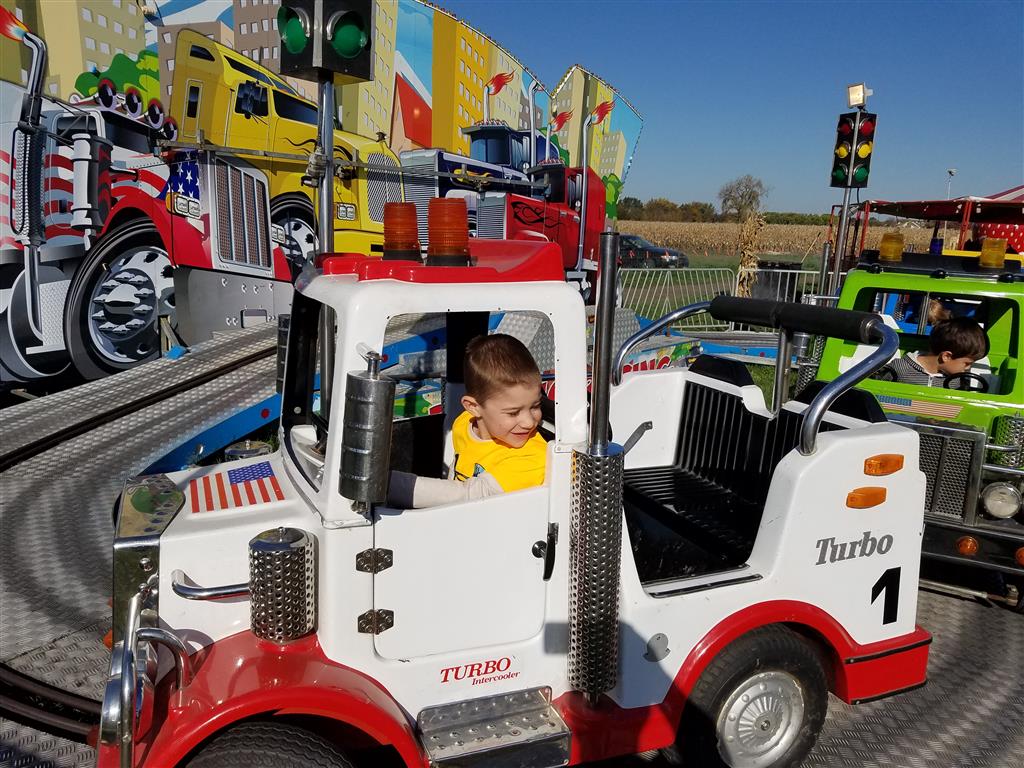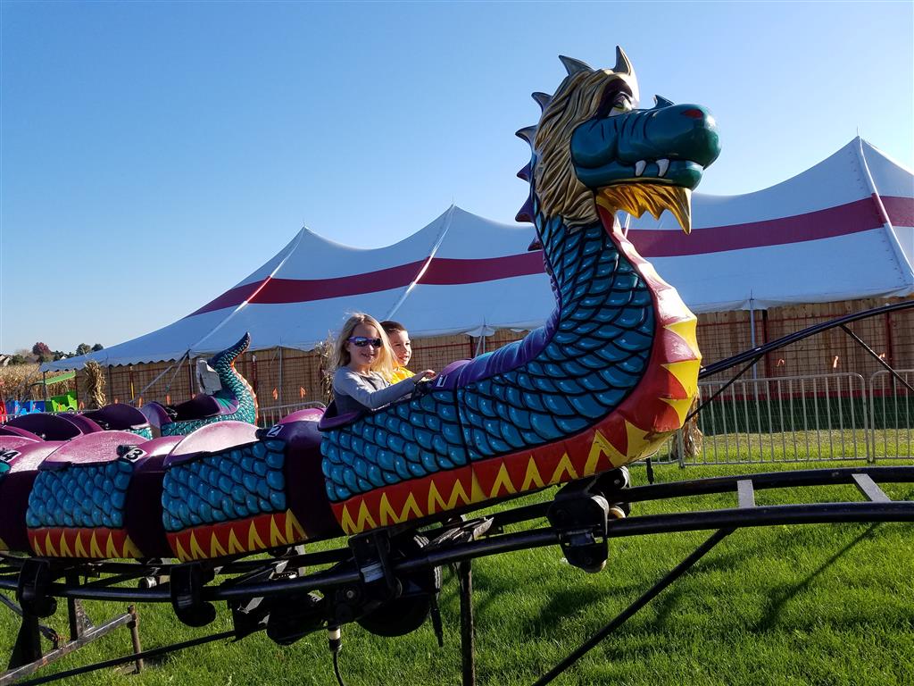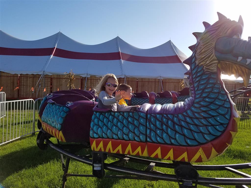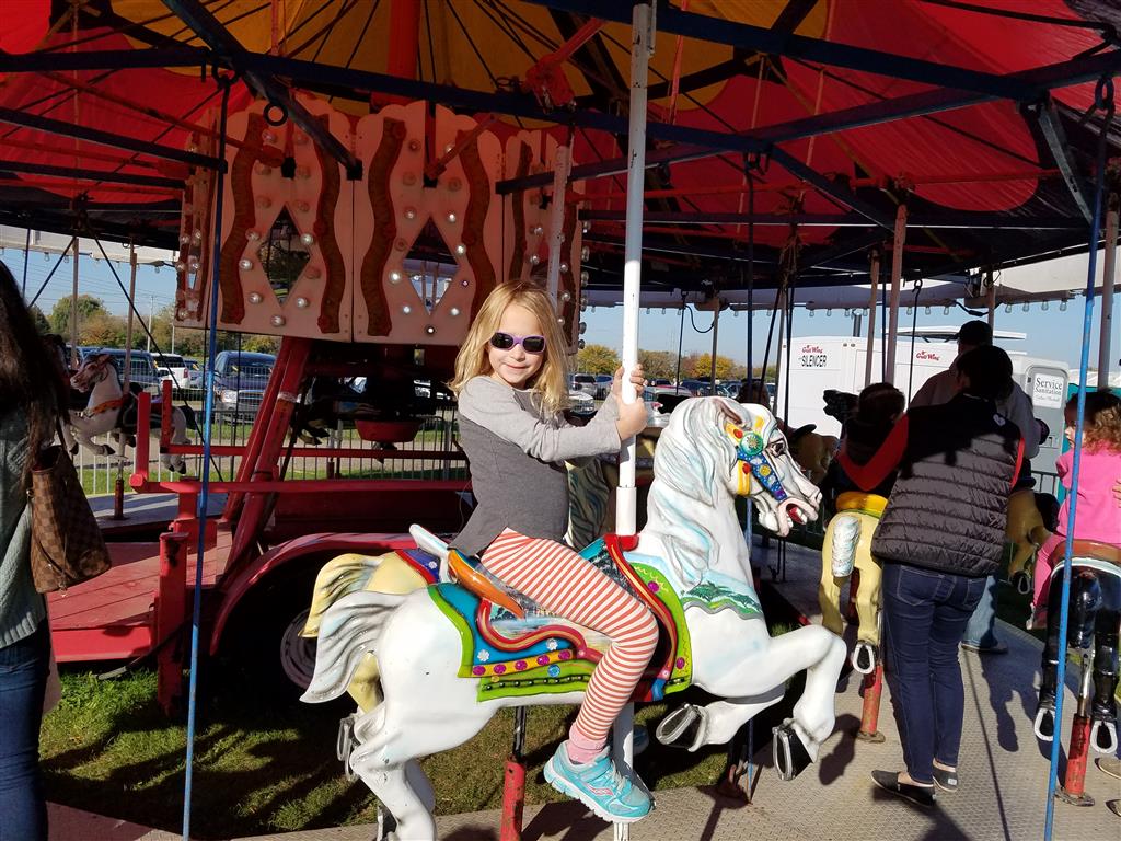 This week Eleanor and Henry headed out to Didier Farms for their annual Fall Festival. Eleanor was disappointed that they didn’t have the funhouse ride, but all in all we had a good time. Henry’s favorite ride was the Mini Himalaya, and Eleanor’s favorite was the Dragon Roller Coaster. Eleanor loved the first loop on the Himalaya, but she was on the outside of the car, and Henry started squishing up next to her, and she was unhappy the rest of the ride. Hopefully I caught the change of expression on the video. We also had fun with the pony rides, a hay ride, and the petting zoo. Both kids loved feeding the animals carrot sticks, and then we got to watch a pig race – a first for Dad too! The winning pigs were named Dale Earnhog and Lindsay Loham. The Emcee of the pig race was quite a jokester!