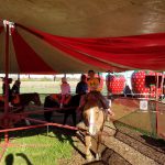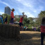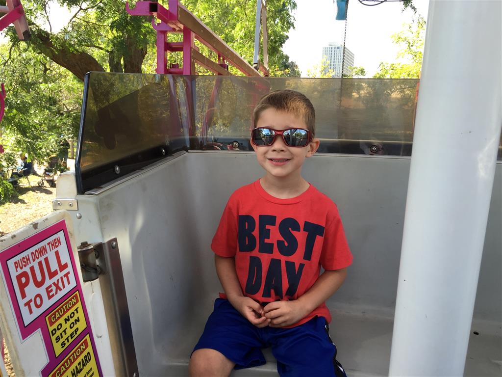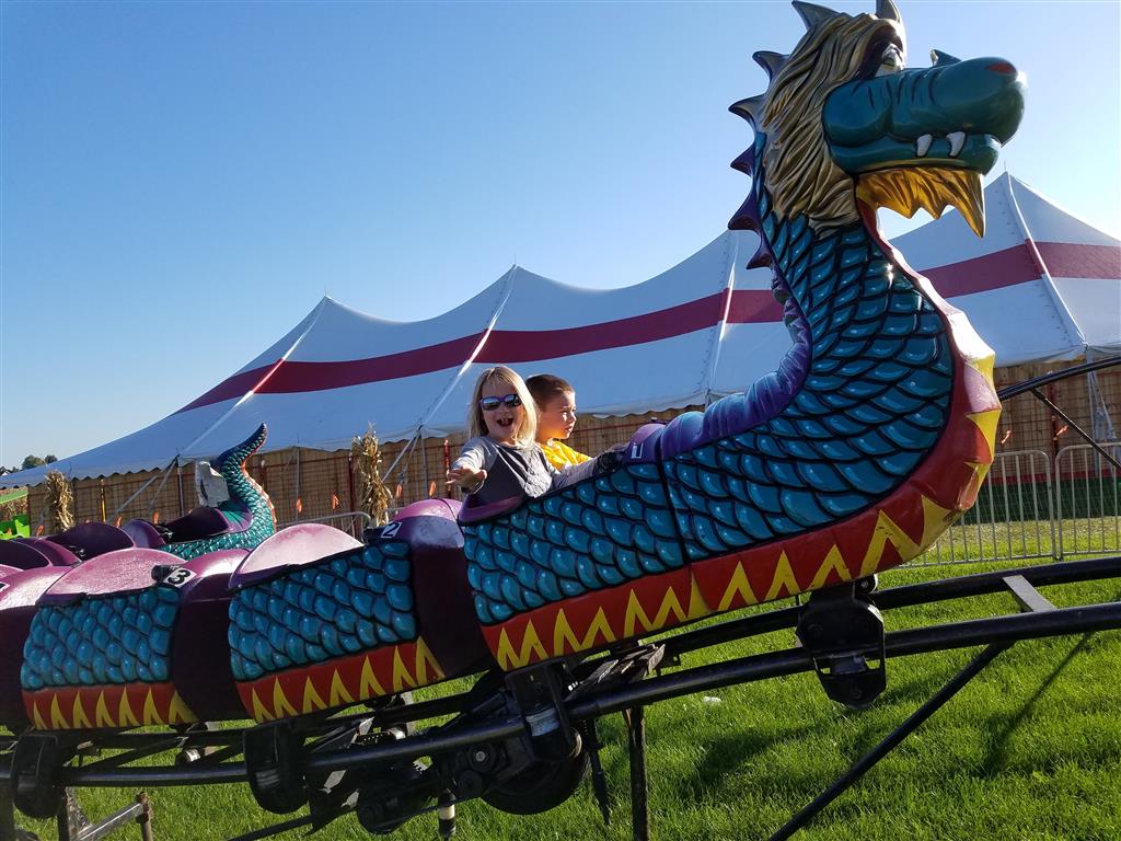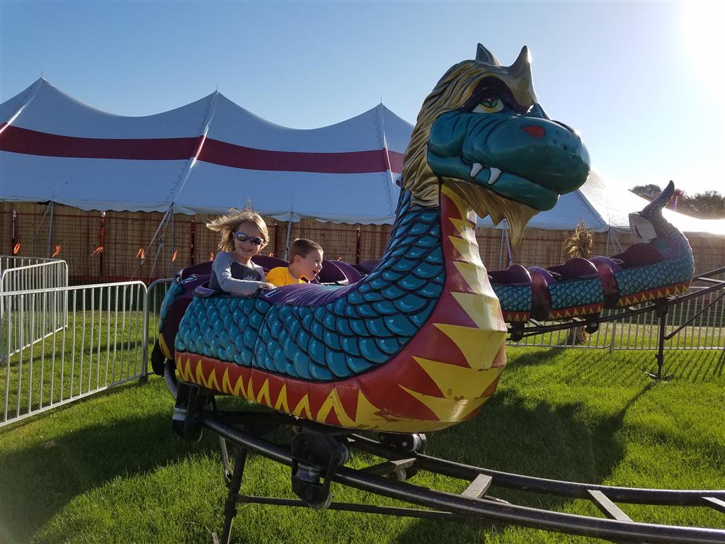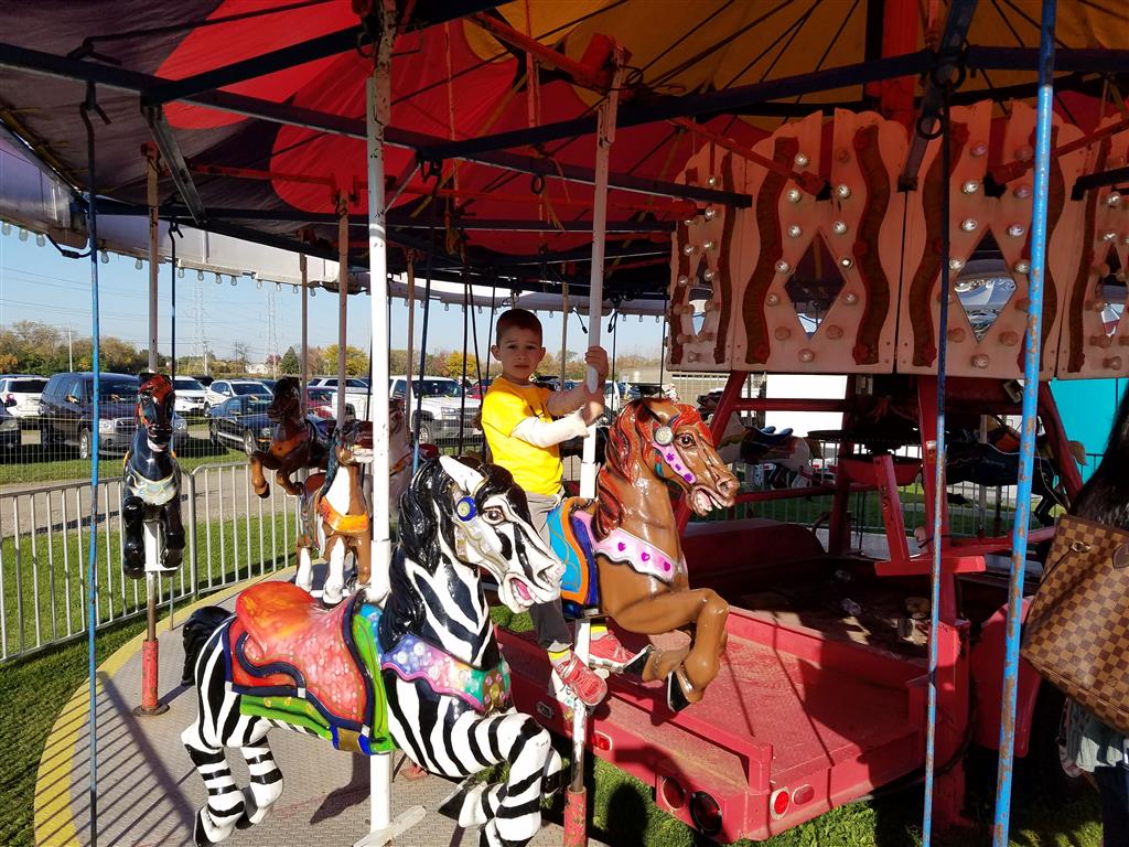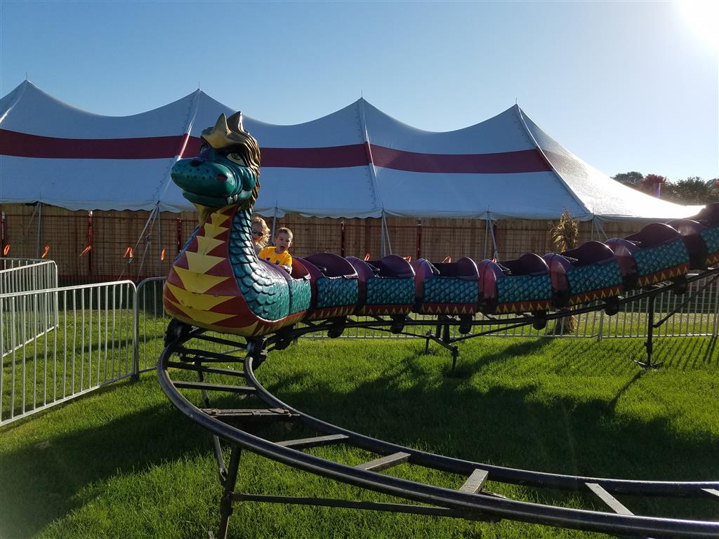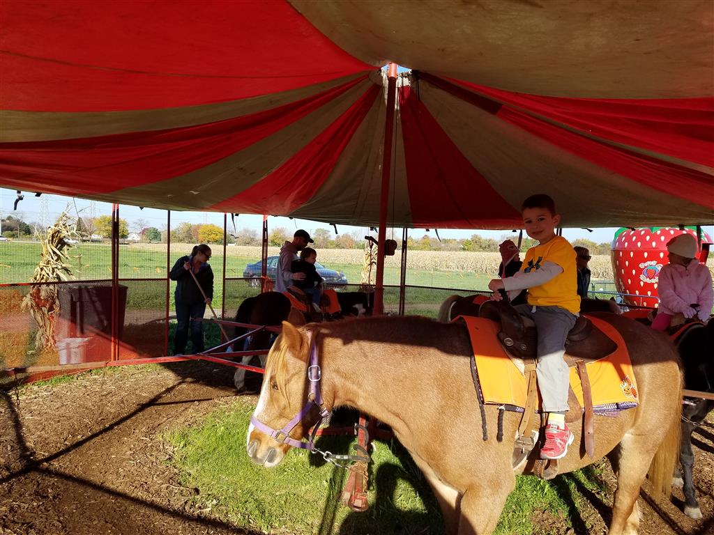 This week Eleanor and Henry headed out to Didier Farms for their annual Fall Festival. Eleanor was disappointed that they didn’t have the funhouse ride, but all in all we had a good time. Henry’s favorite ride was the Mini Himalaya, and Eleanor’s favorite was the Dragon Roller Coaster. Eleanor loved the first loop on the Himalaya, but she was on the outside of the car, and Henry started squishing up next to her, and she was unhappy the rest of the ride. Hopefully I caught the change of expression on the video. We also had fun with the pony rides, a hay ride, and the petting zoo. Both kids loved feeding the animals carrot sticks, and then we got to watch a pig race – a first for Dad too! The winning pigs were named Dale Earnhog and Lindsay Loham. The Emcee of the pig race was quite a jokester!