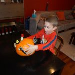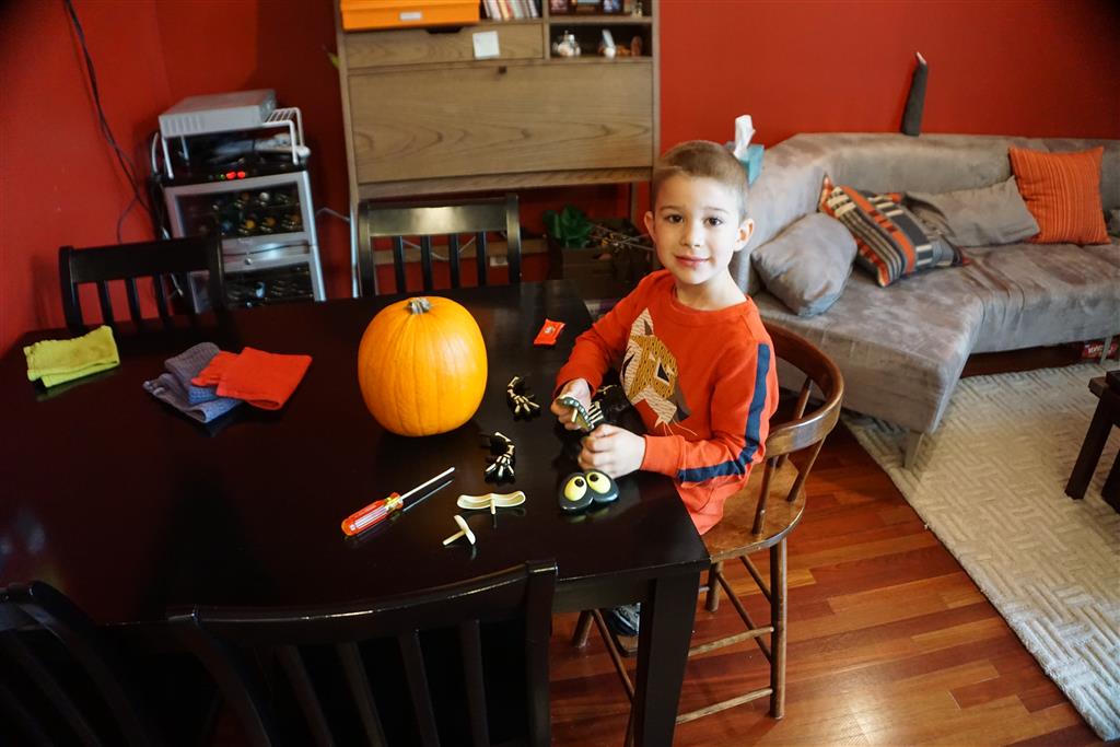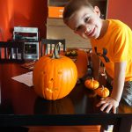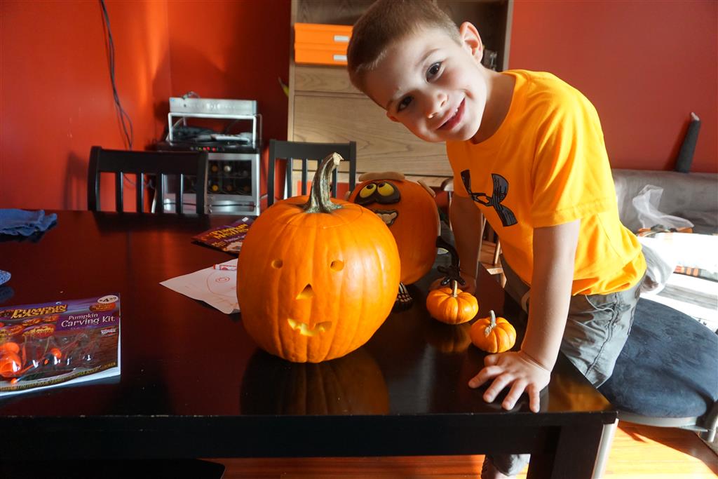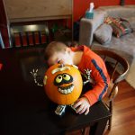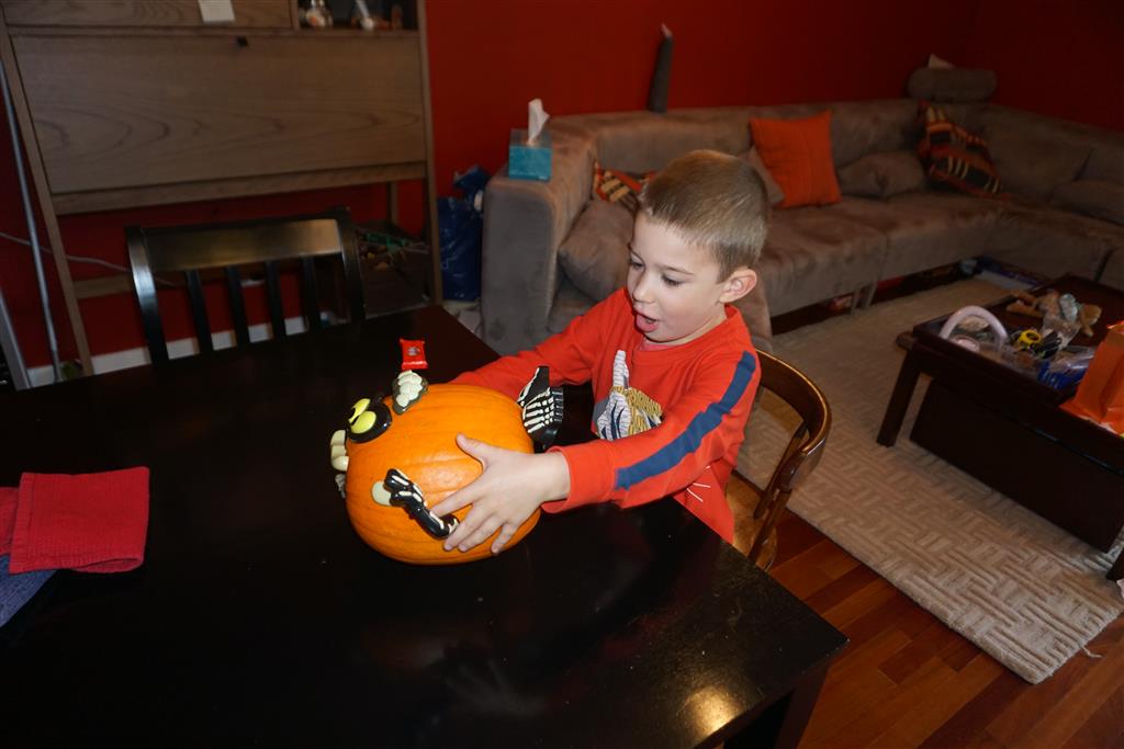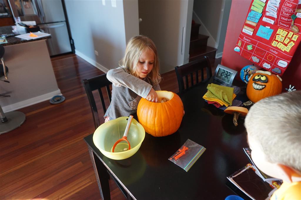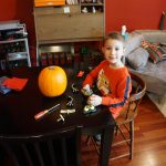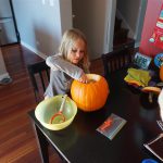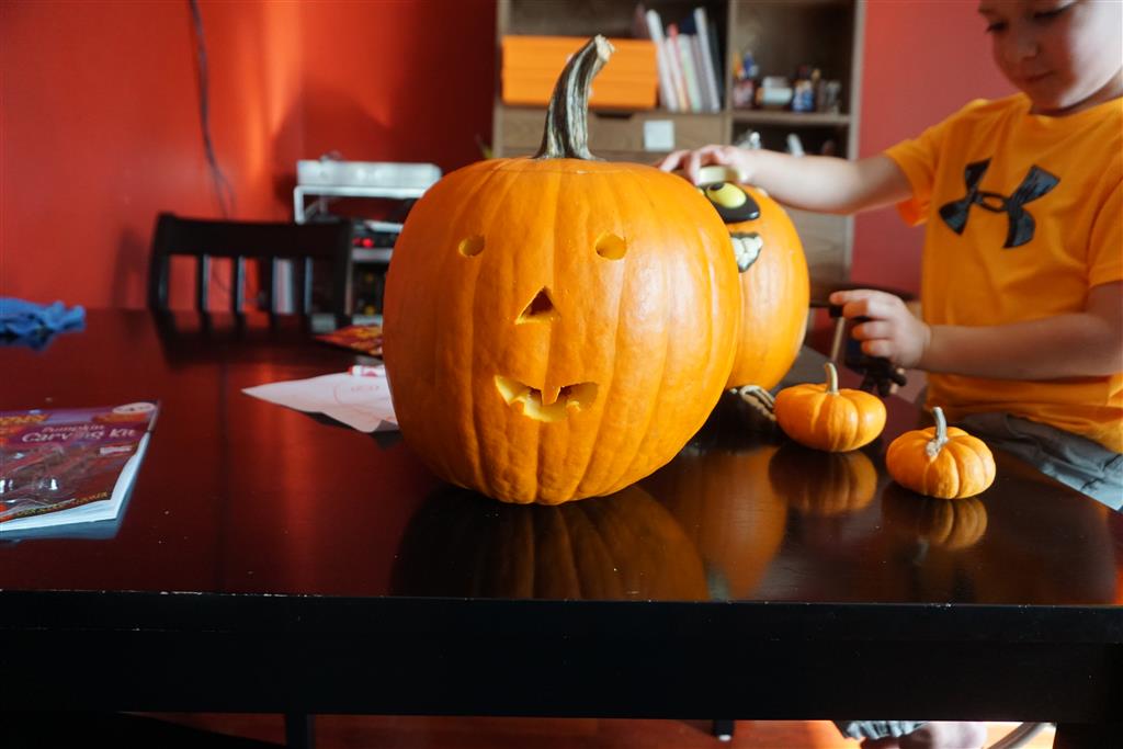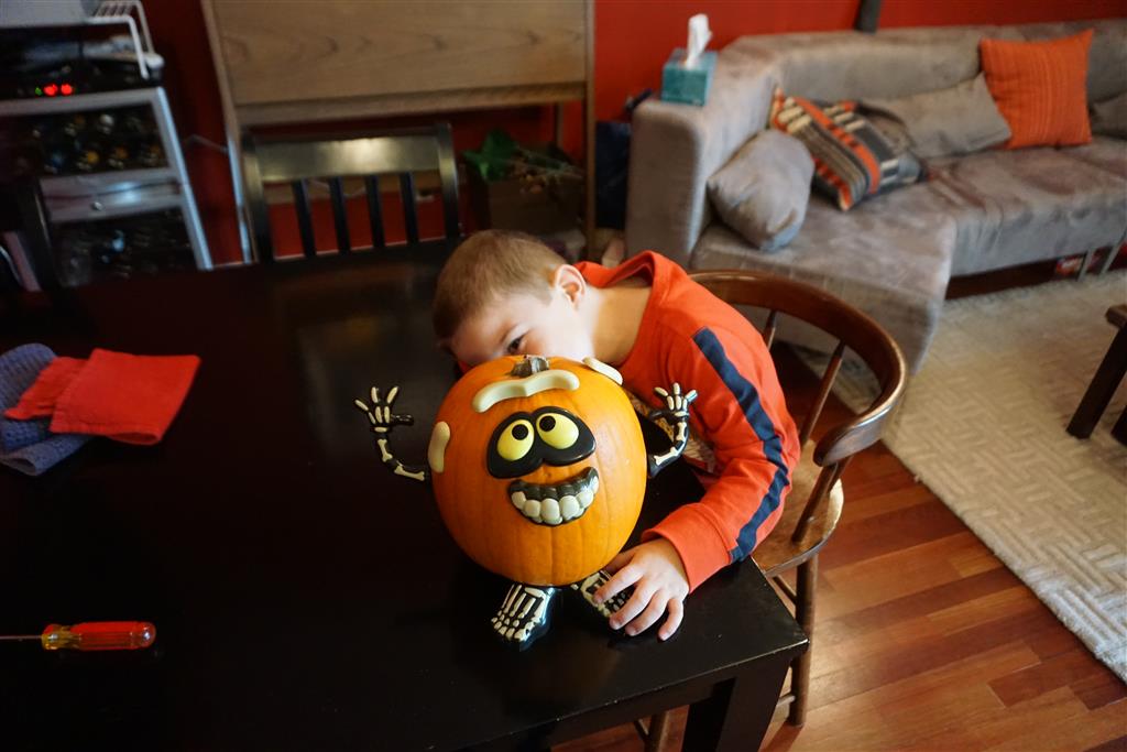 We also did some pumpkin carving this weekend. Henry used the Mr. Potato Head pieces to make his, and Eleanor and Dad worked together to carve hers. She talked through the design, and we cut out the pieces together.