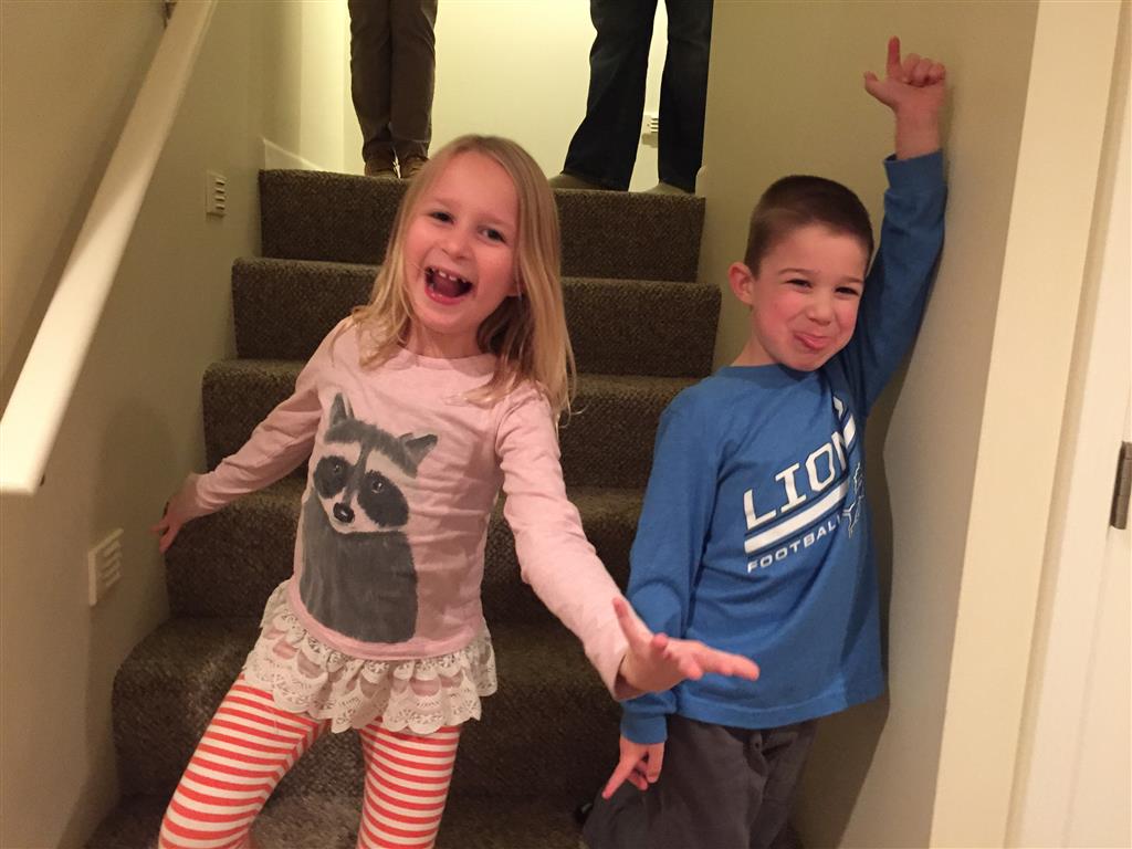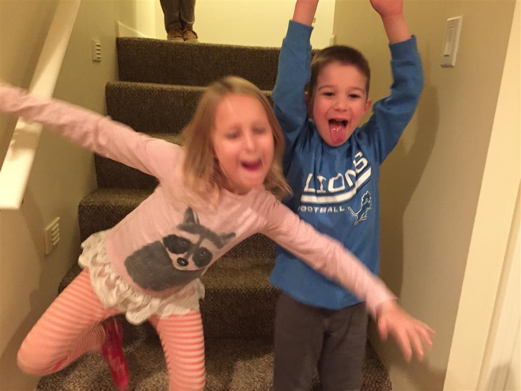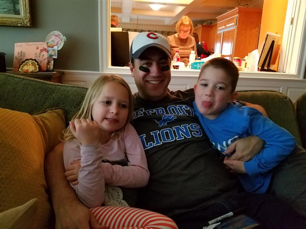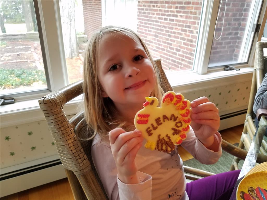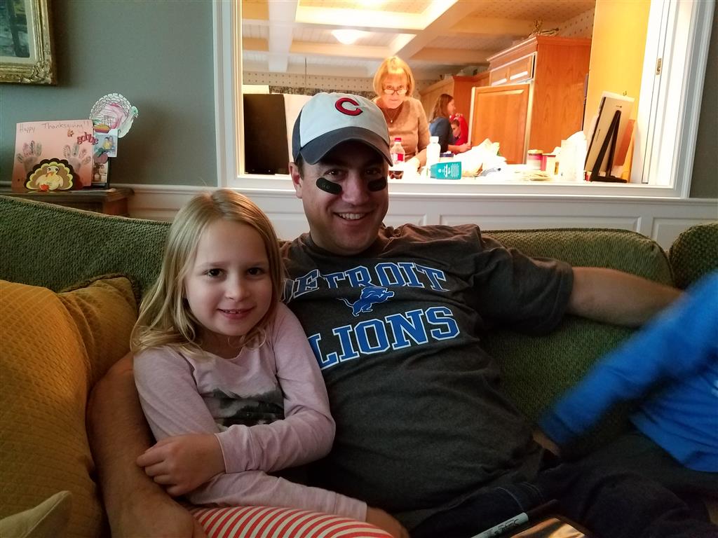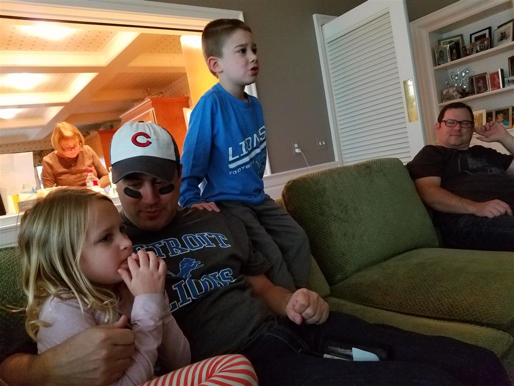 This week Henry and Eleanor traveled to Michigan to celebrate Thanksgiving. We had lots of fun hanging out with Grandma and Grandpa, and cousins Mackenzie, Jack and Ben, Auntie Susan, Uncle Gabe, Buddie, Uncle B and Aunt Breanne. This year, instead of going to the Lions game, we had our own football game in the backyard, which was a great success. Uncle B made sure that everyone was properly outfitted for the game, and the weather cooperated enough for a fun game. Henry was the referee, Eleanor sat in the press box, Grandma, Grandpa and the Aunts cheered from the sidelines, and everyone else hit the field for the game. We had a great Thanksgiving dinner at Aunt Carol and Uncle John’s house, with Great Grandma and the extended family. Eleanor really enjoyed making a turkey craft with her cousins, and both kids got a big kick out of doing “mannequin challenge” videos in the basement.