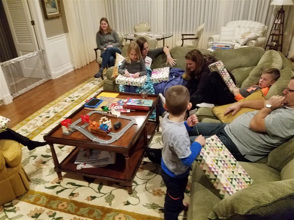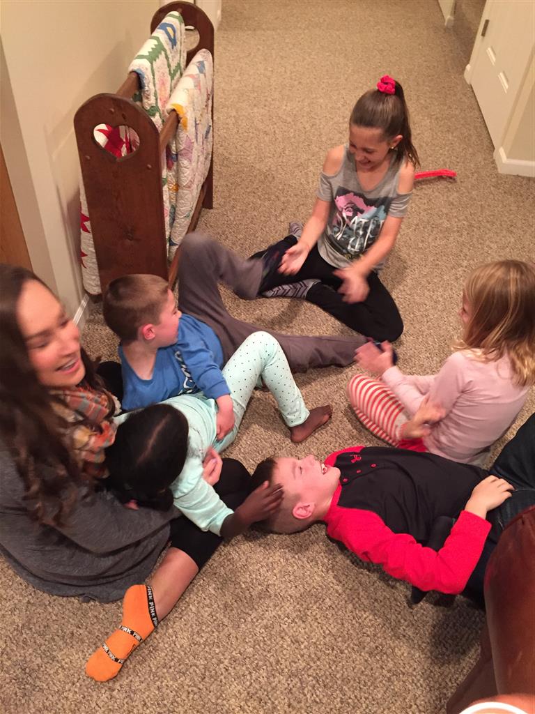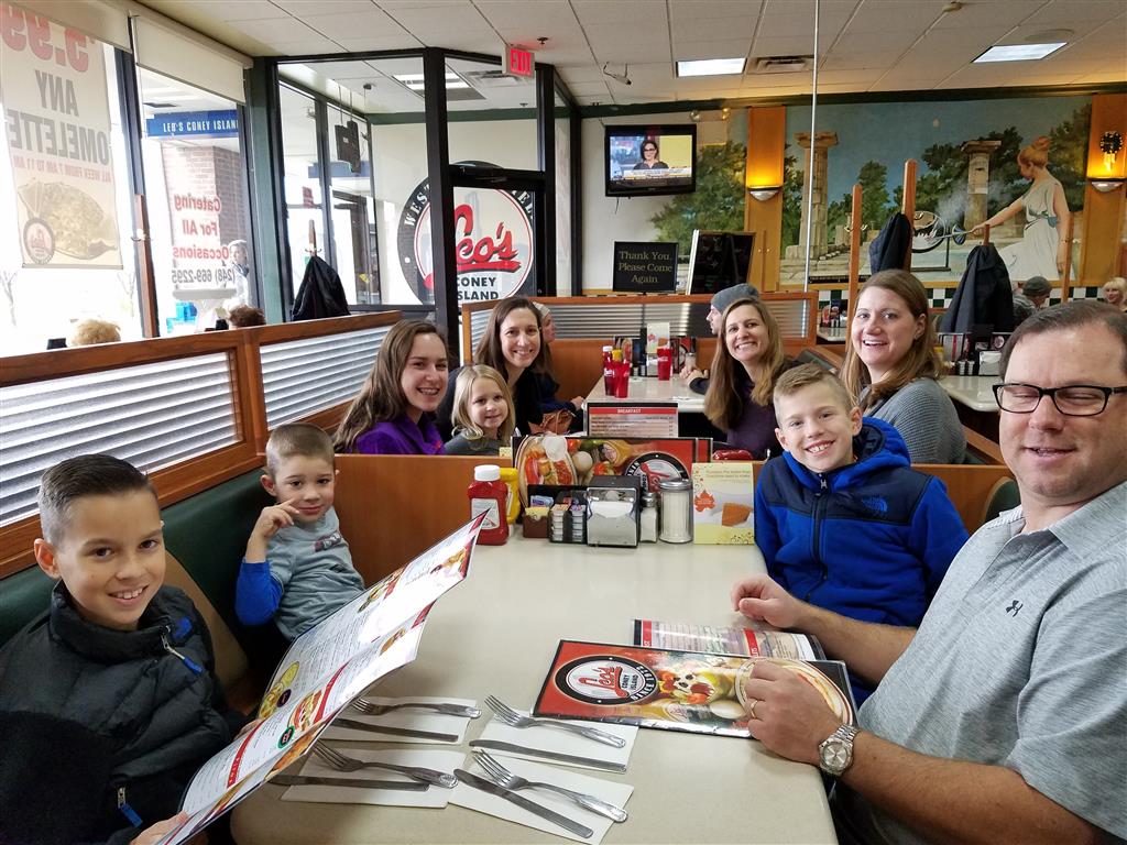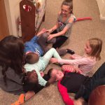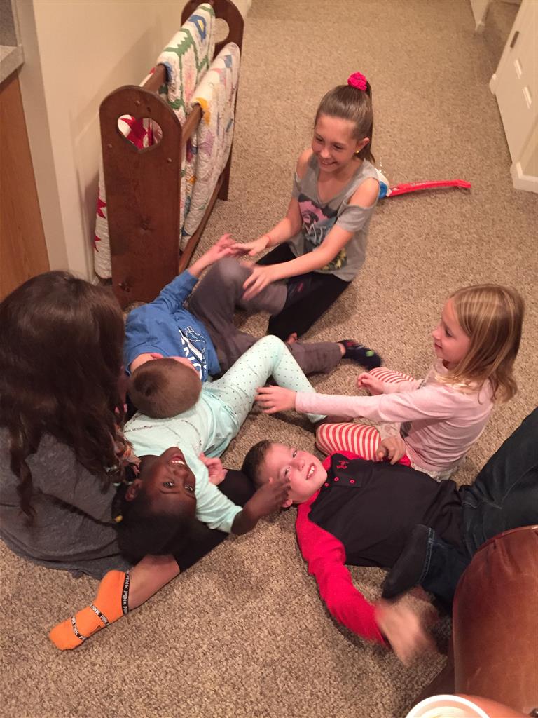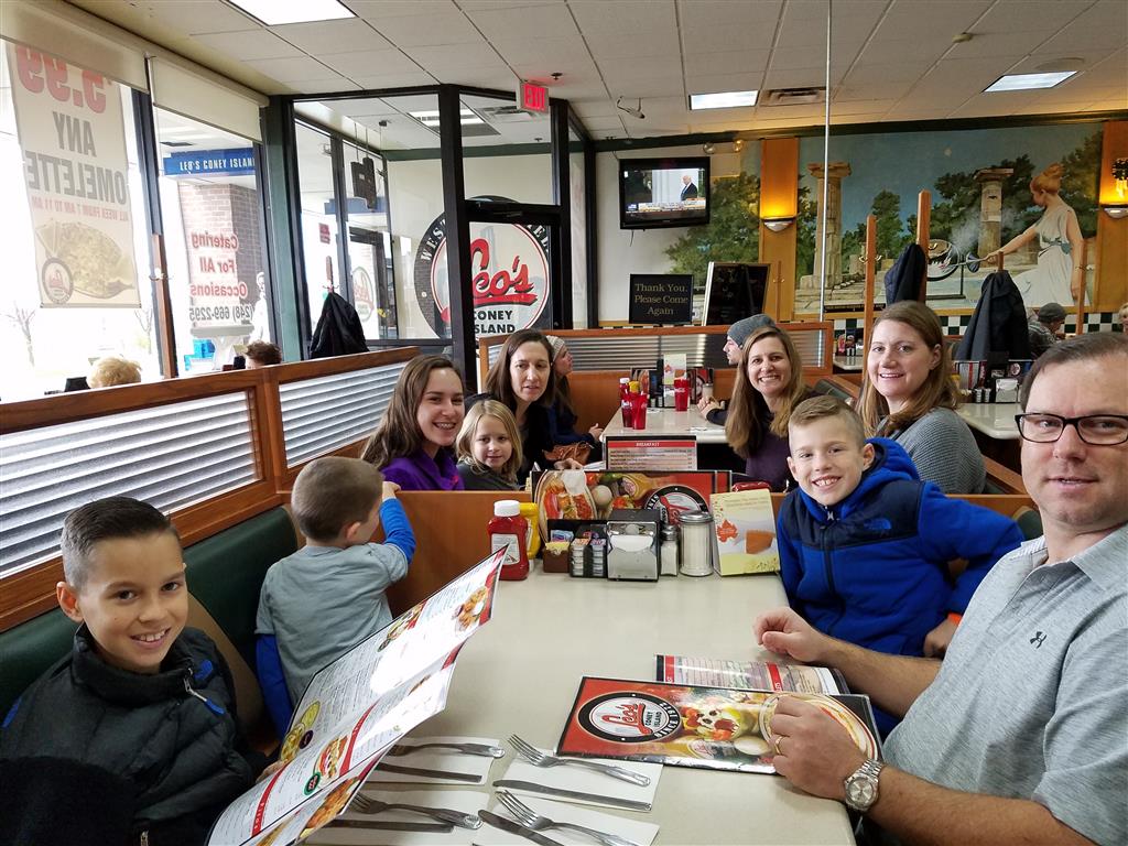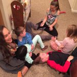 This week Henry and Eleanor traveled to Michigan to celebrate Thanksgiving. We had lots of fun hanging out with Grandma and Grandpa, and cousins Mackenzie, Jack and Ben, Auntie Susan, Uncle Gabe, Buddie, Uncle B and Aunt Breanne. This year, instead of going to the Lions game, we had our own football game in the backyard, which was a great success. Uncle B made sure that everyone was properly outfitted for the game, and the weather cooperated enough for a fun game. Henry was the referee, Eleanor sat in the press box, Grandma, Grandpa and the Aunts cheered from the sidelines, and everyone else hit the field for the game. We had a great Thanksgiving dinner at Aunt Carol and Uncle John’s house, with Great Grandma and the extended family. Eleanor really enjoyed making a turkey craft with her cousins, and both kids got a big kick out of doing “mannequin challenge” videos in the basement.