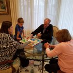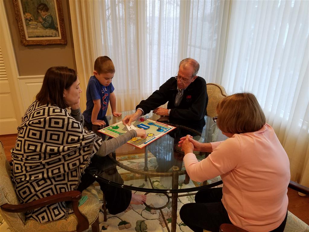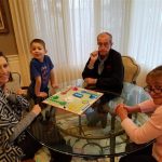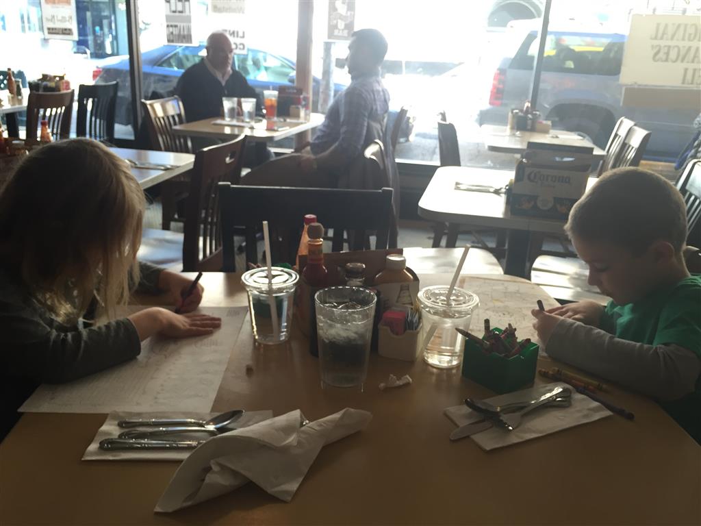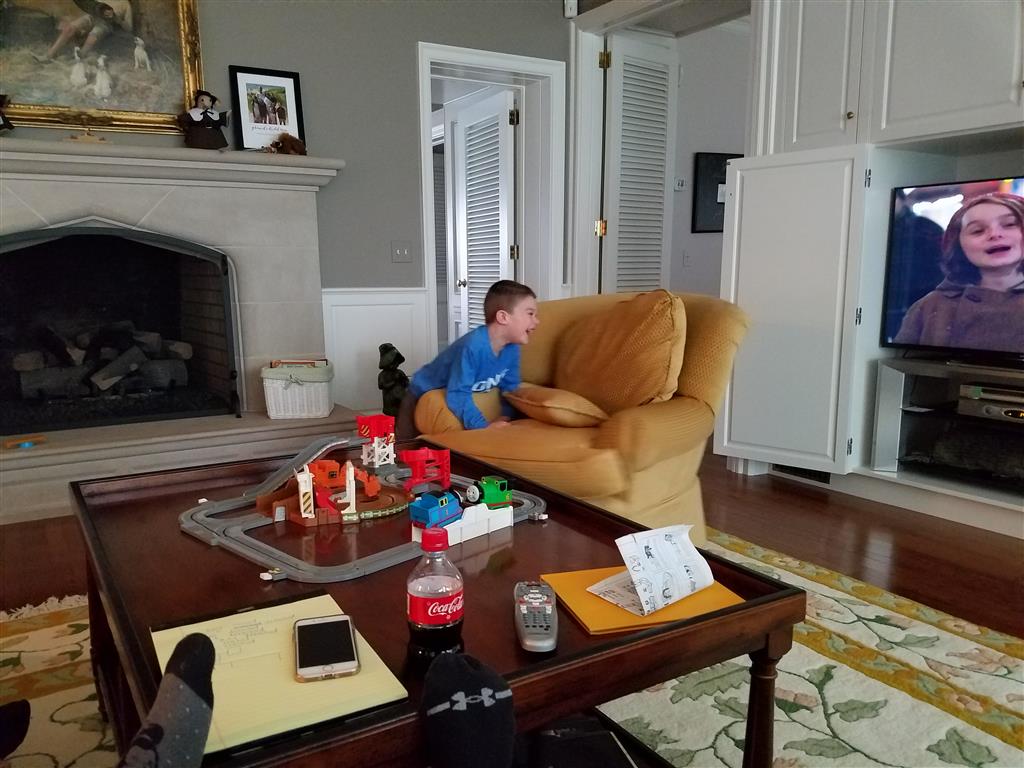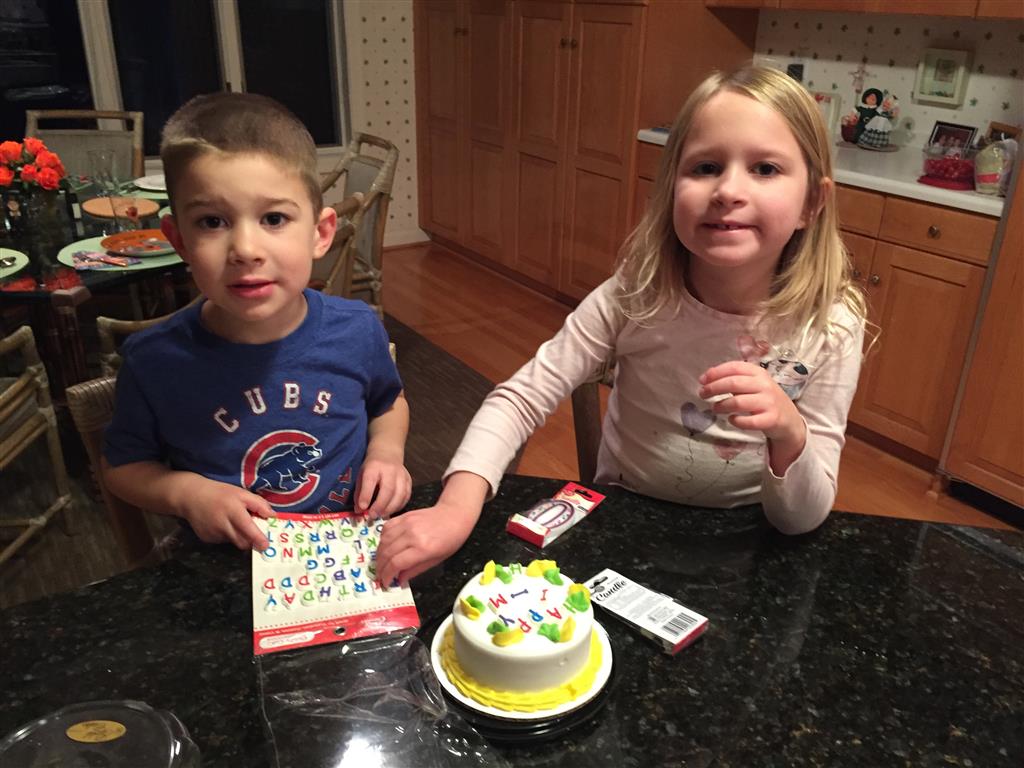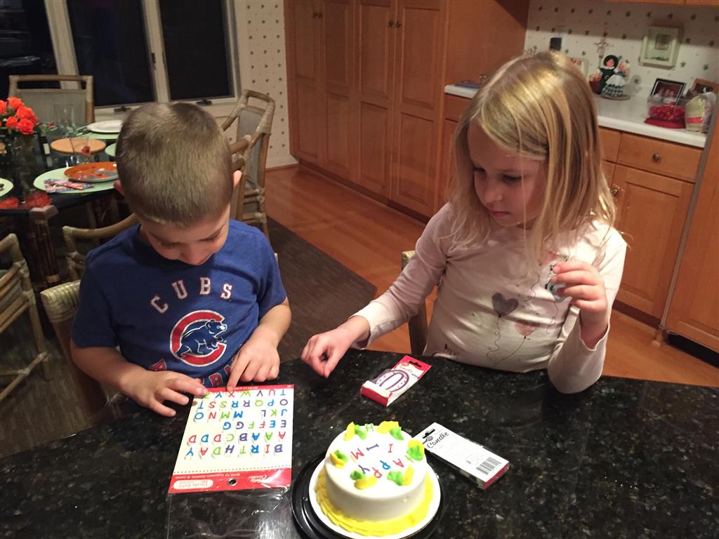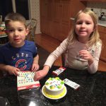 On Friday we went to the a Coney Island for lunch (YUM!) and then went to see the movie “Trolls”. There were a few scary parts, but for the most part both kids enjoyed it, definitely a big success compared to last year’s “The Last Dinosaur”. Unfortunately, the weather didn’t cooperate enough for scootering or rocket launches, but we had lots of fun playing inside. The kids were both excited play “Sorry” with the same set that Dad used as a child. I had just told them the story of how when I was a kid, one of the green pieces was broken – and neither I nor my siblings wanted to play with that color, so Grandpa was almost always green. He ended up naming that broken piece “Pee Wee”, and used to say “Poor Pee Wee” anytime that piece got sent home. Henry especially like being the green team and always tried to make “Pee Wee” his first piece home.