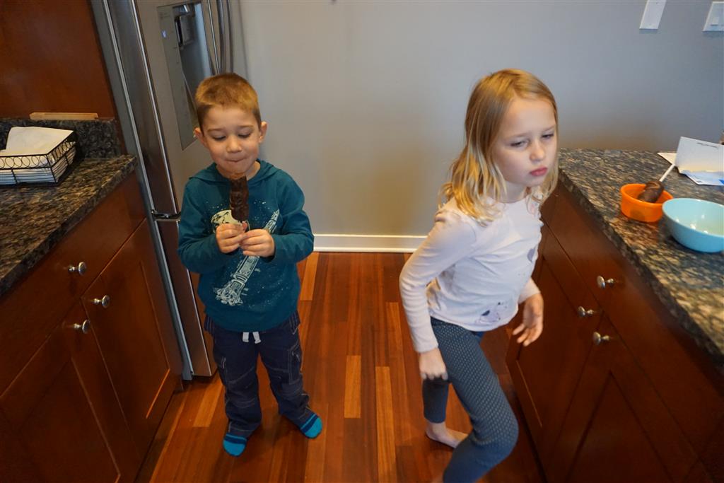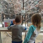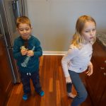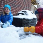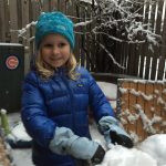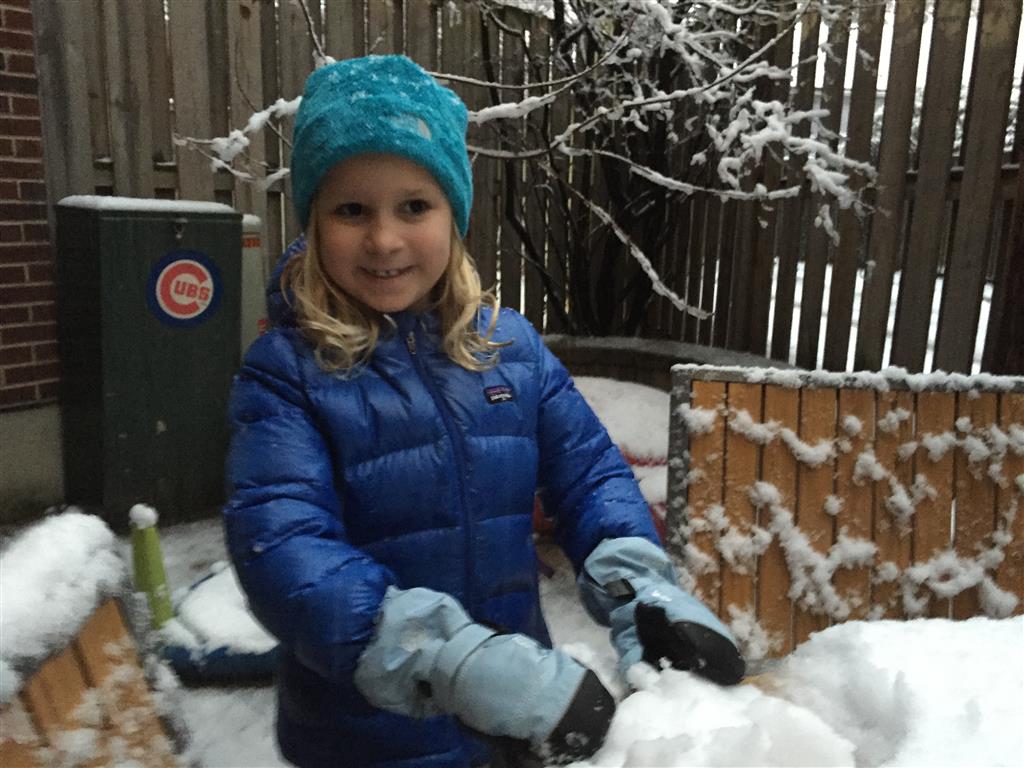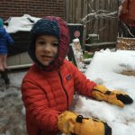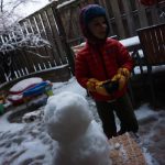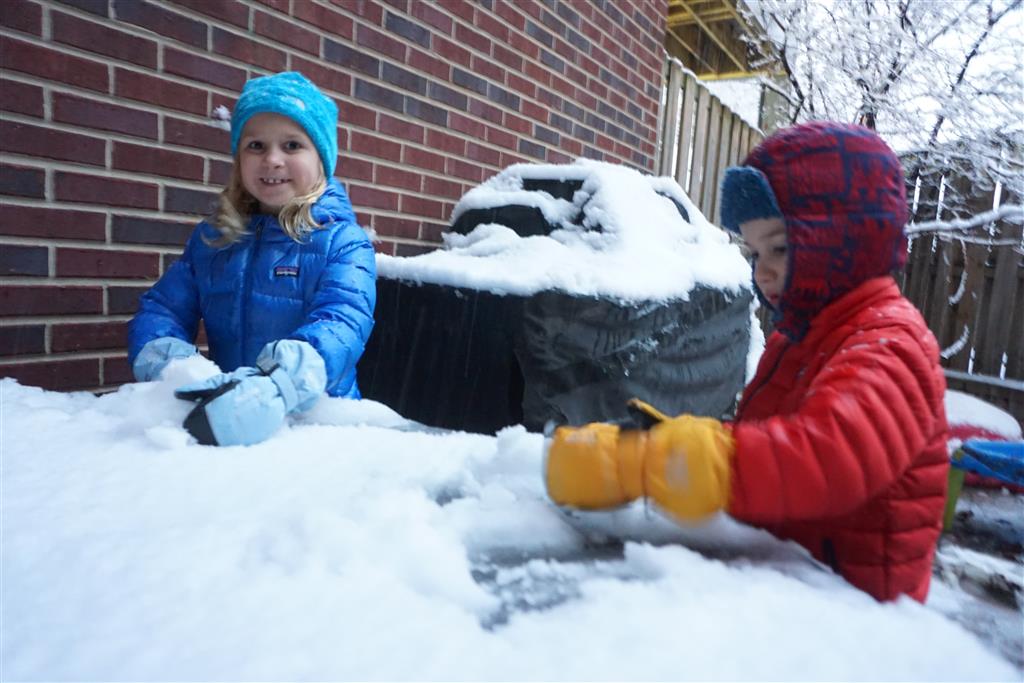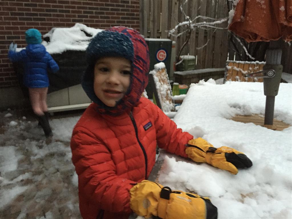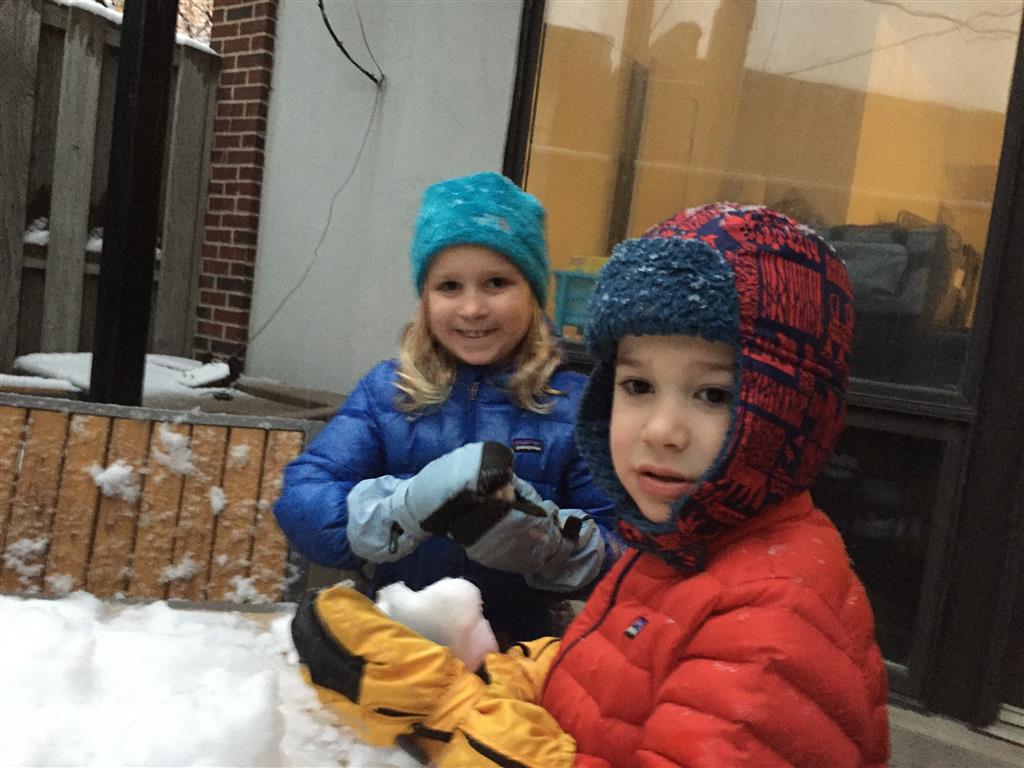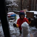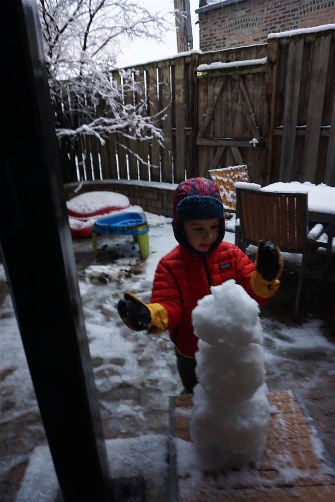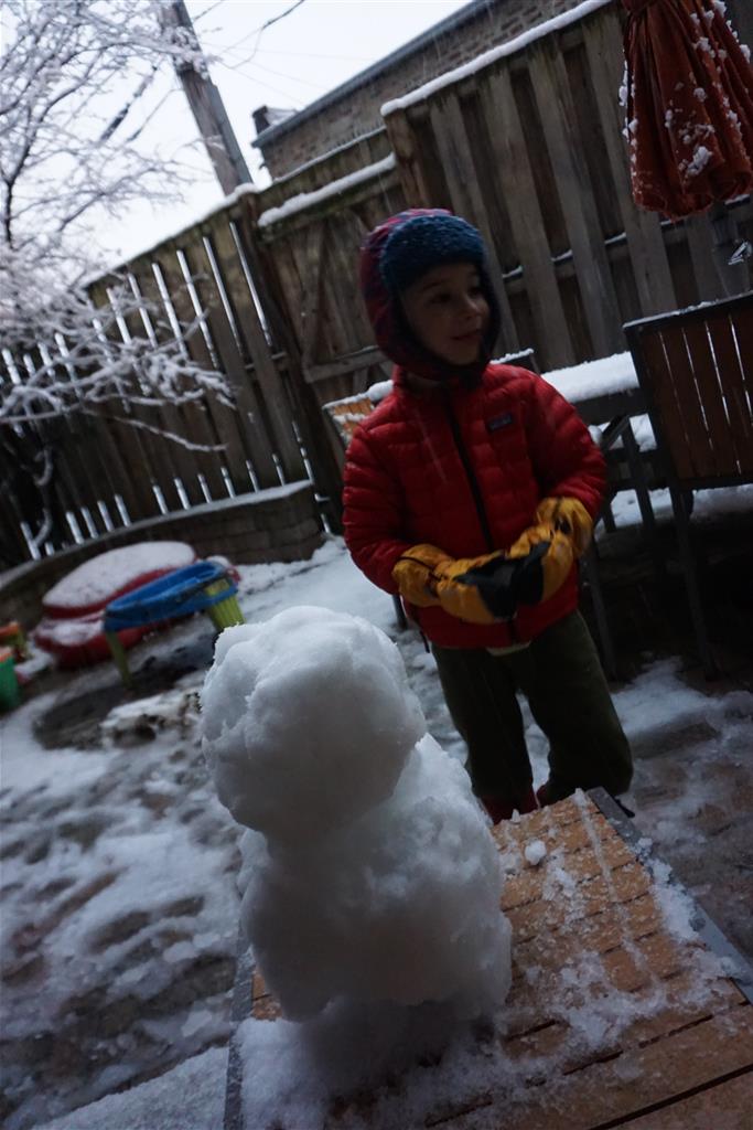 Eleanor and Henry enjoyed our first snow accumulation this week with some snow fun in the back patio. At first I couldn’t get them excited about going out, but then I showed them how it was perfect snowball snow and then they were in. There wasn’t quite enough for a full size snowman, but we did get a small version created – but all Henry wanted to do with it was knock it over.