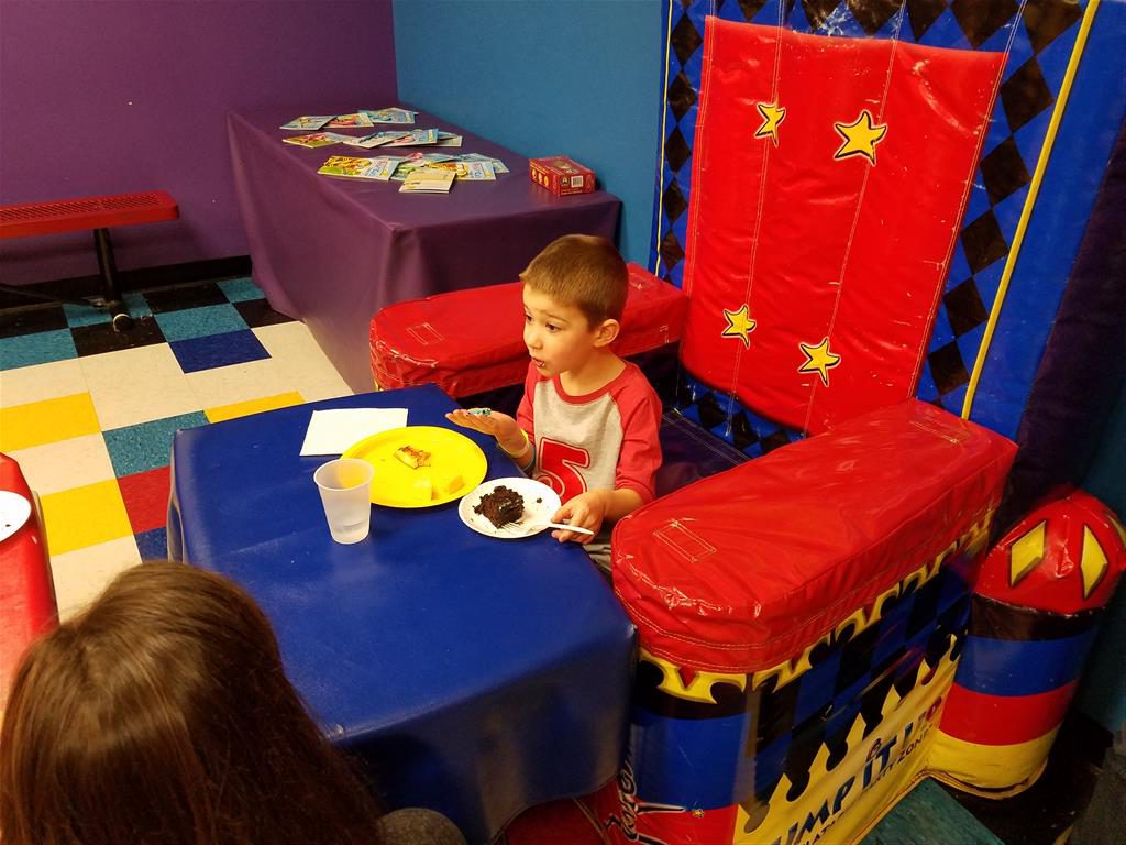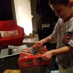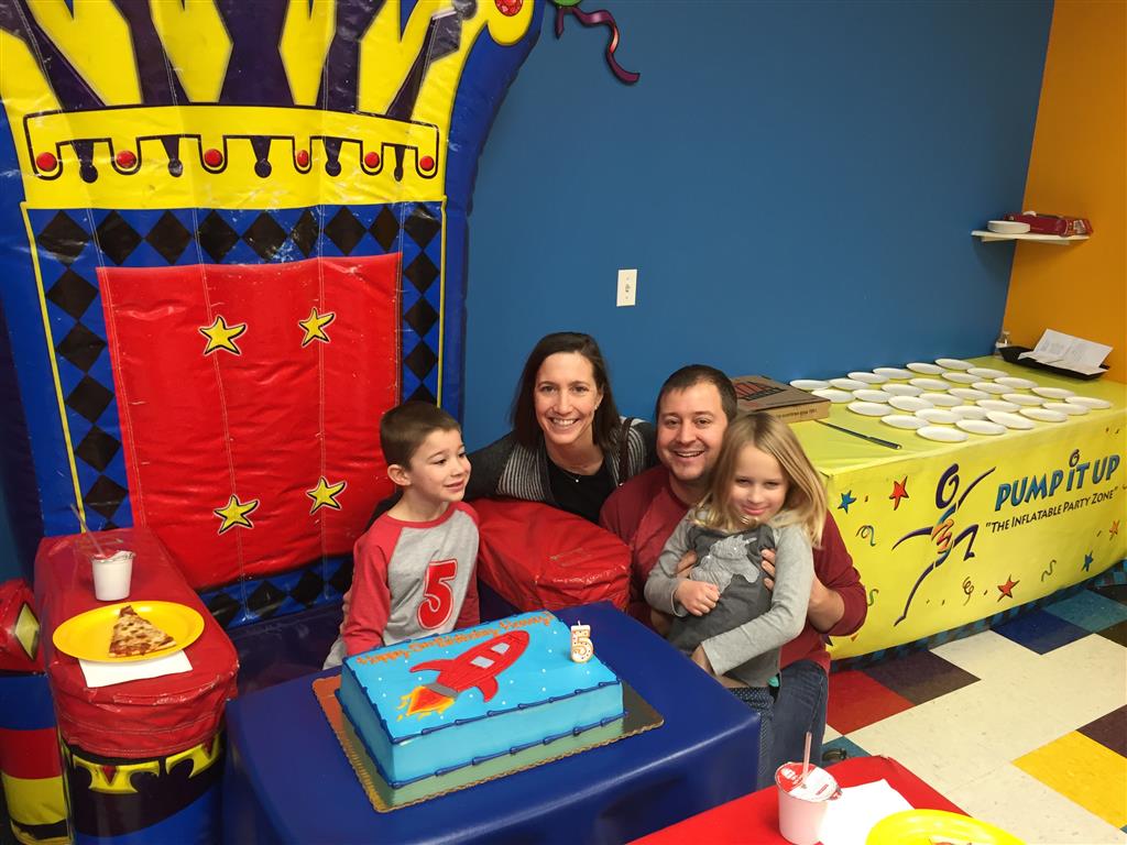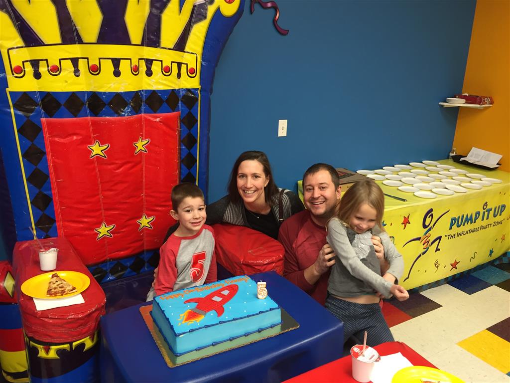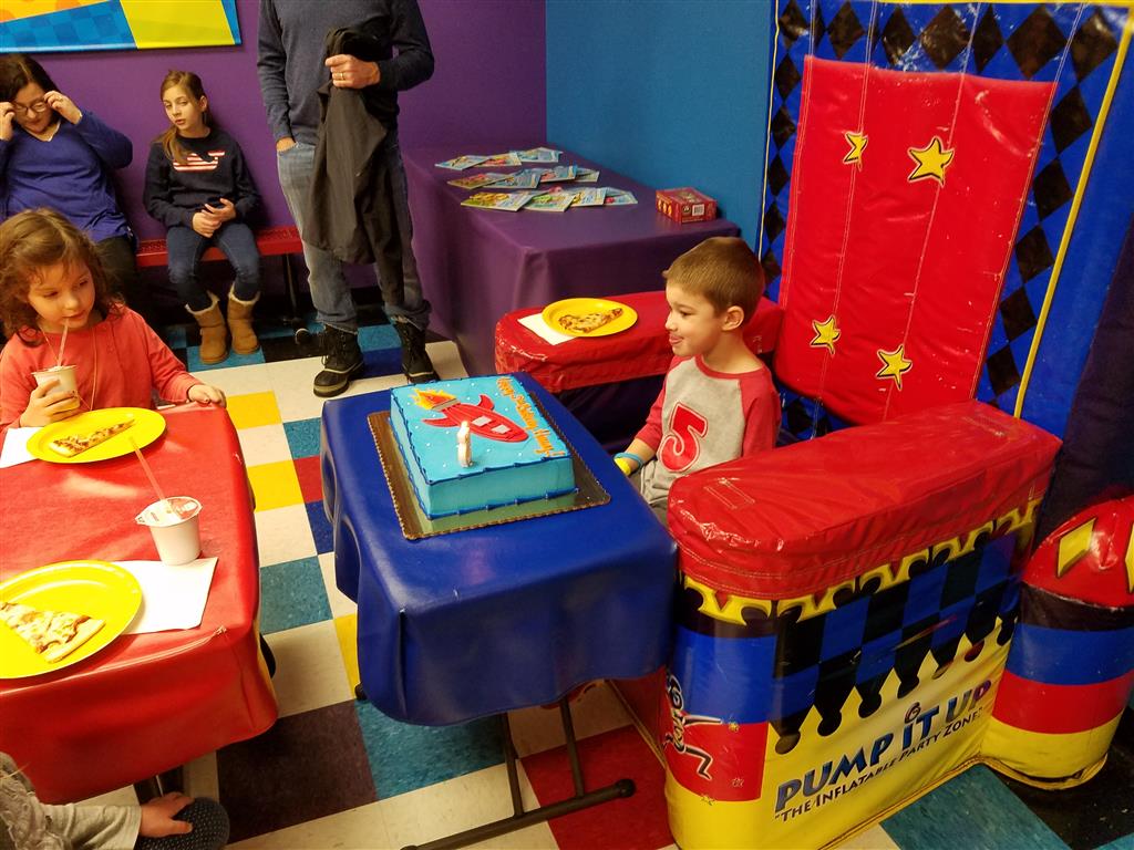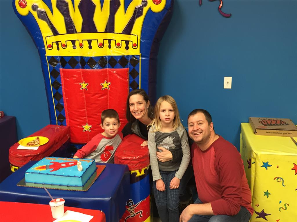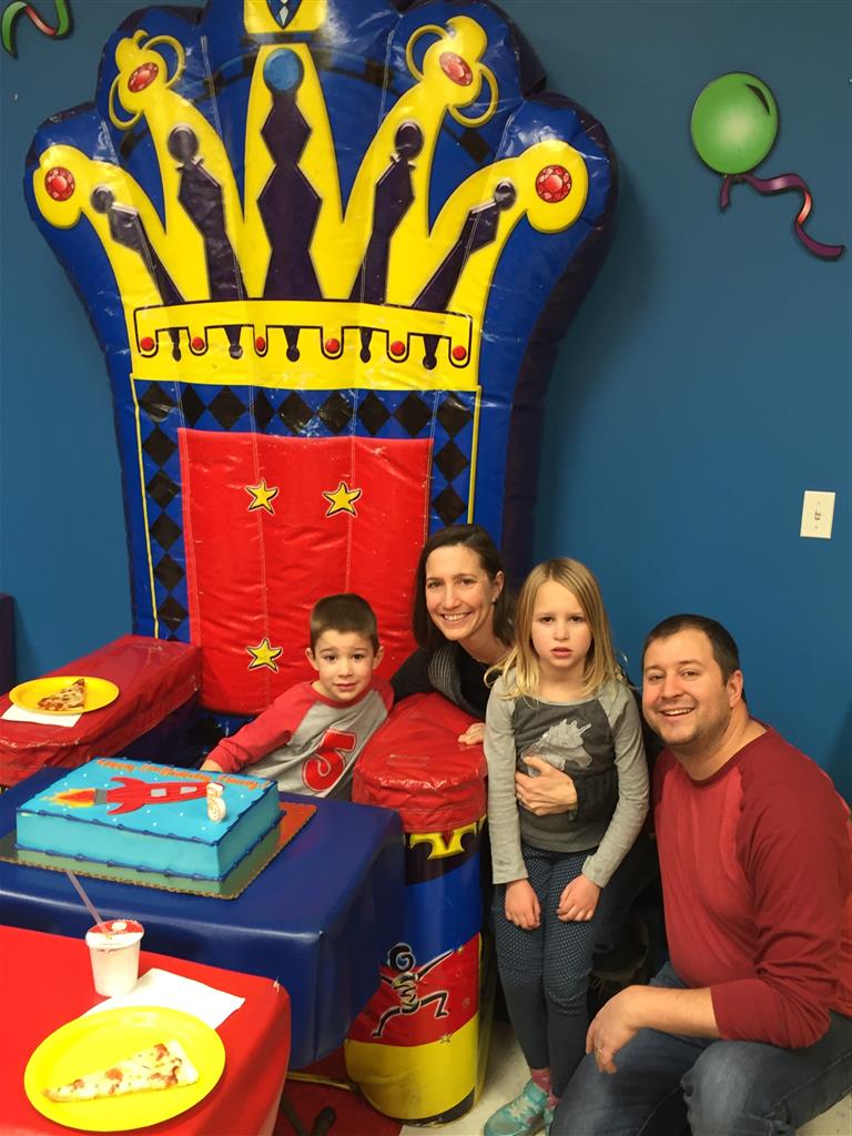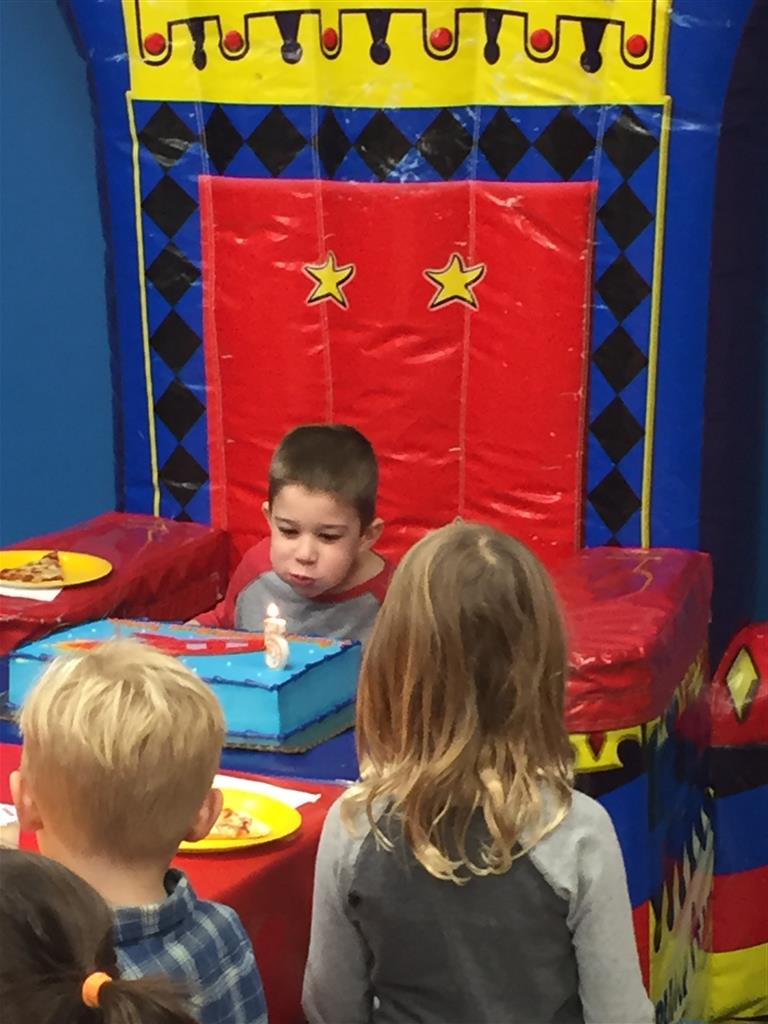 Eleanor and Henry had a fun sleepover this weekend with Uncle B and Aunt Breanne. We had a blast playing with the new camping set, and also making graham cracker houses. We also kicked off Henry’s birthday celebrations with his party for his school friends at Pump It Up. Henry was very excited to have his own party and to sit in the “Throne Chair”. The party went well despite some heavy snow outside, and Henry really seemed to have a great time. Eleanor and Dad managed to have some fun outside in the snow later that day – breaking out the sled for rides in the alley. Eleanor also spent a long time just shoveling snow – I wonder how long we can keep that a fun game! Henry was a bit to excited about all his new presents to join in the outdoor fun.
