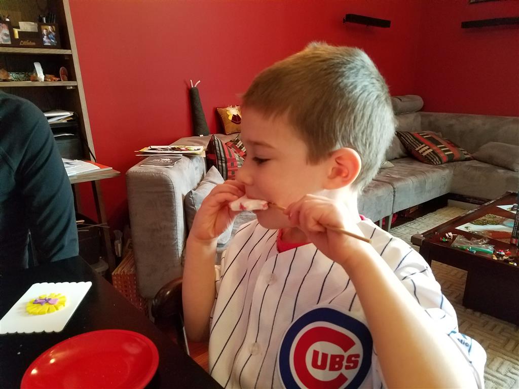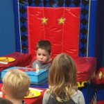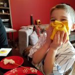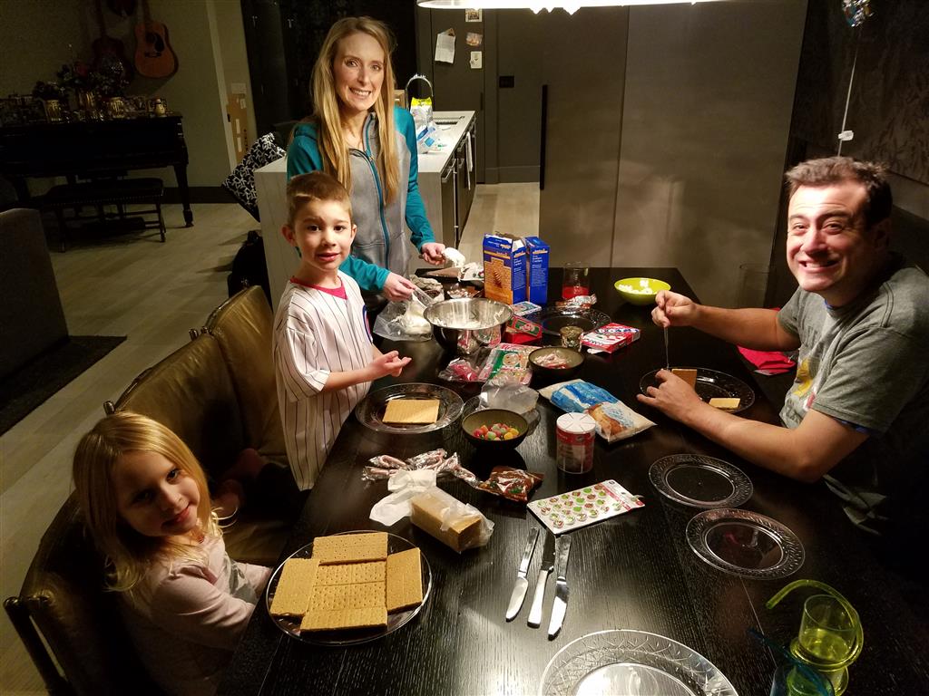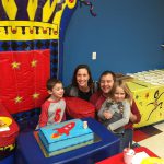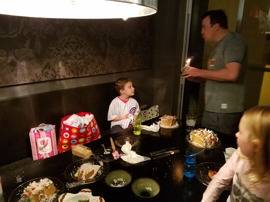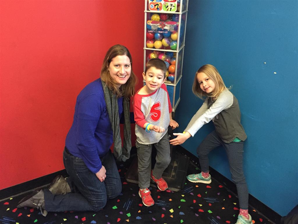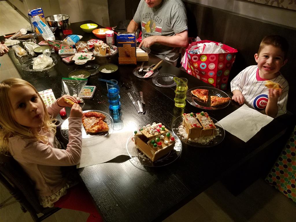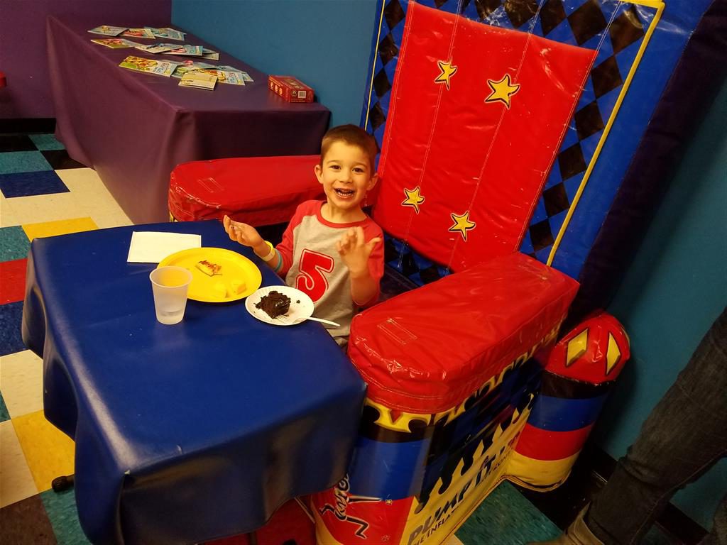 Eleanor and Henry had a fun sleepover this weekend with Uncle B and Aunt Breanne. We had a blast playing with the new camping set, and also making graham cracker houses. We also kicked off Henry’s birthday celebrations with his party for his school friends at Pump It Up. Henry was very excited to have his own party and to sit in the “Throne Chair”. The party went well despite some heavy snow outside, and Henry really seemed to have a great time. Eleanor and Dad managed to have some fun outside in the snow later that day – breaking out the sled for rides in the alley. Eleanor also spent a long time just shoveling snow – I wonder how long we can keep that a fun game! Henry was a bit to excited about all his new presents to join in the outdoor fun.