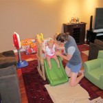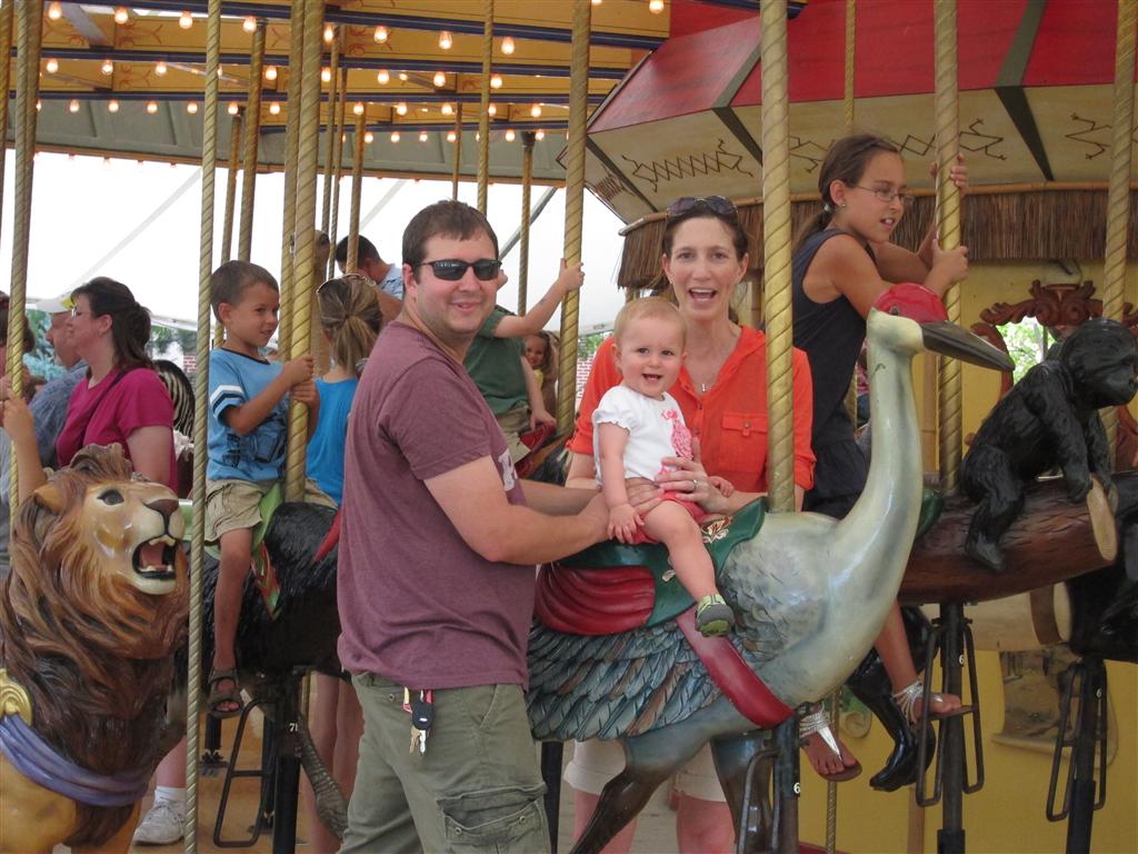 Sunday morning was filled with playtime with her new toys – especially the new slide and the basketball hoop.  You should have seen the two handed two ball dunk!  After lunch, the whole crew headed to the zoo for a fun afternoon.   Eleanor didn’t appreciate the animals much – but she did love walking around and riding on the merry-go-round.