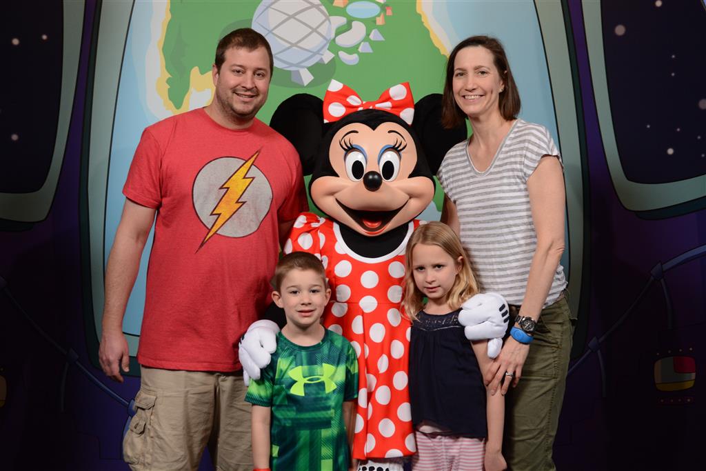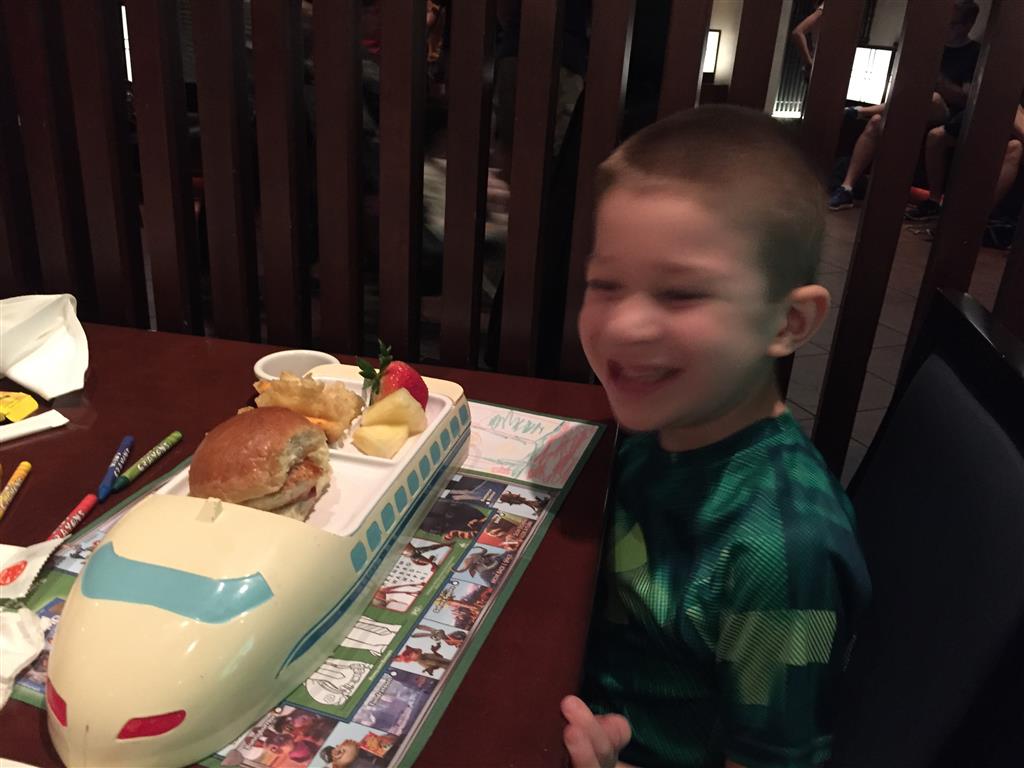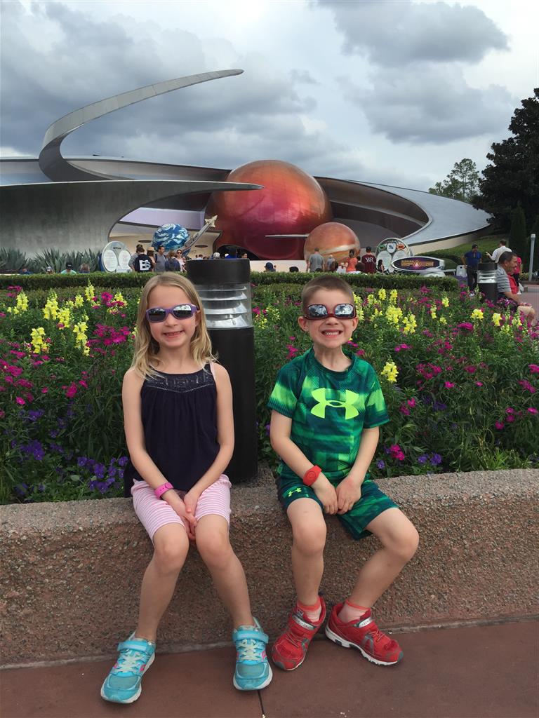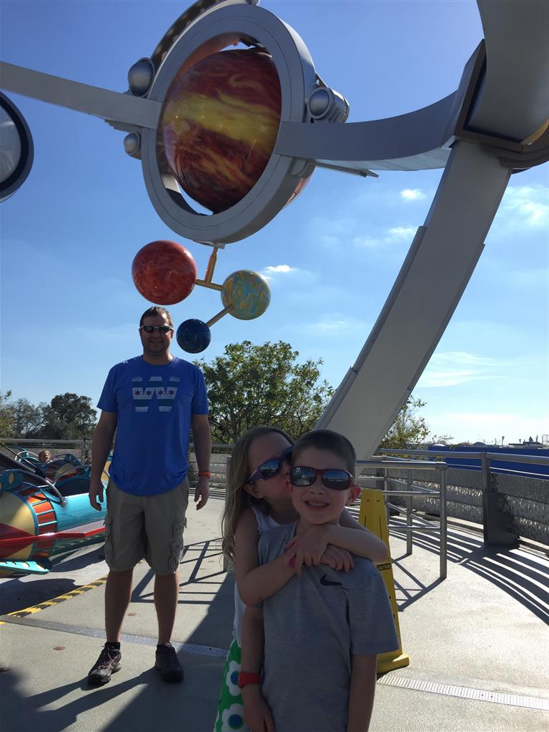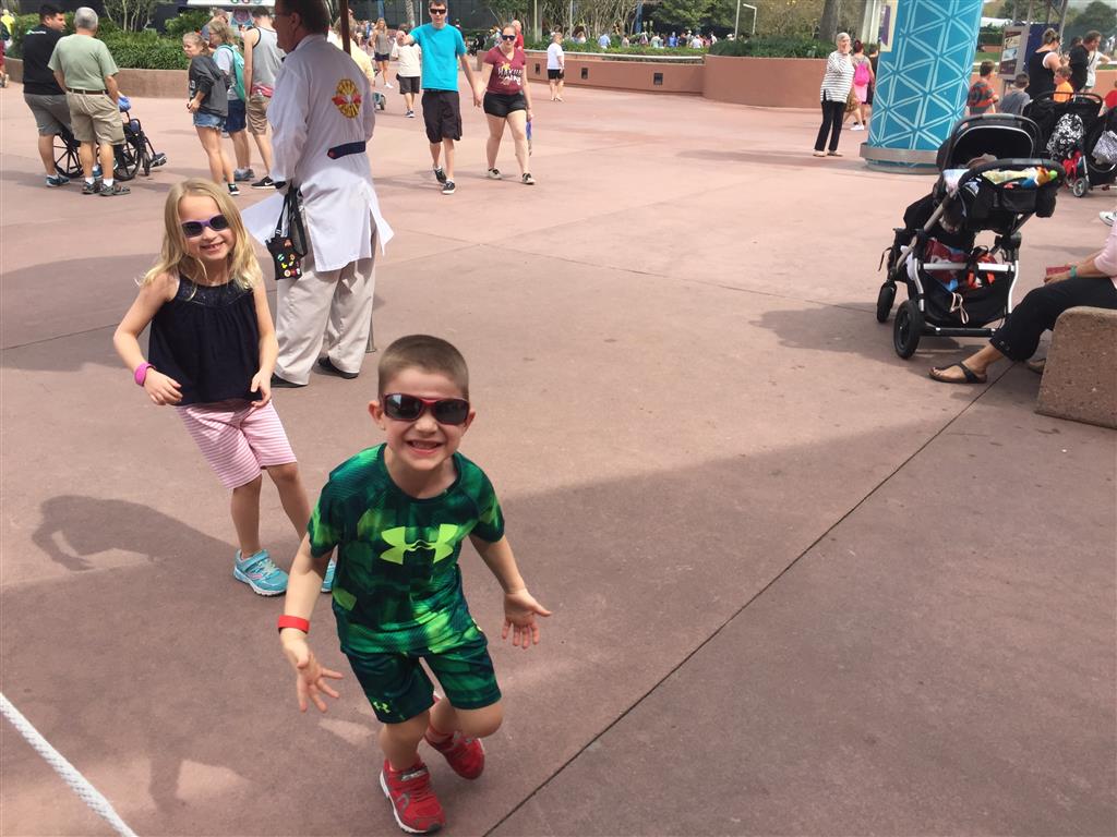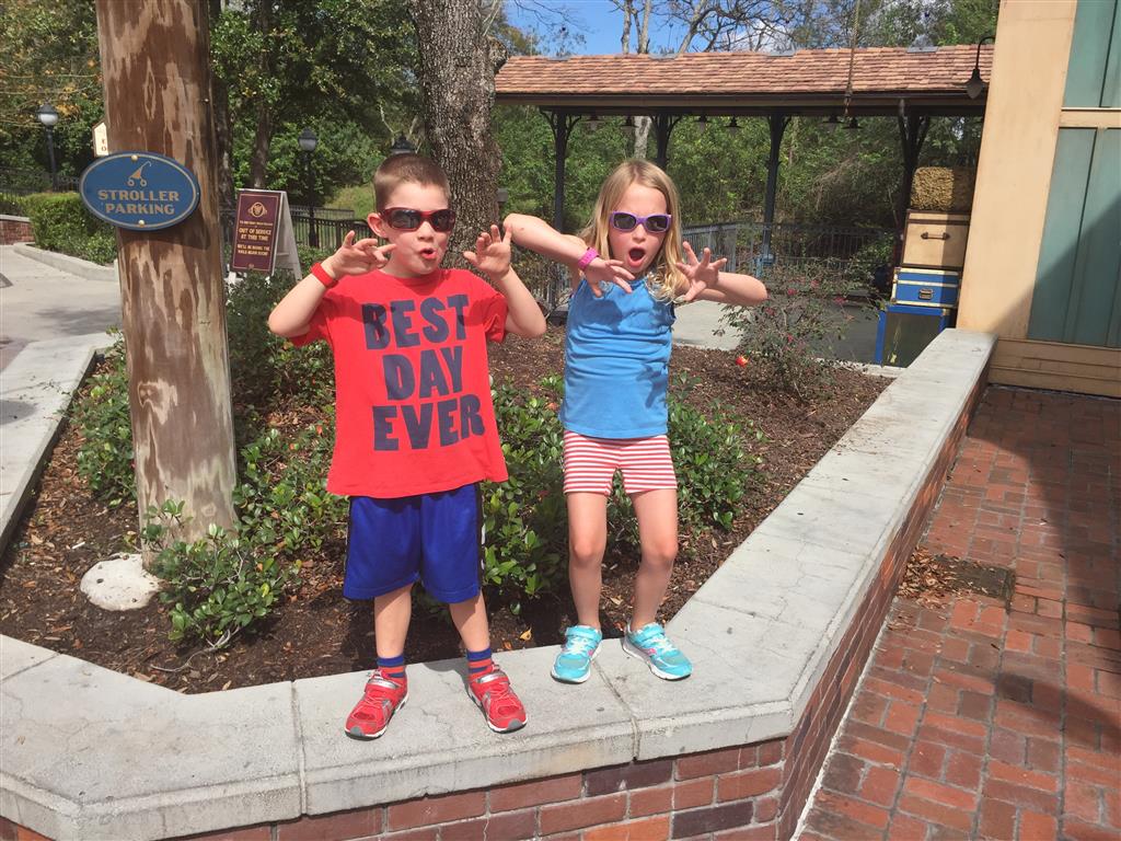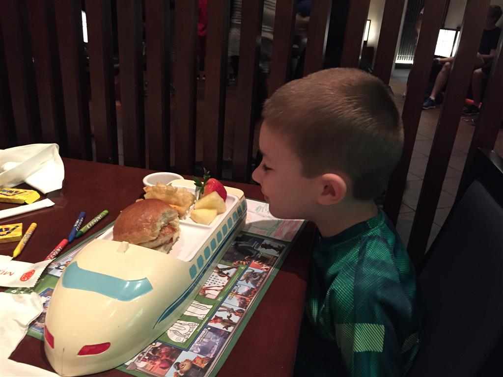 Day two took us to Epcot, and we stared with the “Soarin’” ride, which the kiddos found a bit too scary as well. A few slower rides and a movie and we were back on track. Dad was really looking forward to “Mission to Space”, but it didn’t turn out to be a favorite. After a REALLY long wait for pictures with Mickey and Minnie, we enjoyed the Nemo Under the Sea ride, and checking out all the cool marine life. Then, it was off to “Norway” for the Frozen ride. The backwards waterfall was a little scary, but for the most part they liked this one. We had dinner in “Japan”, and Henry was the happiest guy in the room when his meal came served on a monorail plate. We finished the day with a photo session with Anna and Elsa.
