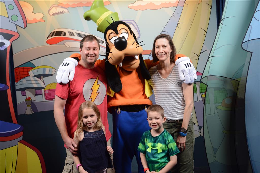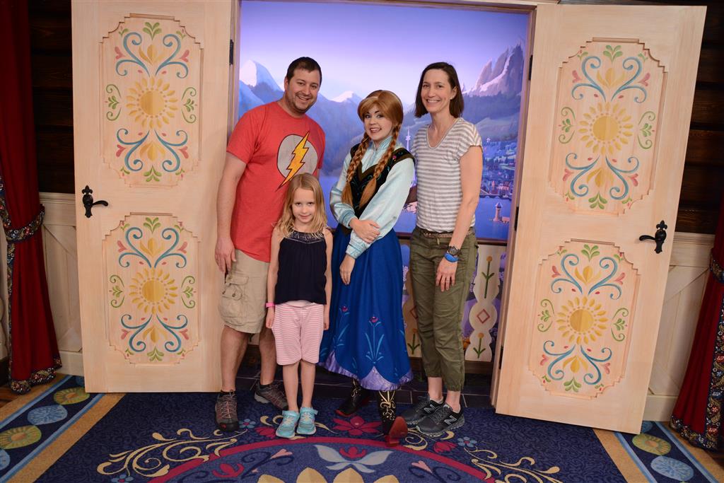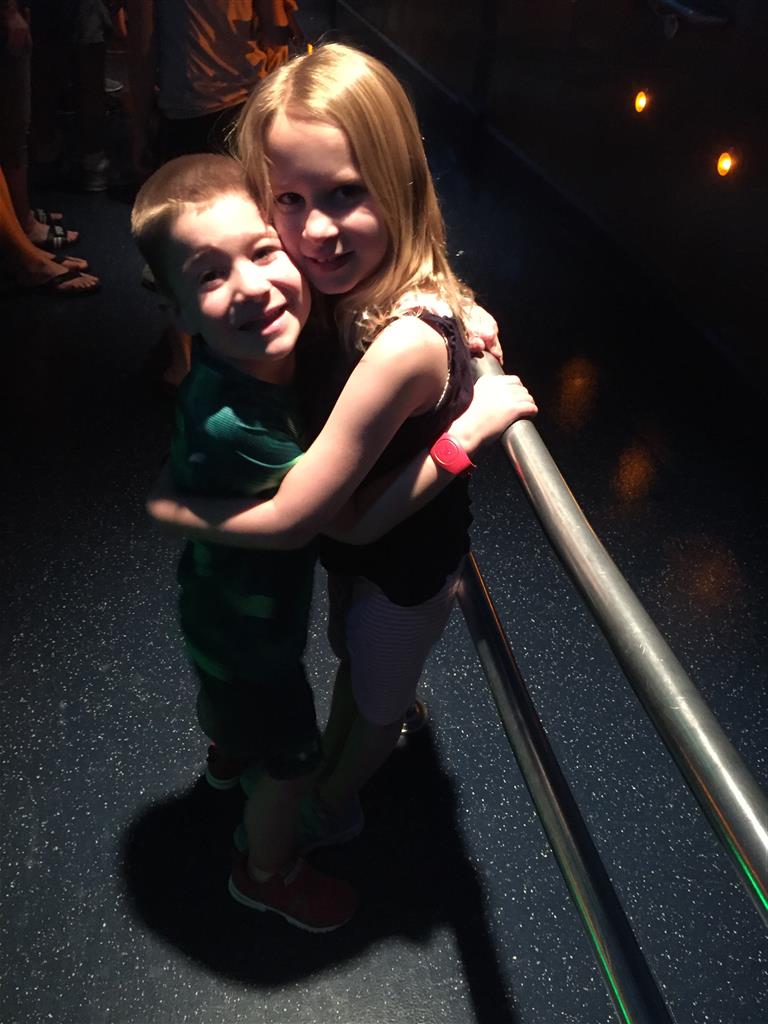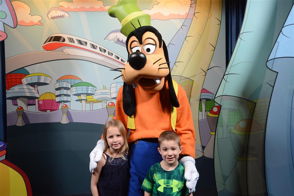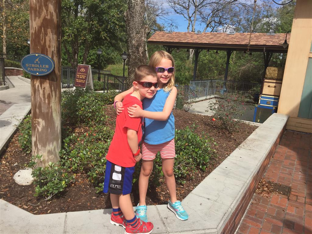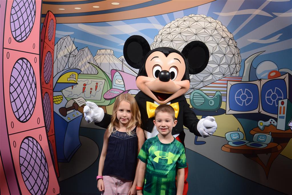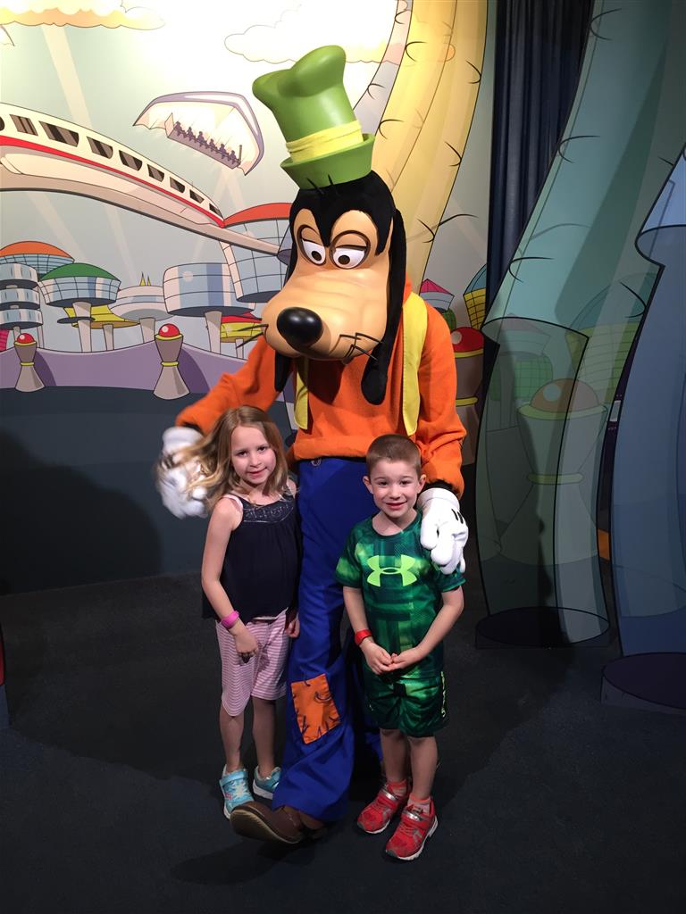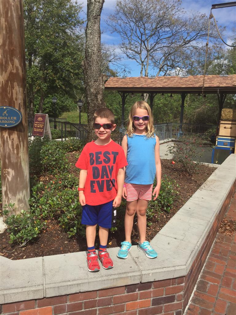Day two took us to Epcot, and we stared with the “Soarin’” ride, which the kiddos found a bit too scary as well. A few slower rides and a movie and we were back on track. Dad was really looking forward to “Mission to Space”, but it didn’t turn out to be a favorite. After a REALLY long wait for pictures with Mickey and Minnie, we enjoyed the Nemo Under the Sea ride, and checking out all the cool marine life. Then, it was off to “Norway” for the Frozen ride. The backwards waterfall was a little scary, but for the most part they liked this one. We had dinner in “Japan”, and Henry was the happiest guy in the room when his meal came served on a monorail plate. We finished the day with a photo session with Anna and Elsa.