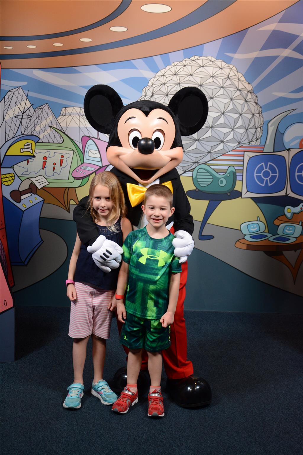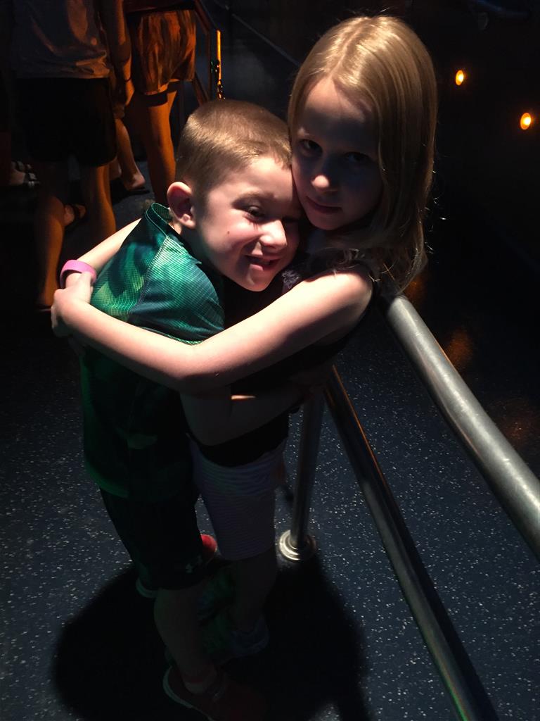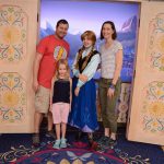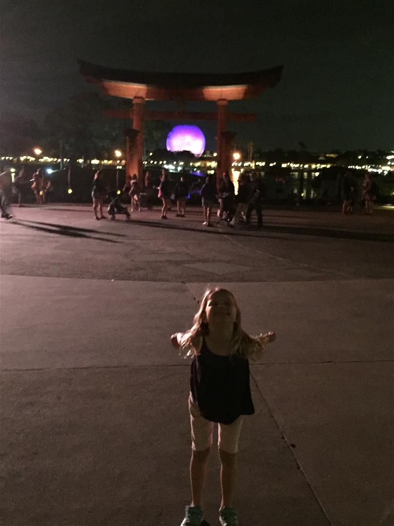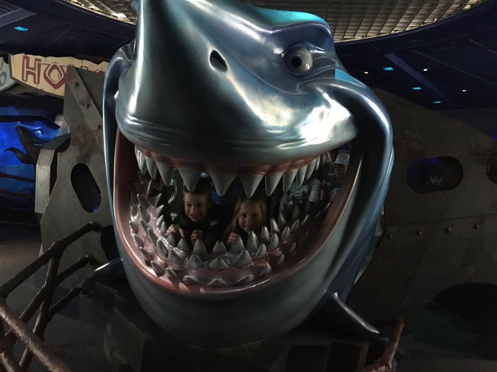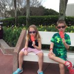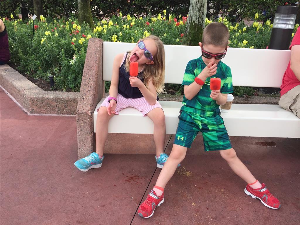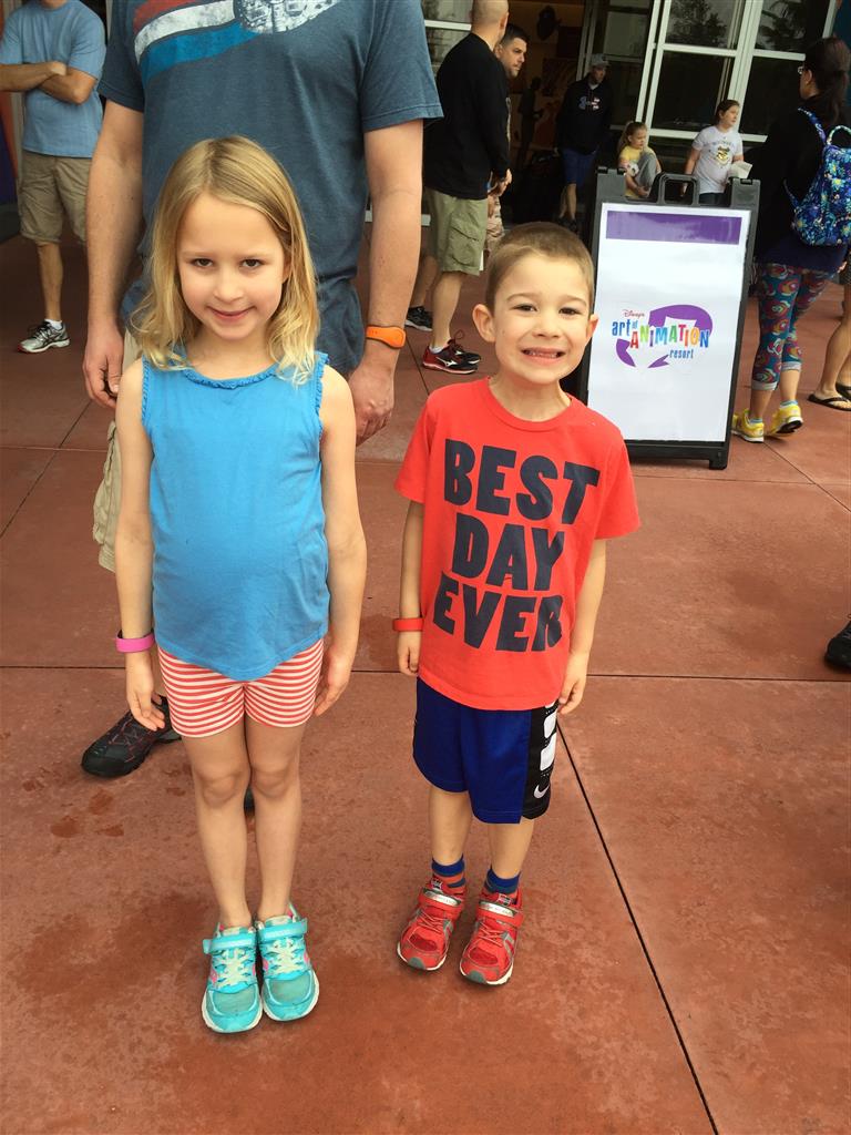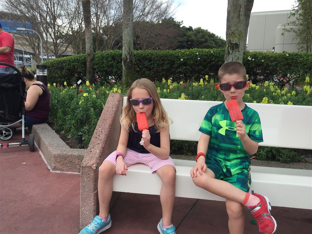 Day two took us to Epcot, and we stared with the “Soarin’” ride, which the kiddos found a bit too scary as well. A few slower rides and a movie and we were back on track. Dad was really looking forward to “Mission to Space”, but it didn’t turn out to be a favorite. After a REALLY long wait for pictures with Mickey and Minnie, we enjoyed the Nemo Under the Sea ride, and checking out all the cool marine life. Then, it was off to “Norway” for the Frozen ride. The backwards waterfall was a little scary, but for the most part they liked this one. We had dinner in “Japan”, and Henry was the happiest guy in the room when his meal came served on a monorail plate. We finished the day with a photo session with Anna and Elsa.