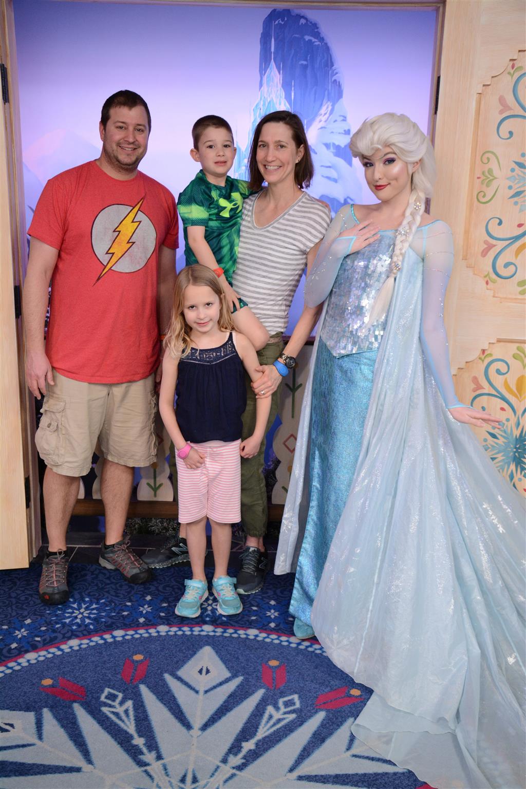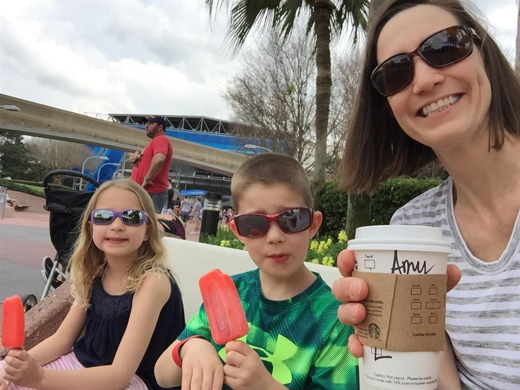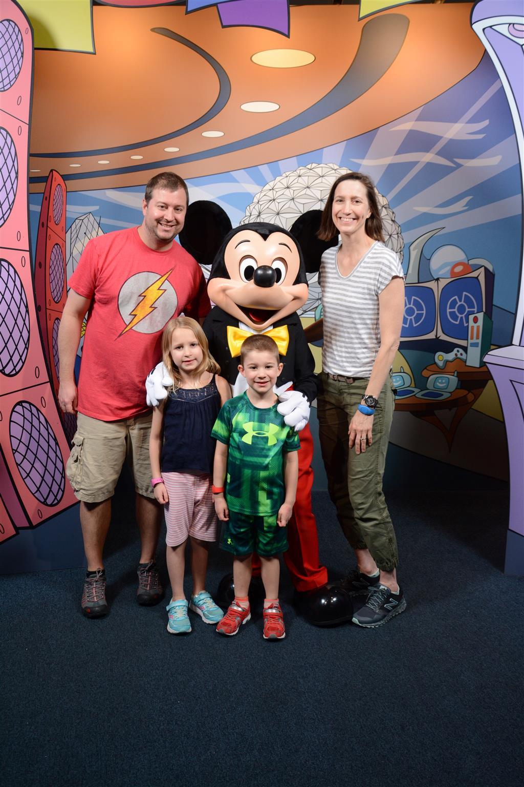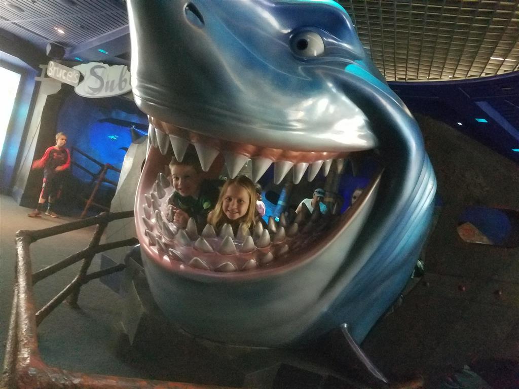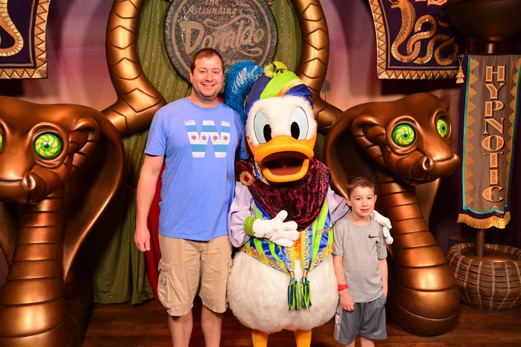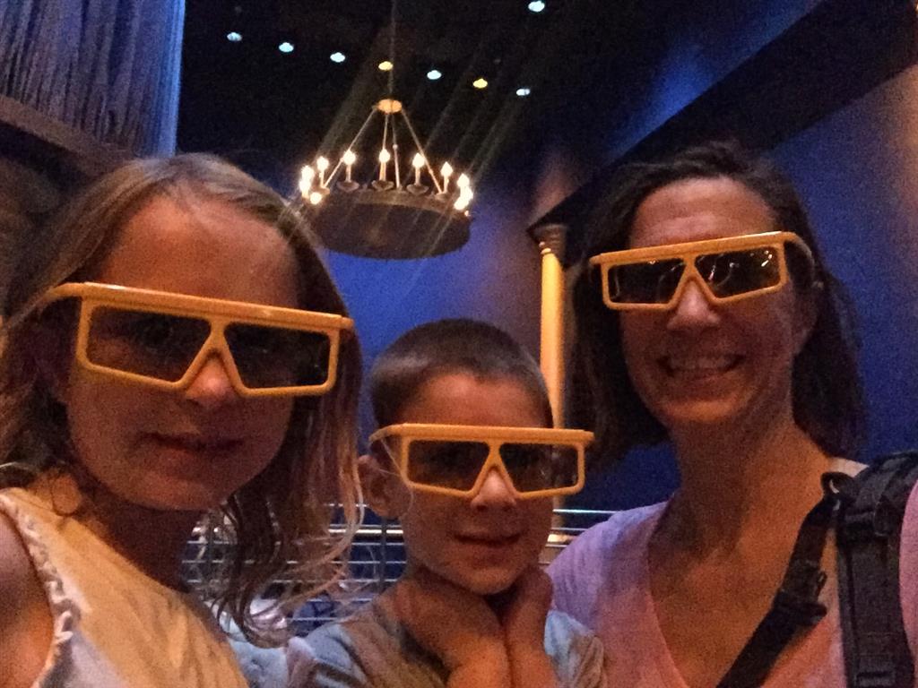 Day two took us to Epcot, and we stared with the “Soarin’” ride, which the kiddos found a bit too scary as well. A few slower rides and a movie and we were back on track. Dad was really looking forward to “Mission to Space”, but it didn’t turn out to be a favorite. After a REALLY long wait for pictures with Mickey and Minnie, we enjoyed the Nemo Under the Sea ride, and checking out all the cool marine life. Then, it was off to “Norway” for the Frozen ride. The backwards waterfall was a little scary, but for the most part they liked this one. We had dinner in “Japan”, and Henry was the happiest guy in the room when his meal came served on a monorail plate. We finished the day with a photo session with Anna and Elsa.