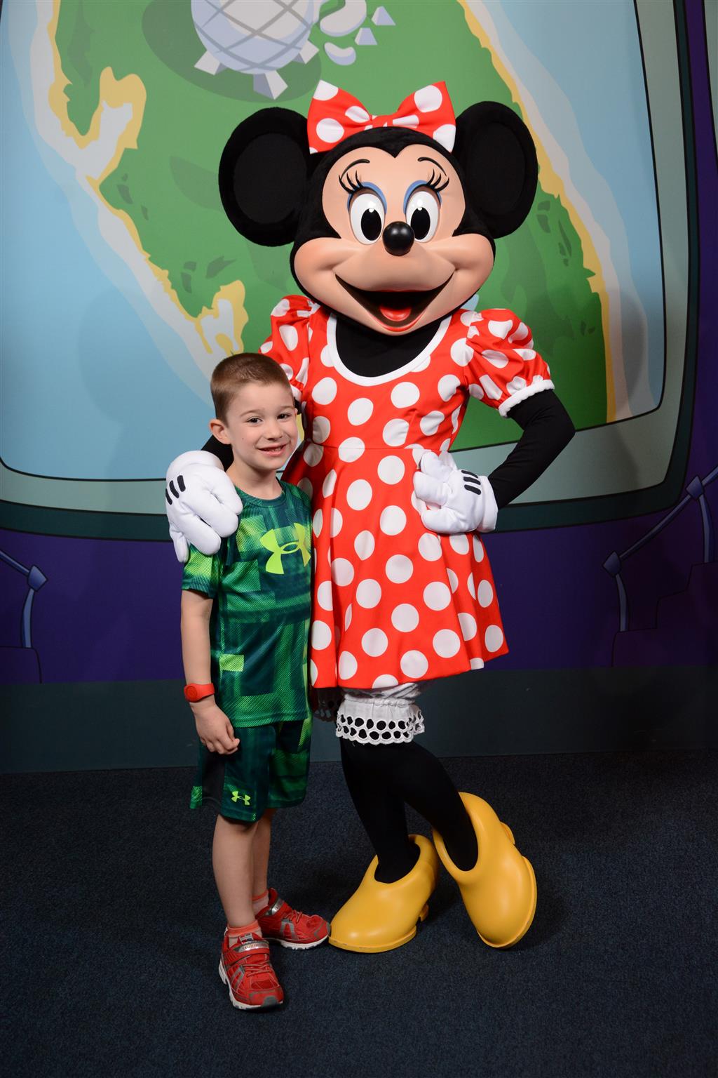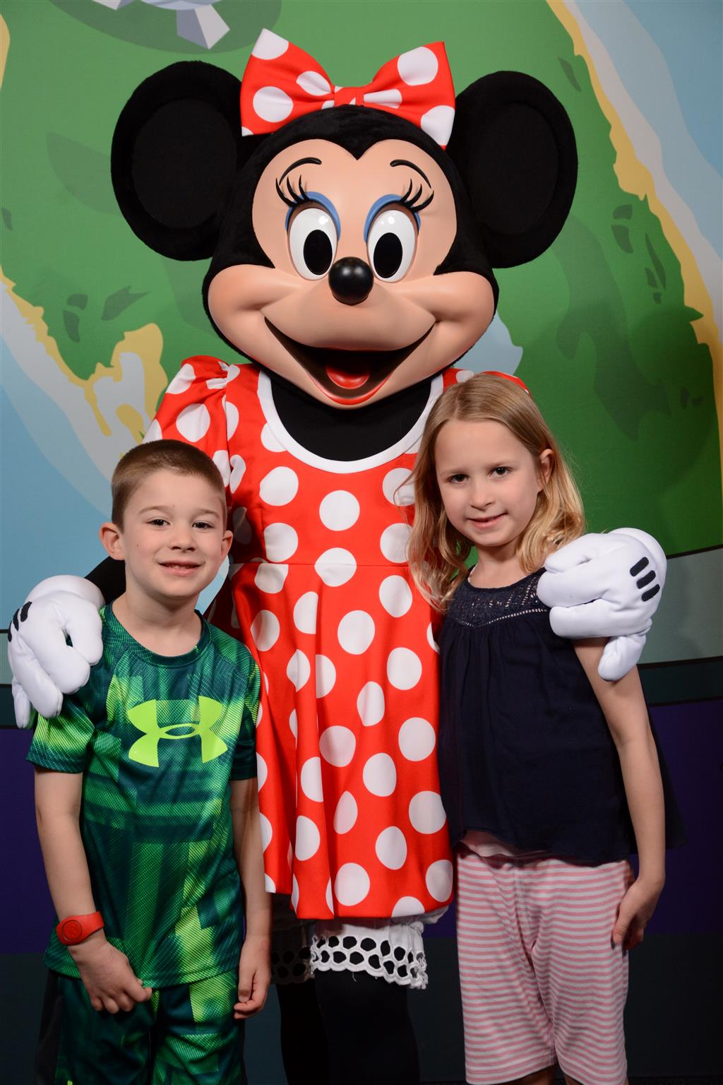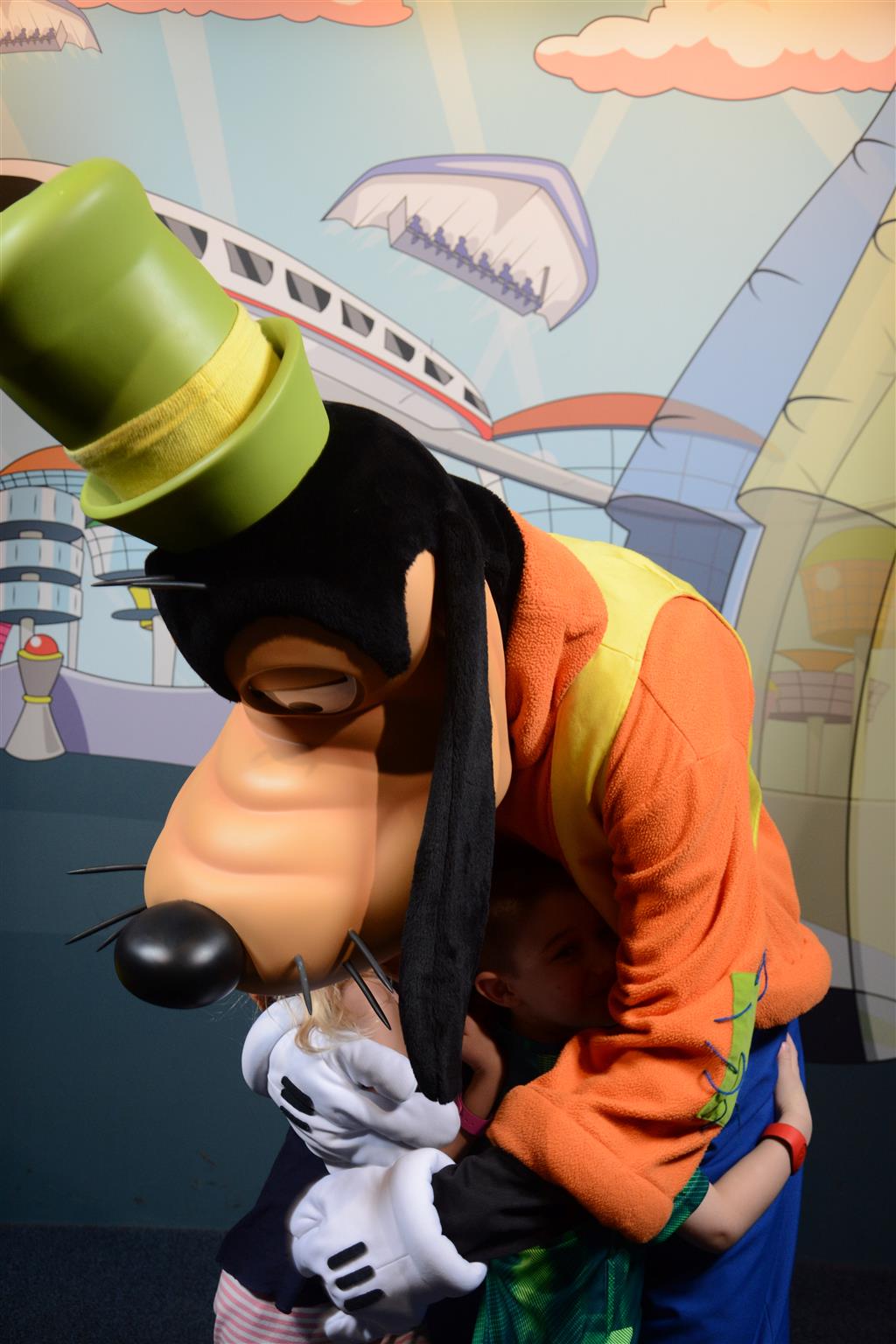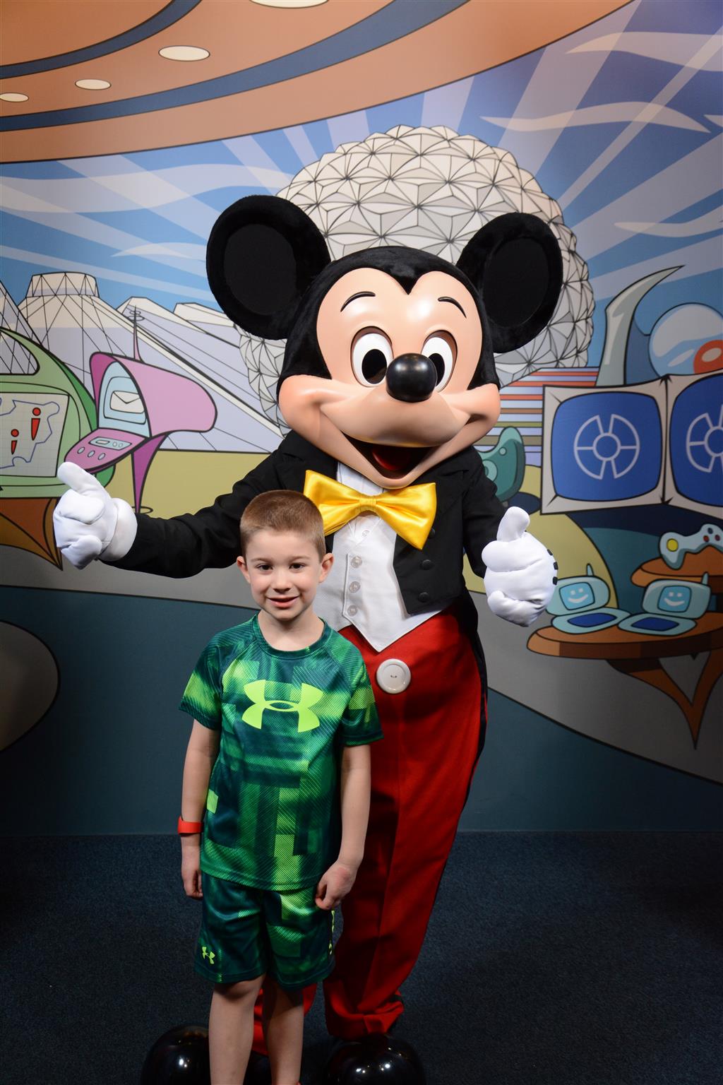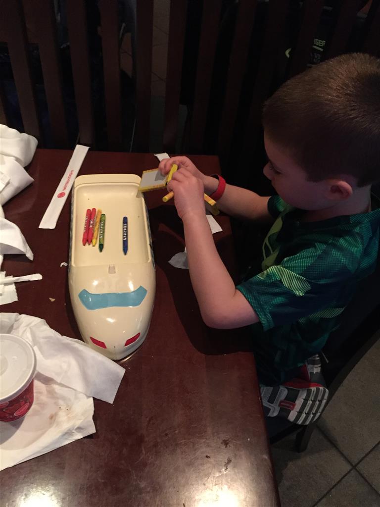 Day two took us to Epcot, and we stared with the “Soarin’” ride, which the kiddos found a bit too scary as well. A few slower rides and a movie and we were back on track. Dad was really looking forward to “Mission to Space”, but it didn’t turn out to be a favorite. After a REALLY long wait for pictures with Mickey and Minnie, we enjoyed the Nemo Under the Sea ride, and checking out all the cool marine life. Then, it was off to “Norway” for the Frozen ride. The backwards waterfall was a little scary, but for the most part they liked this one. We had dinner in “Japan”, and Henry was the happiest guy in the room when his meal came served on a monorail plate. We finished the day with a photo session with Anna and Elsa.