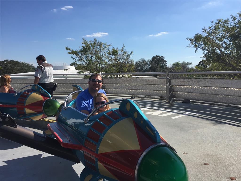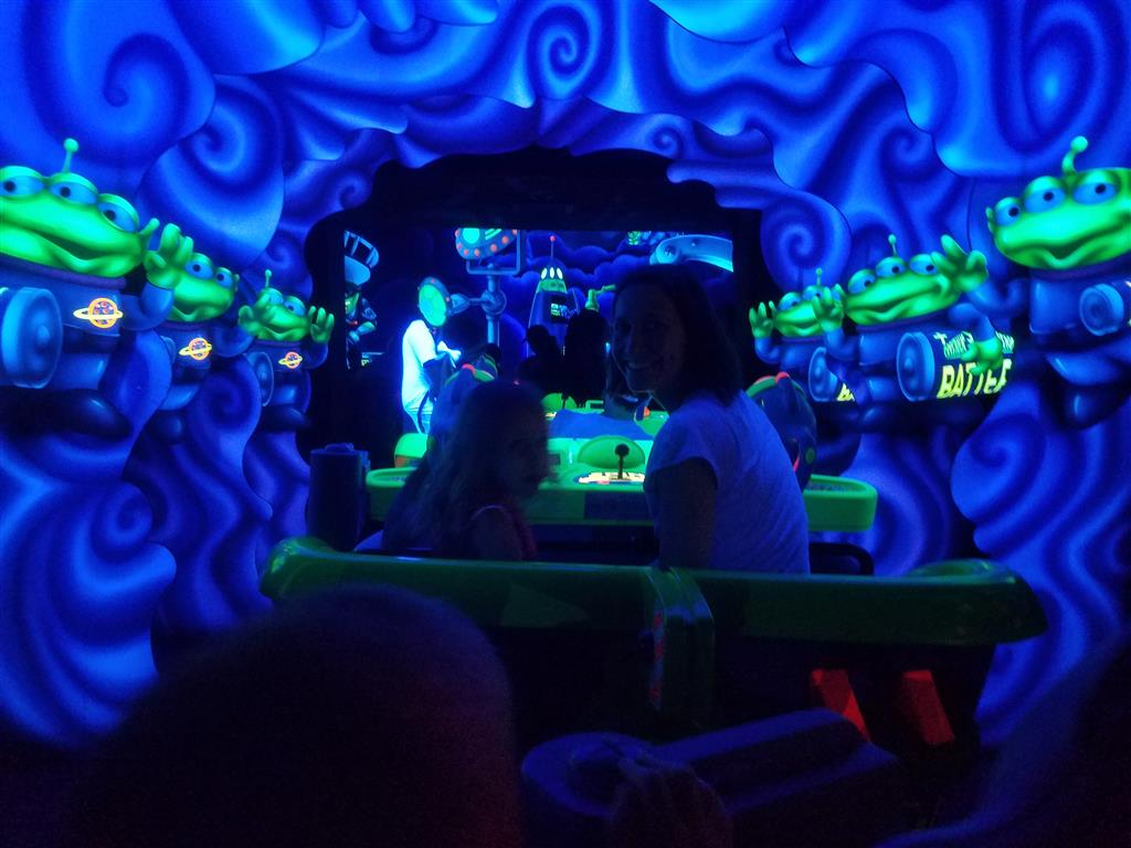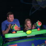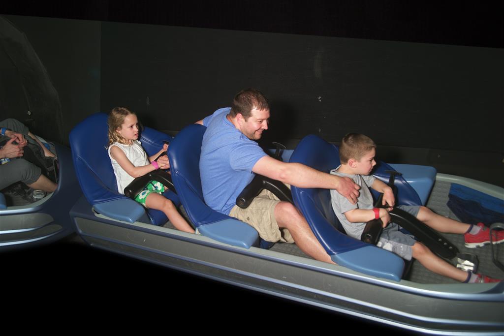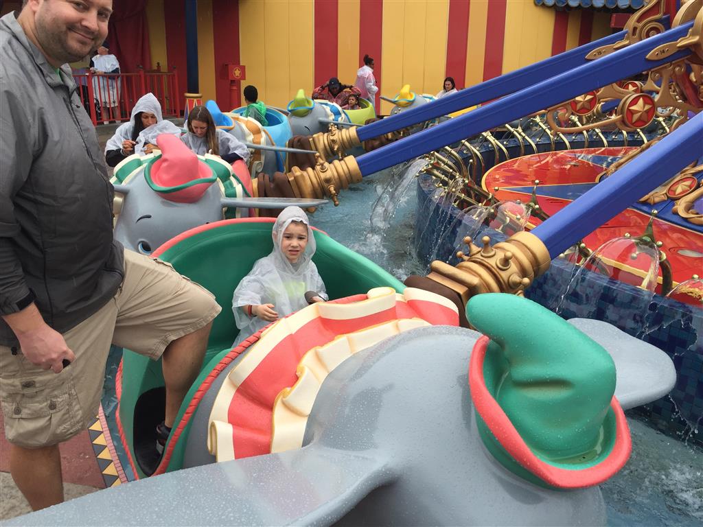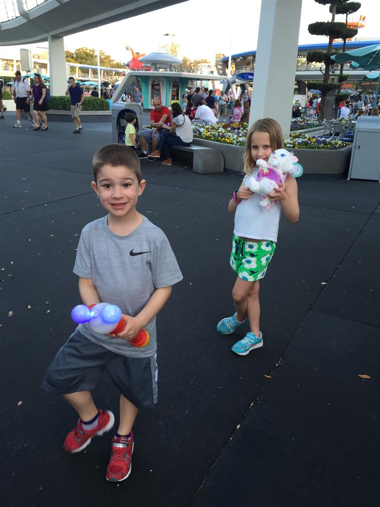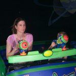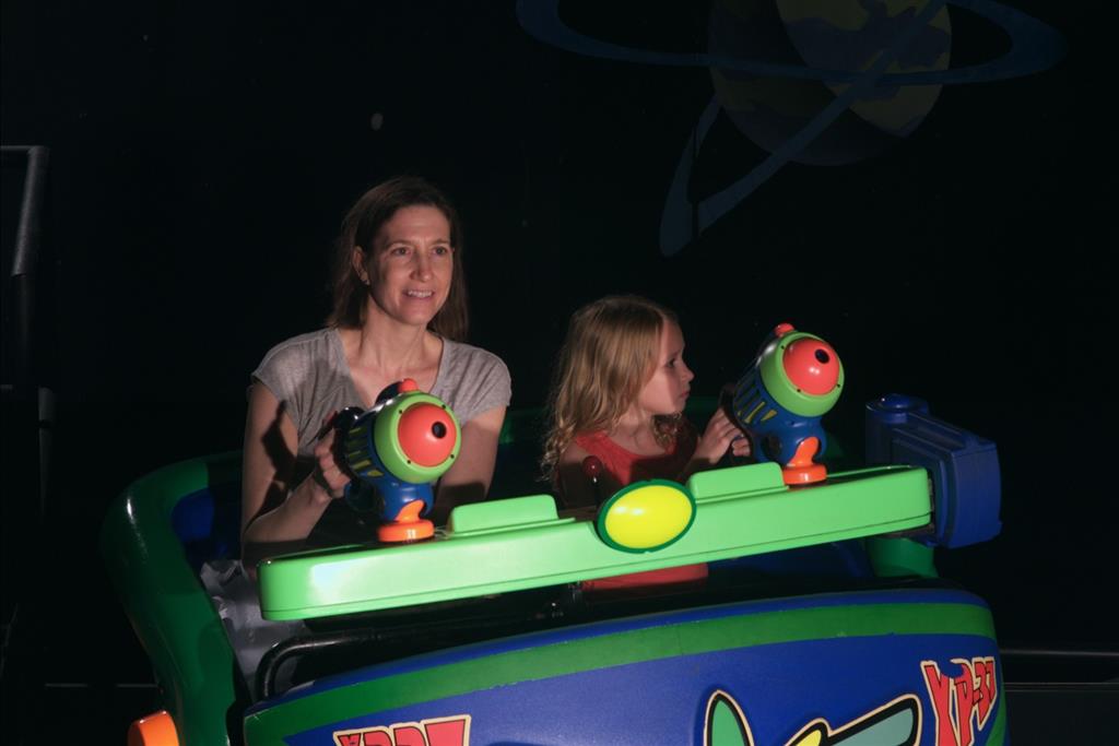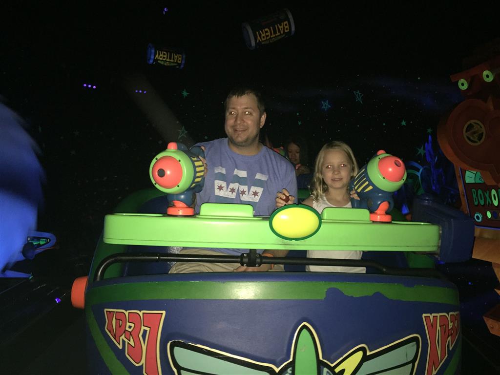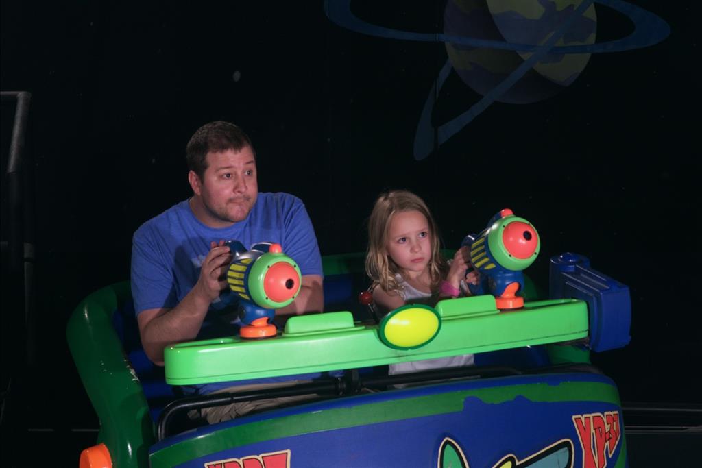 Day three was back to the Magic Kingdom, we hid Thunder Mountain and Splash Mountain, and then got soaked with a giant rainstorm. Some tasty tacos for lunch, and then it was off to the circus area for the Dumbo ride, and the Barnstormer mini-rollercoaster. Turns out this is the one we should have started with, as the kids loved it! After a few runs on it, they were thinking that Thunder Mountain was pretty fun after all, and wanted to give it another try. We also hit Buzz Lightyear again, and this time Dad tied the all time highest score on the ride, maxing out the scoreboard with 999999. I didn’t even get a certificate or anything! Of course, it helped that the ride broke down for about 10 minutes and left me free to shoot Emperor Zurg repeatedly.