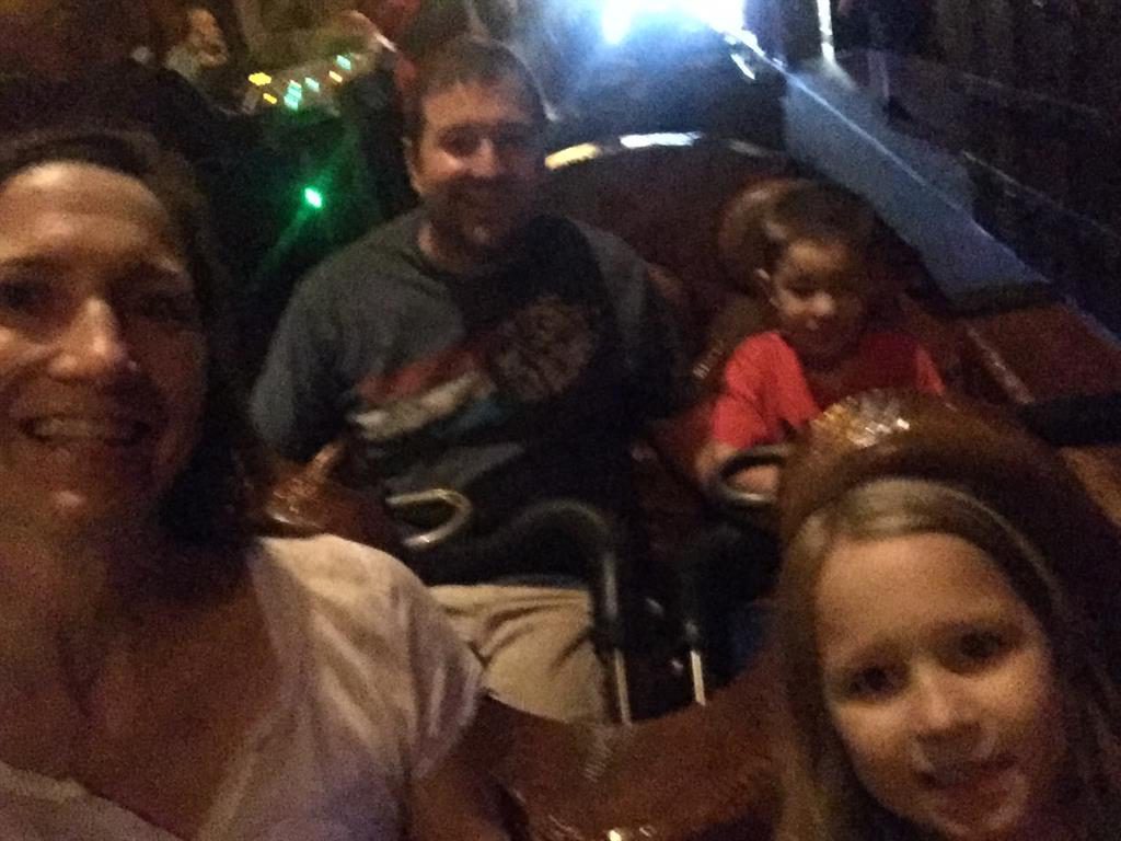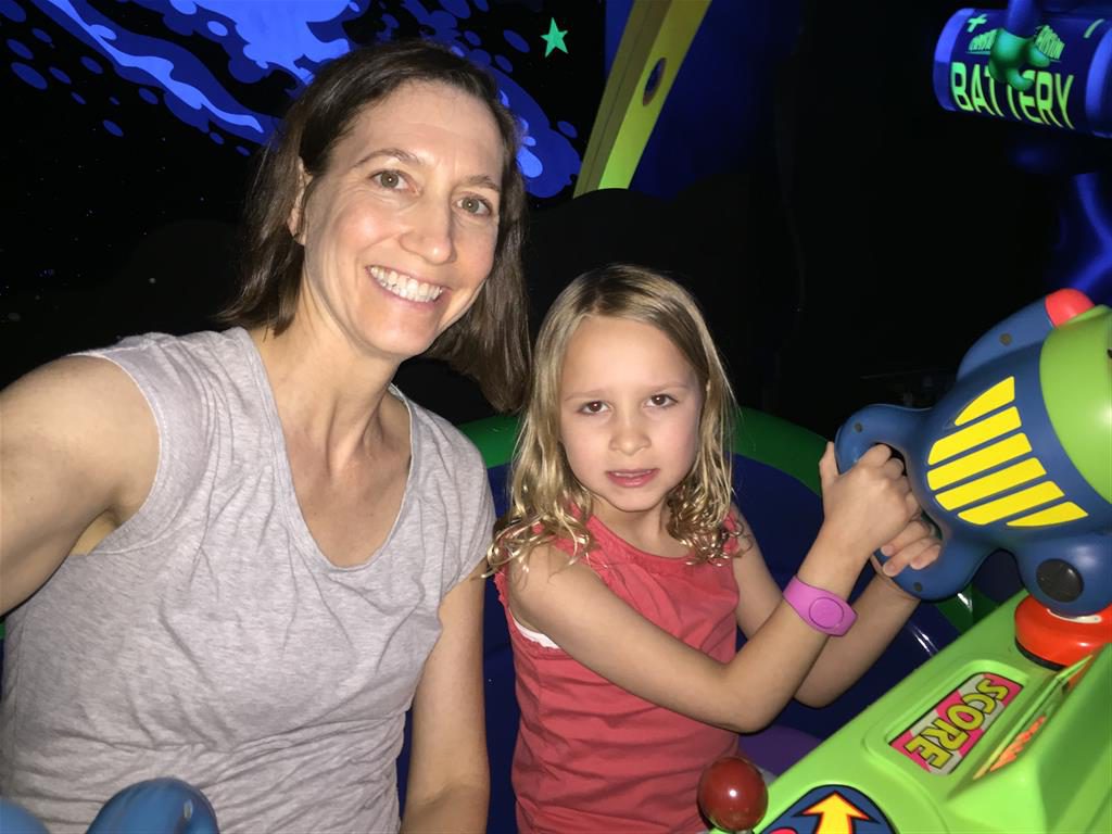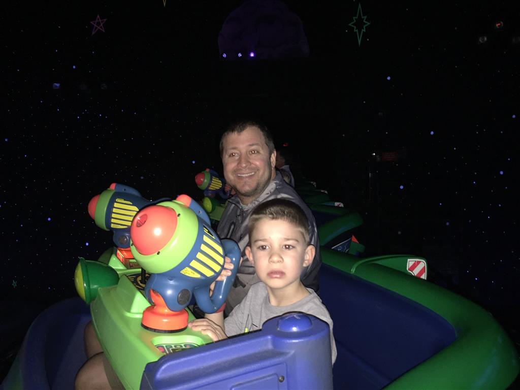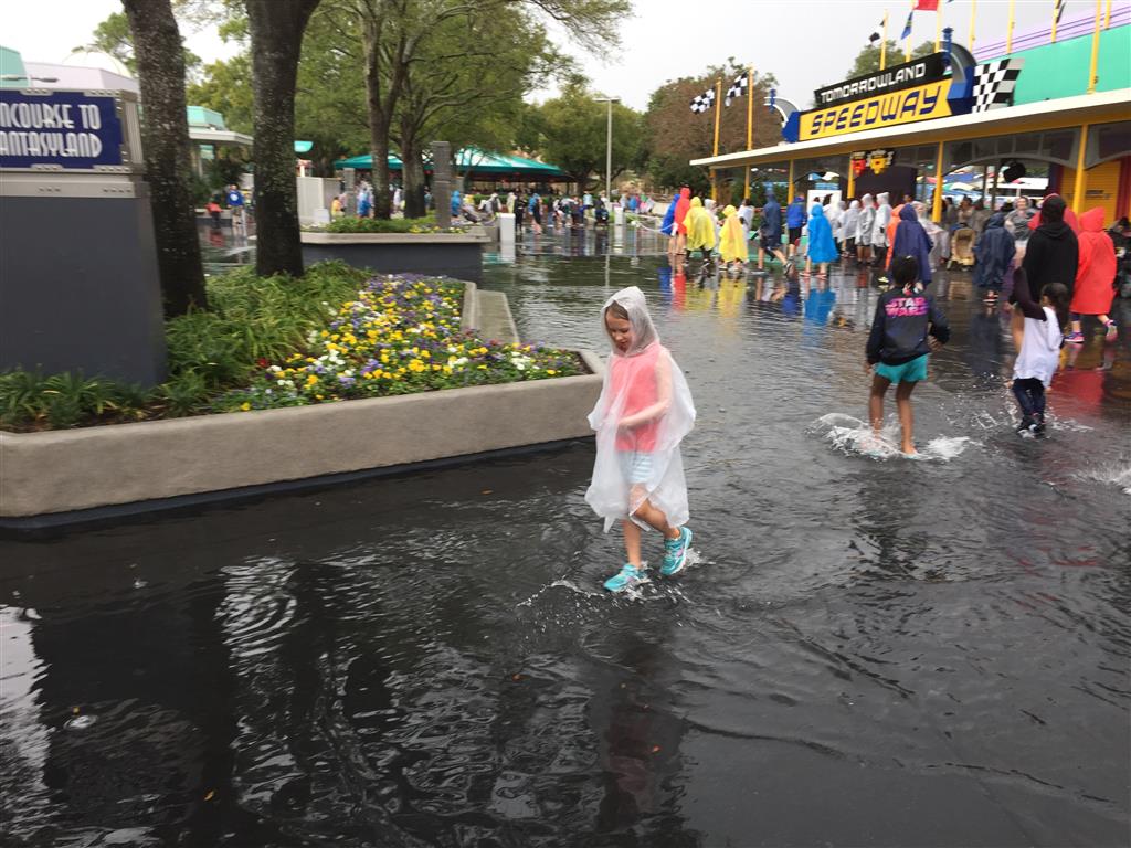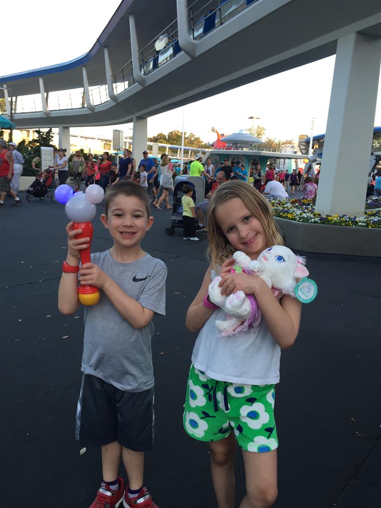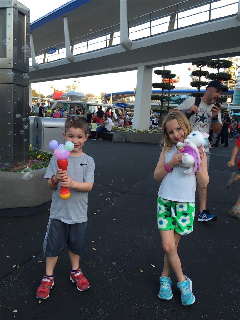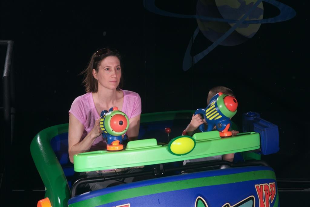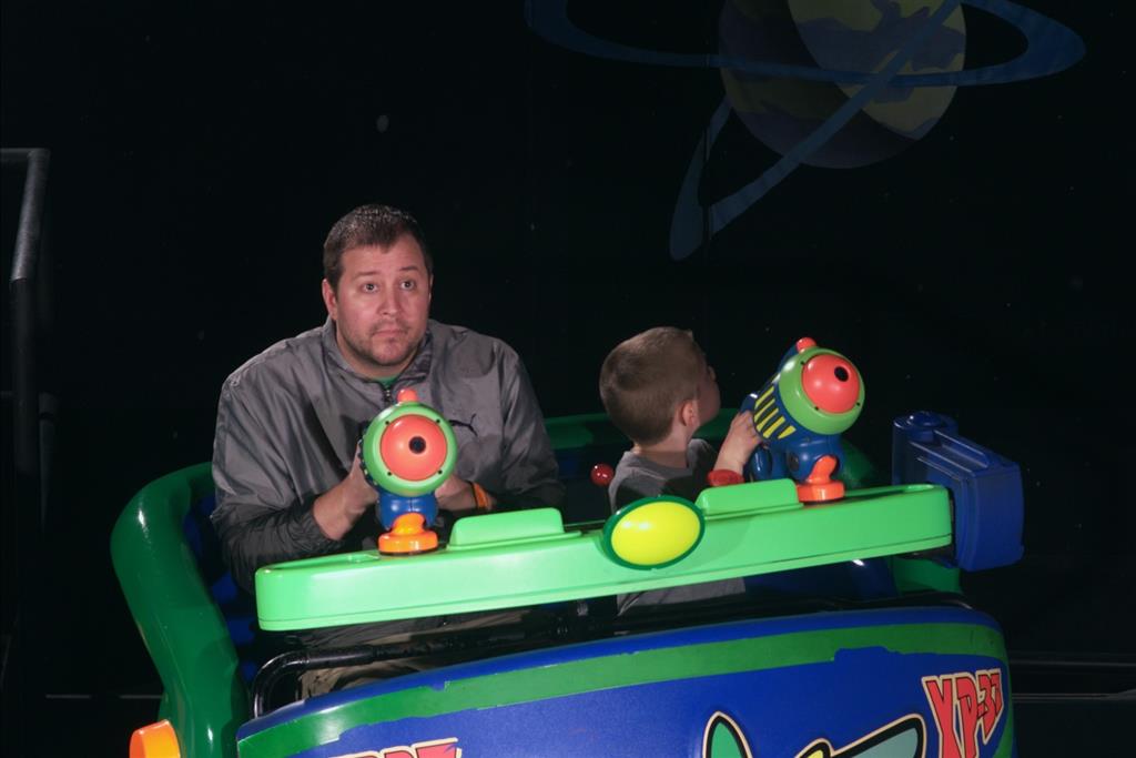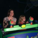 Day three was back to the Magic Kingdom, we hid Thunder Mountain and Splash Mountain, and then got soaked with a giant rainstorm. Some tasty tacos for lunch, and then it was off to the circus area for the Dumbo ride, and the Barnstormer mini-rollercoaster. Turns out this is the one we should have started with, as the kids loved it! After a few runs on it, they were thinking that Thunder Mountain was pretty fun after all, and wanted to give it another try. We also hit Buzz Lightyear again, and this time Dad tied the all time highest score on the ride, maxing out the scoreboard with 999999. I didn’t even get a certificate or anything! Of course, it helped that the ride broke down for about 10 minutes and left me free to shoot Emperor Zurg repeatedly.