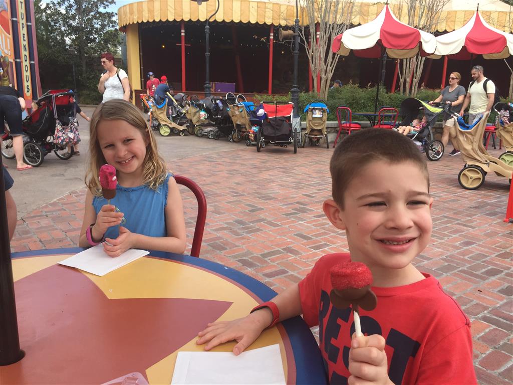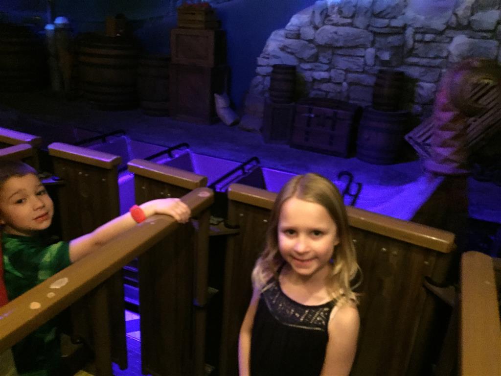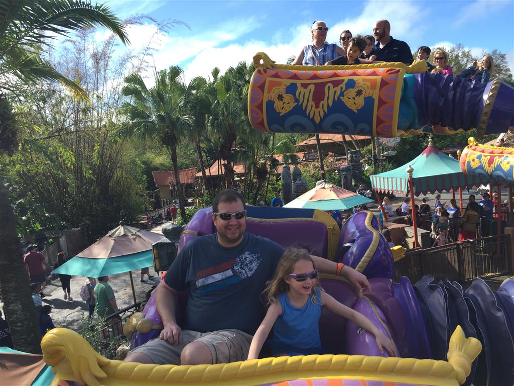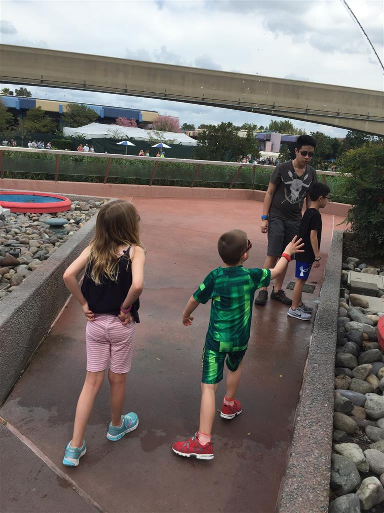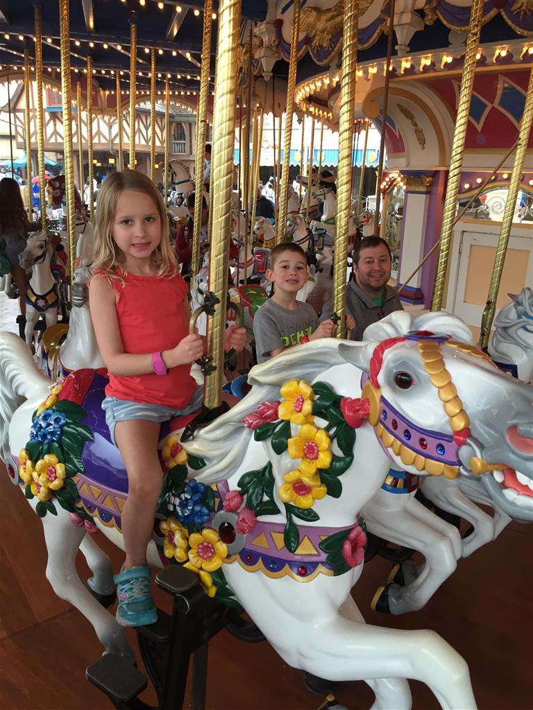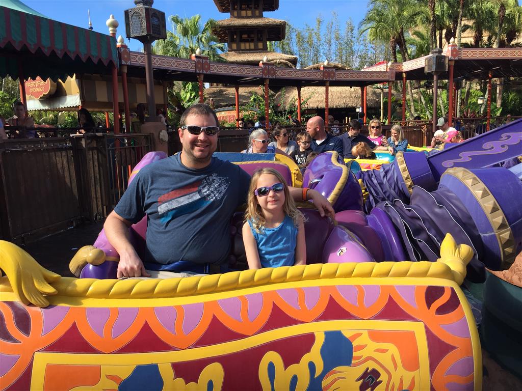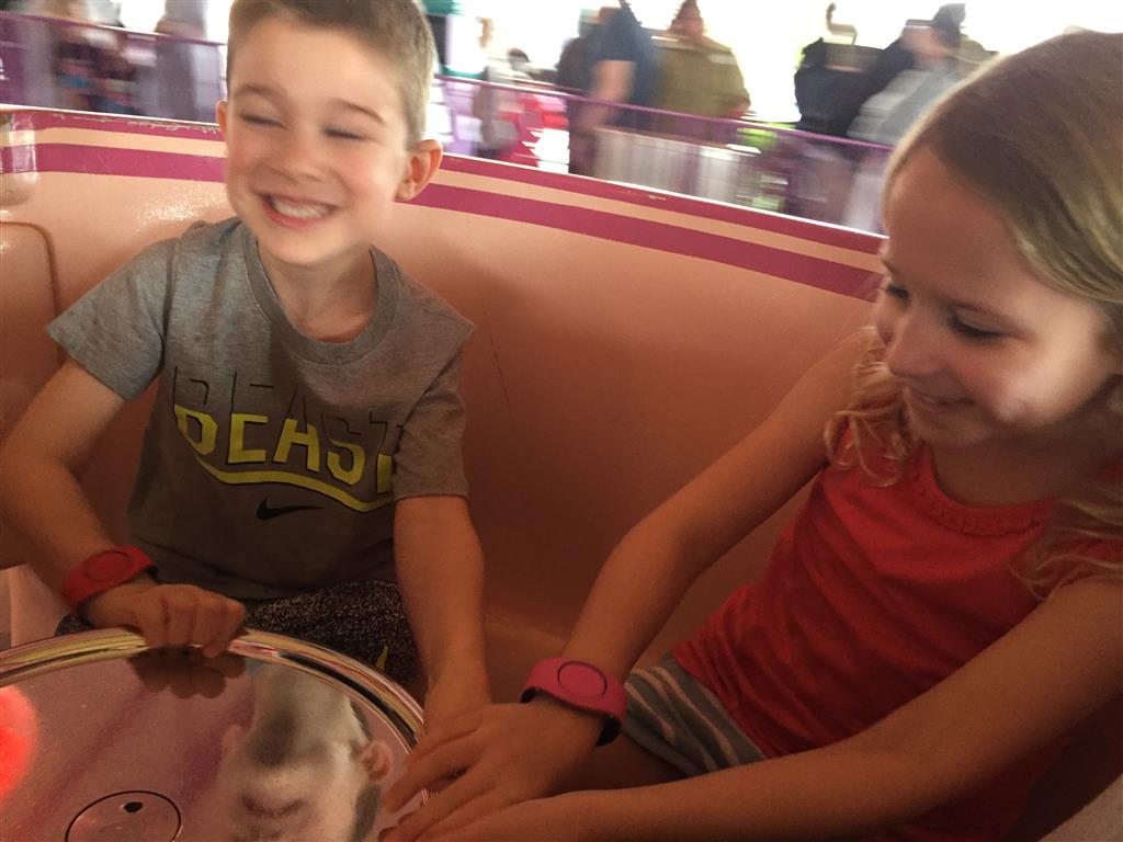 Day three was back to the Magic Kingdom, we hid Thunder Mountain and Splash Mountain, and then got soaked with a giant rainstorm. Some tasty tacos for lunch, and then it was off to the circus area for the Dumbo ride, and the Barnstormer mini-rollercoaster. Turns out this is the one we should have started with, as the kids loved it! After a few runs on it, they were thinking that Thunder Mountain was pretty fun after all, and wanted to give it another try. We also hit Buzz Lightyear again, and this time Dad tied the all time highest score on the ride, maxing out the scoreboard with 999999. I didn’t even get a certificate or anything! Of course, it helped that the ride broke down for about 10 minutes and left me free to shoot Emperor Zurg repeatedly.