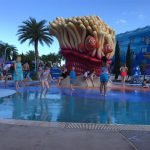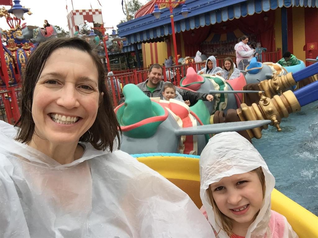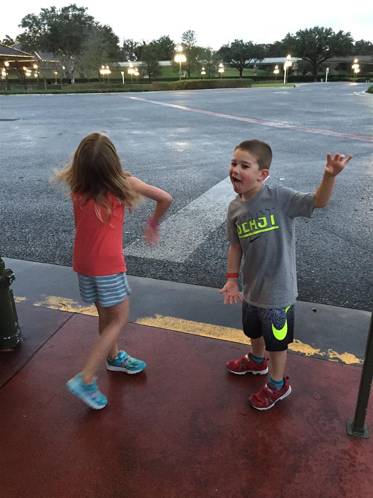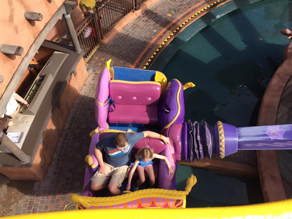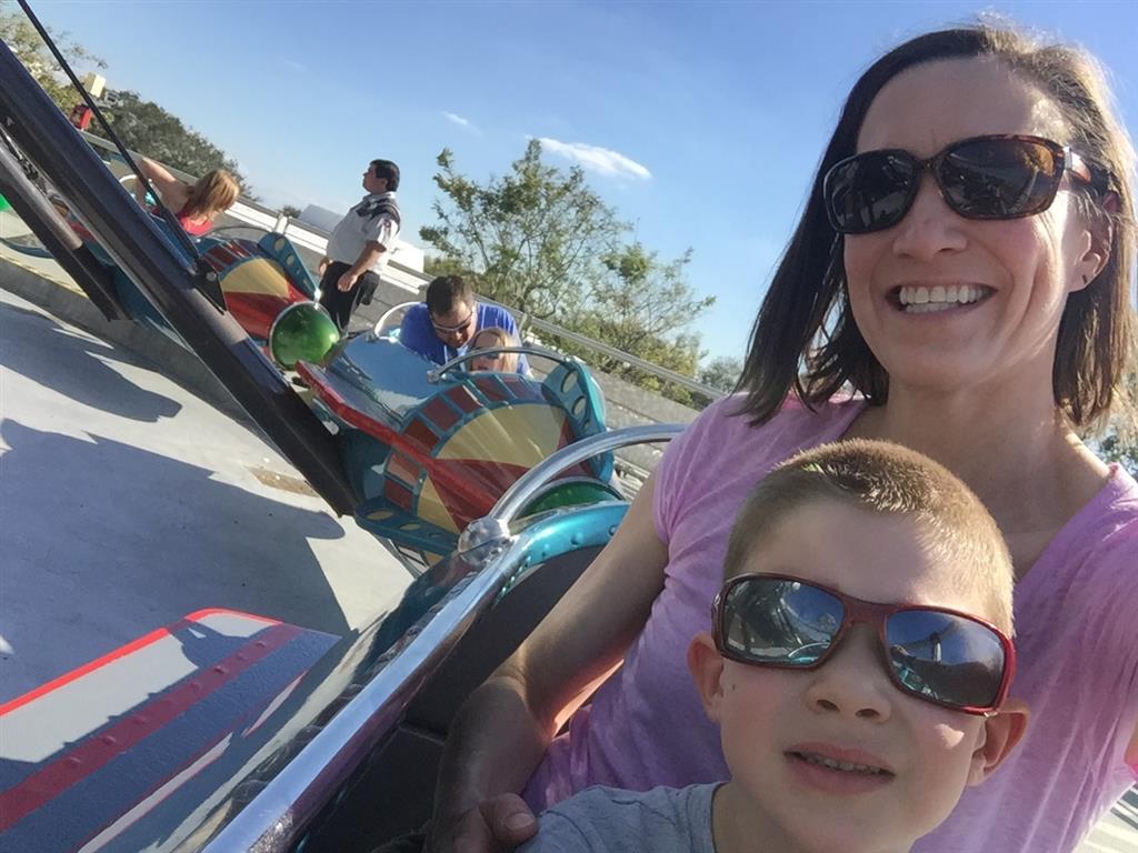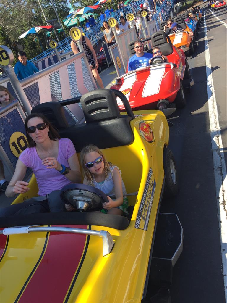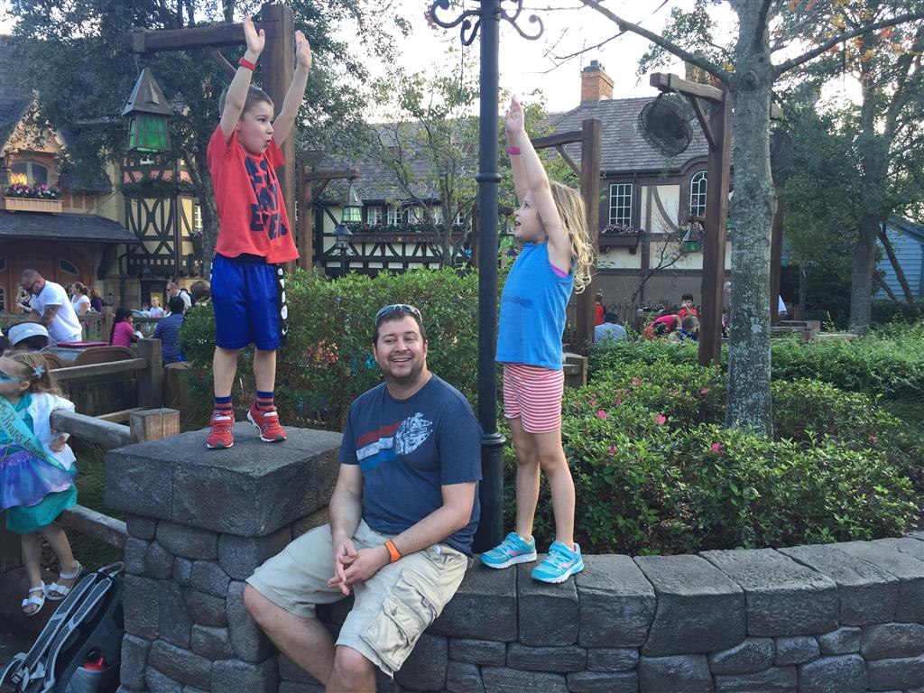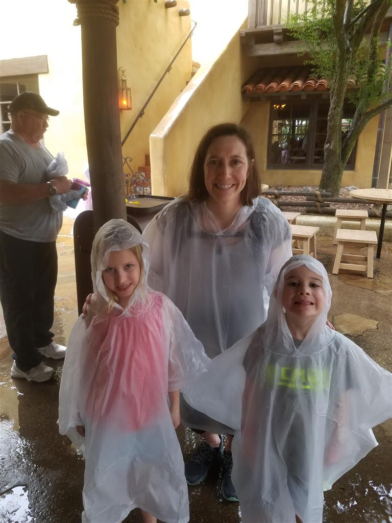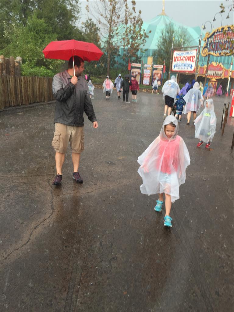 Day three was back to the Magic Kingdom, we hid Thunder Mountain and Splash Mountain, and then got soaked with a giant rainstorm. Some tasty tacos for lunch, and then it was off to the circus area for the Dumbo ride, and the Barnstormer mini-rollercoaster. Turns out this is the one we should have started with, as the kids loved it! After a few runs on it, they were thinking that Thunder Mountain was pretty fun after all, and wanted to give it another try. We also hit Buzz Lightyear again, and this time Dad tied the all time highest score on the ride, maxing out the scoreboard with 999999. I didn’t even get a certificate or anything! Of course, it helped that the ride broke down for about 10 minutes and left me free to shoot Emperor Zurg repeatedly.