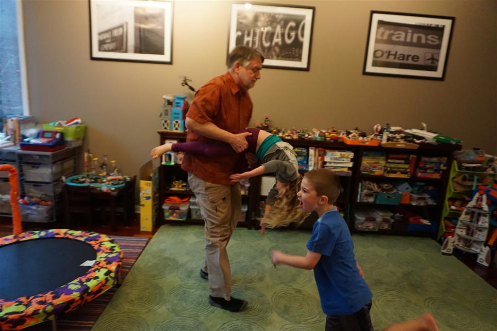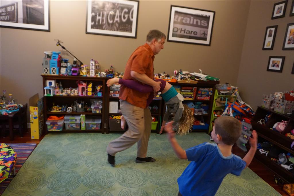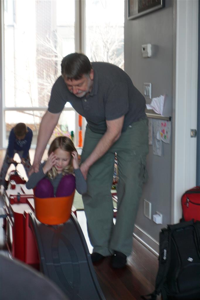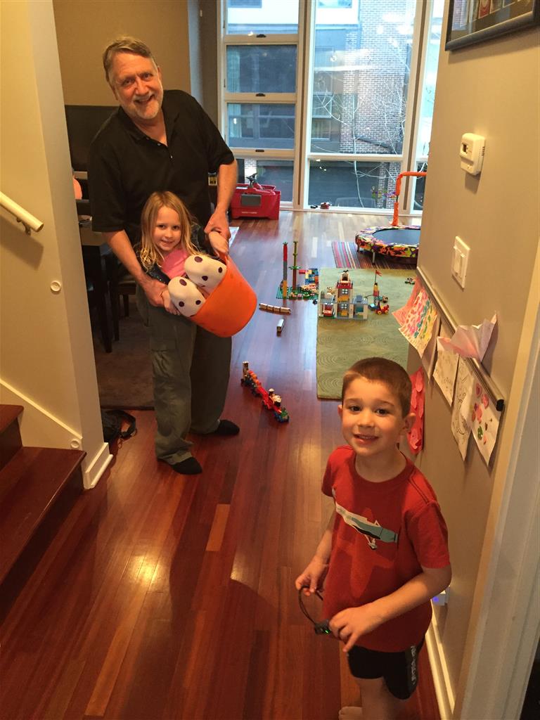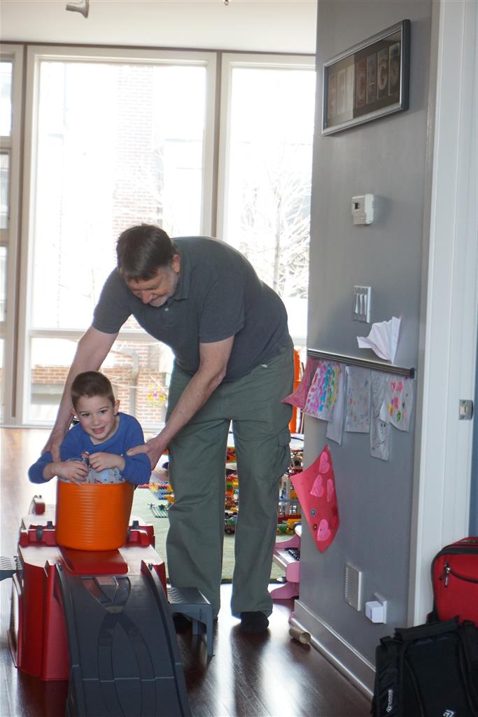As if that wasn’t enough activity for one week, when we got home Papa was in town for a visit. The kiddos were super excited to see him, and immediately went looking for the orange bucket to do bucked rides. Amazingly, they were both still able to fit inside. We had lots of fun playing games and getting nighttime stores and videos with Papa. On Saturday night, Eleanor kept Papa up way past his bedtime with some crazy storytelling – we are all pretty sure that Papa fell asleep first.