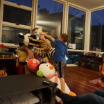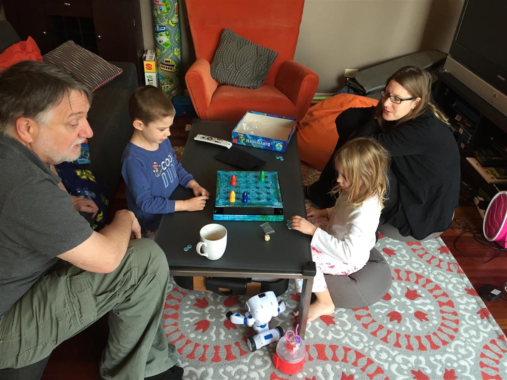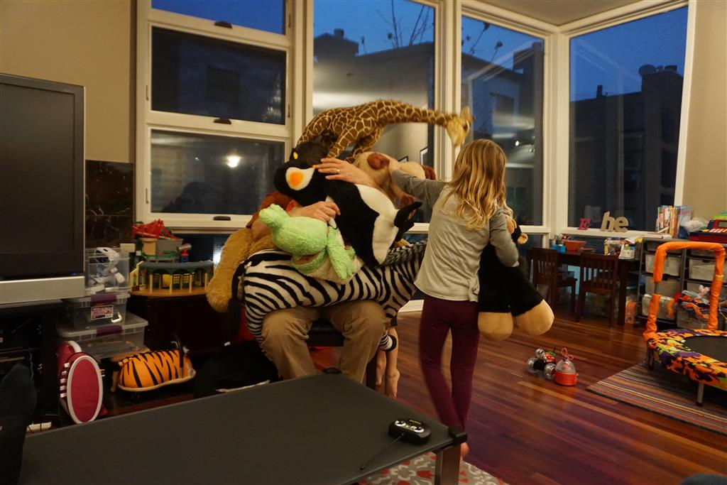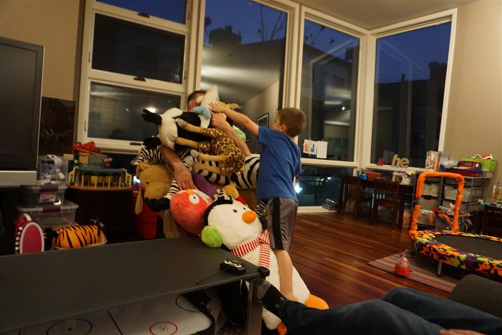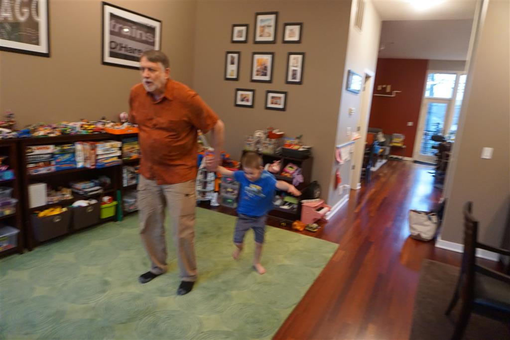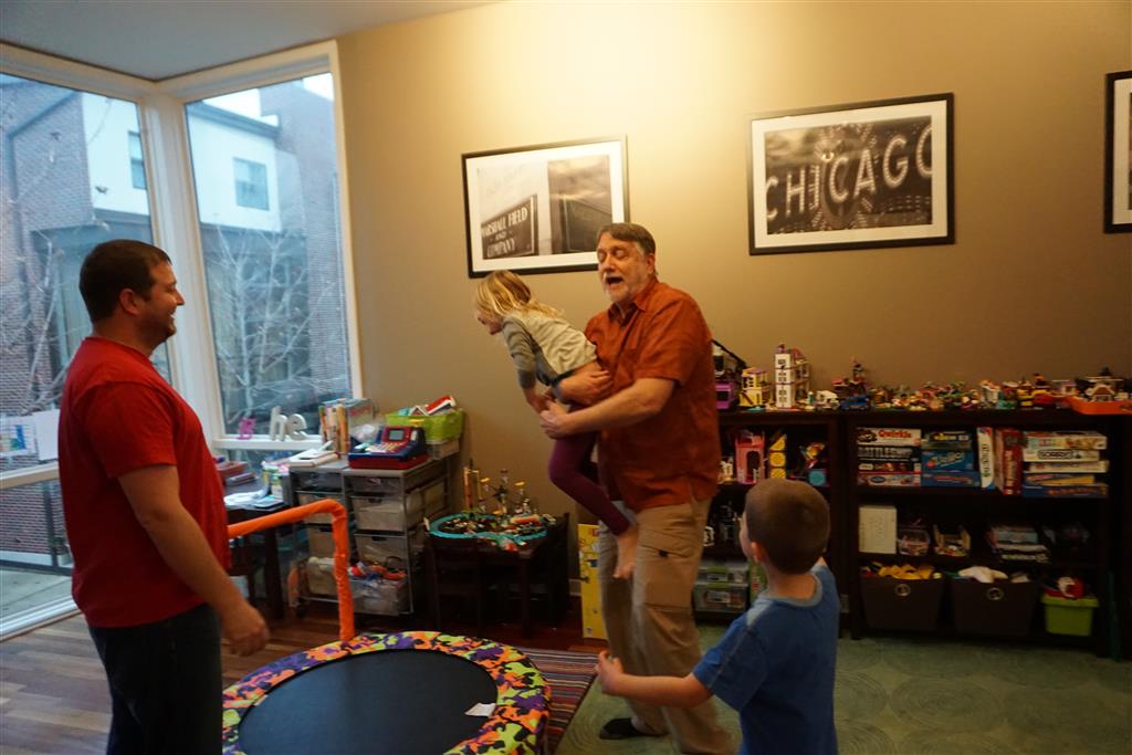 As if that wasn’t enough activity for one week, when we got home Papa was in town for a visit. The kiddos were super excited to see him, and immediately went looking for the orange bucket to do bucked rides. Amazingly, they were both still able to fit inside. We had lots of fun playing games and getting nighttime stores and videos with Papa. On Saturday night, Eleanor kept Papa up way past his bedtime with some crazy storytelling – we are all pretty sure that Papa fell asleep first.
