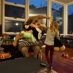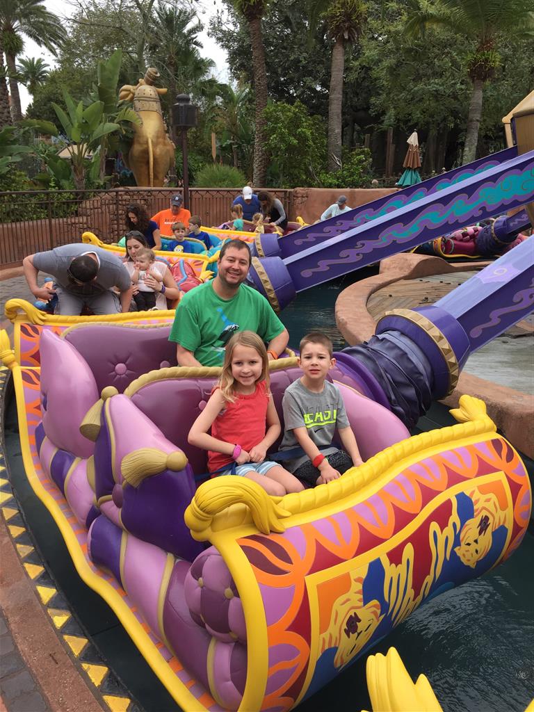 Eleanor and Henry had a week off from school, so we decided to take advantage and head down to Disney World. Neither had been before, and they were both pretty excited about it. The trip started off well, with Eleanor and Henry invited up into the cockpit of our plane for a photo. Once we arrived, the kids were excited about all the Lion King and Little Mermaid decorations in our hotel. We hit the pool for an afternoon swim, and then headed out to meet cousins Paula and Tom for dinner at the T-Rex cafe. It was a bit overwhelming at first, but Eleanor loved pointing out each time the giant overhead octopus moved, and Henry couldn’t stop ROAR-ing. The next day we hit the Magic Kingdom for our first rides. We started with the Small World, and then on to Alladin’s Magic Carpet. After that we tried Pirates of the Caribbean, which got a big thumbs down from both kiddos. The racecars were a hit, but then Space Mountain was perhaps a bit to aggressive a pick, both kids were super scared and made us promise we would NEVER do that ride again! I think perhaps if we had done that one at the end them might have been OK, but as our first real roller-coaster it was a bit much. We finished off the day with a desert buffet overlooking the fireworks show.