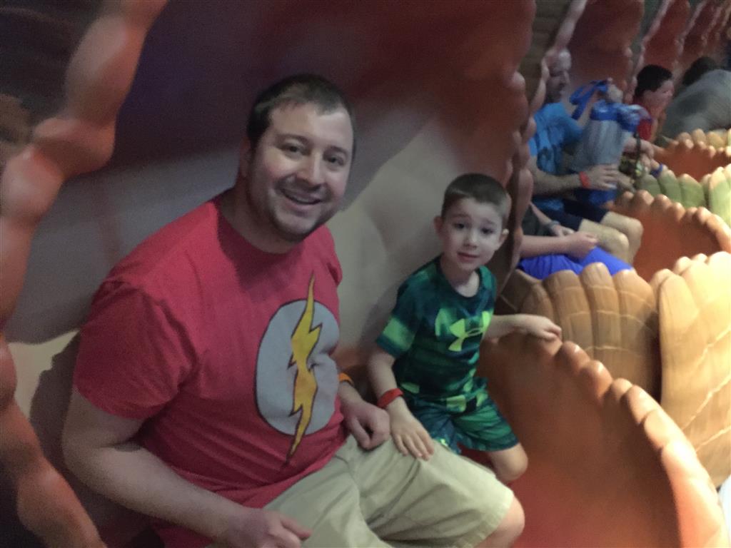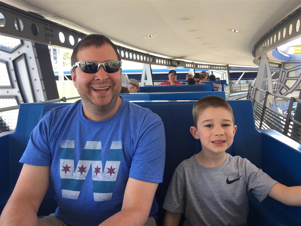 Our last day was a mix of favorites from previous days, and trying to hit everything that we had missed so far. Dad and Henry hit Splash Mountain a few more times, with Mom and Eleanor doubling up on Thunder Mountain. We finally got around to the tea cup ride, as well as the riverboat and the Bear Country Jamboree (Can’t believe that one is still there!). Henry and Dad did a full Monorail ride (I remember asking my Dad to take me on the monorail – I’ll have to dig out the picture of me asleep on the ride). And then, finally, we got our turn to do the Seven Dwarfs Mine Ride, which turned out to be a great one. Capping off our last day, Henry finally got to ride on a slinky bus back to our hotel.