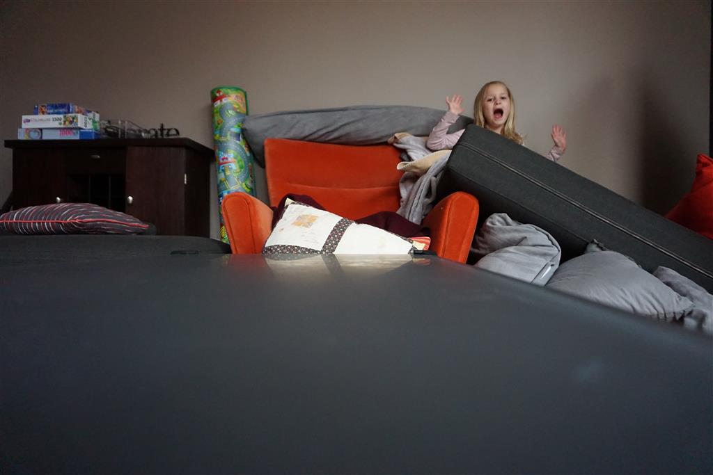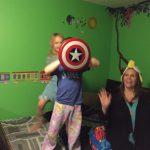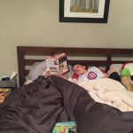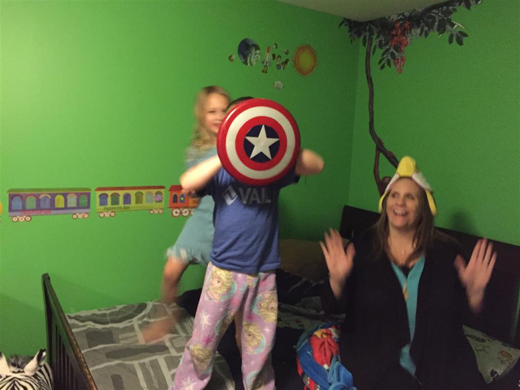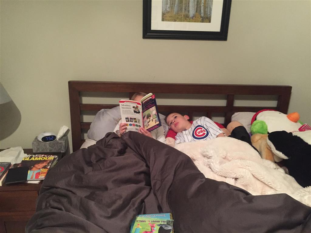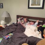 Dad was out of town, so Mom and Lala were in charge this weekend, and Eleanor and Henry had a good mix of relaxing at home and birthday parties to attend. Eleanor finally got to visit the Junior American Ninja Warriors gym, but she said that is was only OK, and wasn’t quite what she expected. On Saturday, the kids attempted to barricade themselves in Henry’s room using only stuffed animals – the amazing thing is it mostly worked! On Saturday night, the kids arranged to have double sleepovers – Henry and Mom in Mom’s room, and Eleanor and Lala in Henry’s room. While they were waiting for the adults to finish dinner, Henry got a little lonely so Eleanor came in to read him some stories. How sweet!