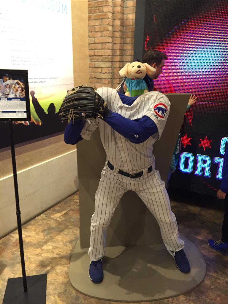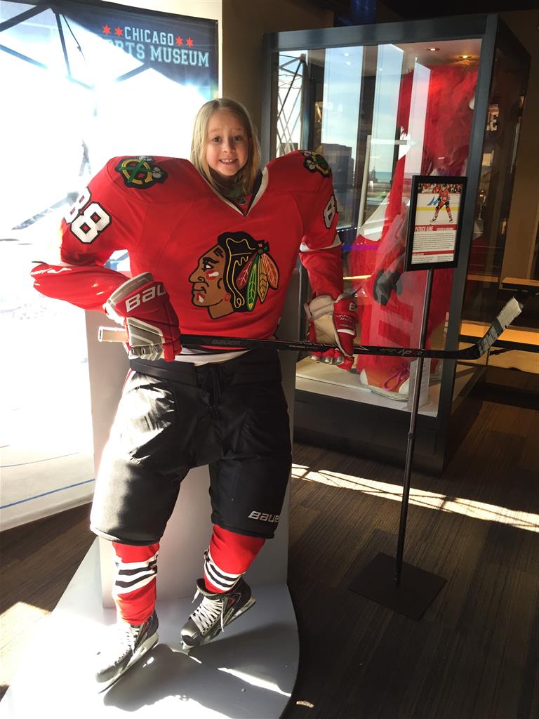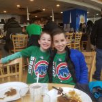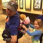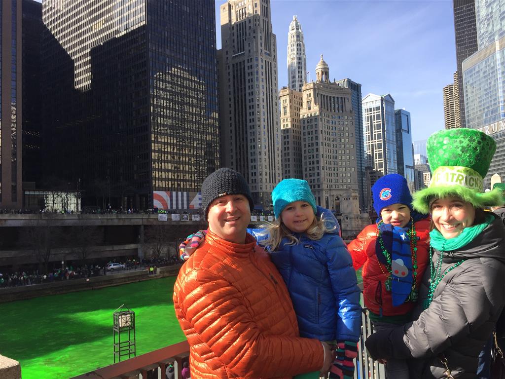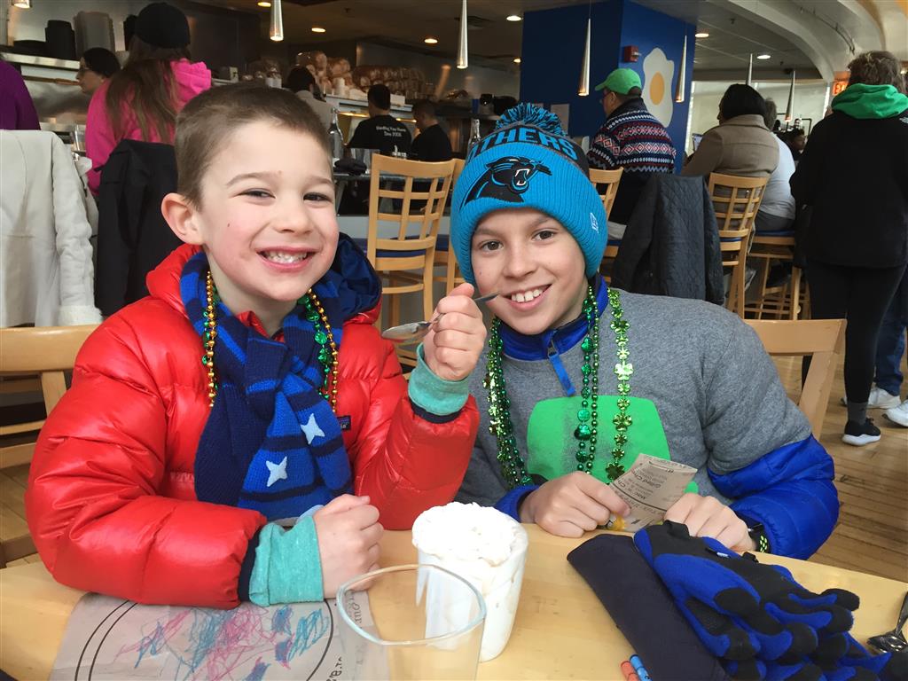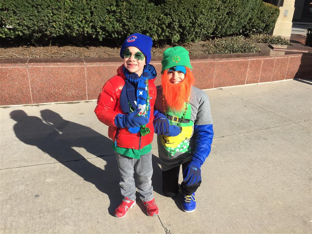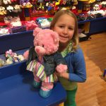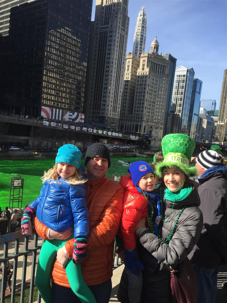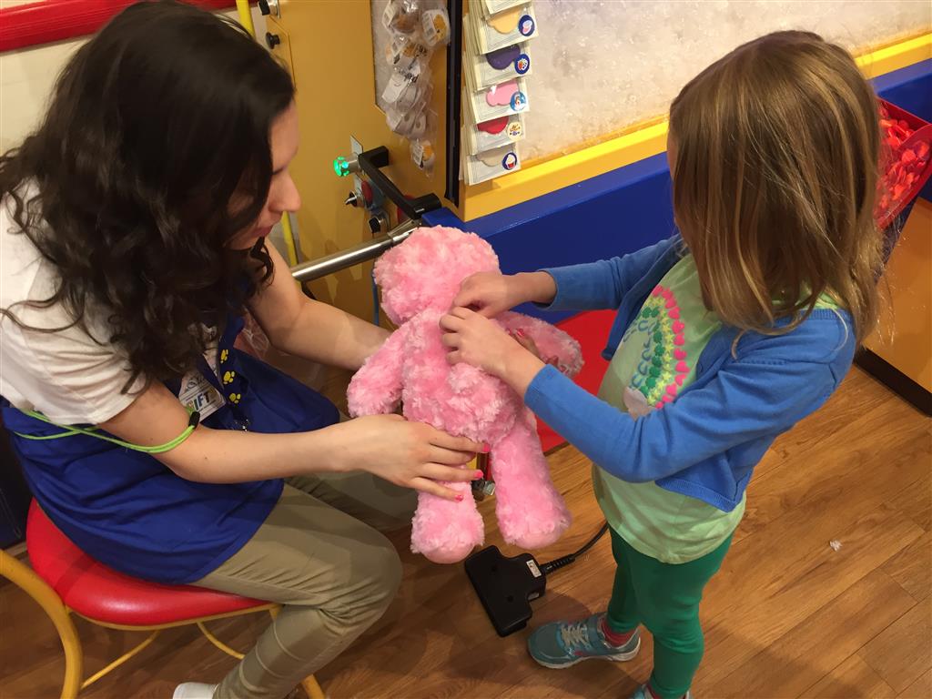 This weekend cousin Jack and Grandma and Grandpa came into town for a visit. Uncle B and Aunt Breanne did some fantastic planning, and we ended up with a fun filled weekend. Saturday started with the annual river dieing. It was pretty cold this year, but thankfully the sun was out and shining. A quick stop for breakfast and we were off to visit the Build a Bear store. Eleanor and Henry had never been, and Jack was excited to show them how it worked. Eleanor built a pink bear with a striped skirt, and she hasn’t stopped carrying it around with her since. Henry built a golden puppy with a St. Patrick’s Day shirt, and has slept with it each night since. So I’d say Build a Bear was a success! Next we visited the Illinois Sports Museum, which had some fun exhibits and computer simulations. Both kids liked putting their new stuffed friends up to pose as famous athletes.