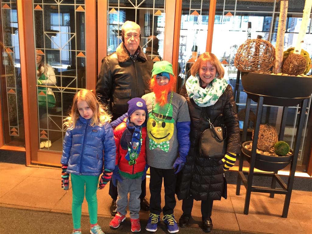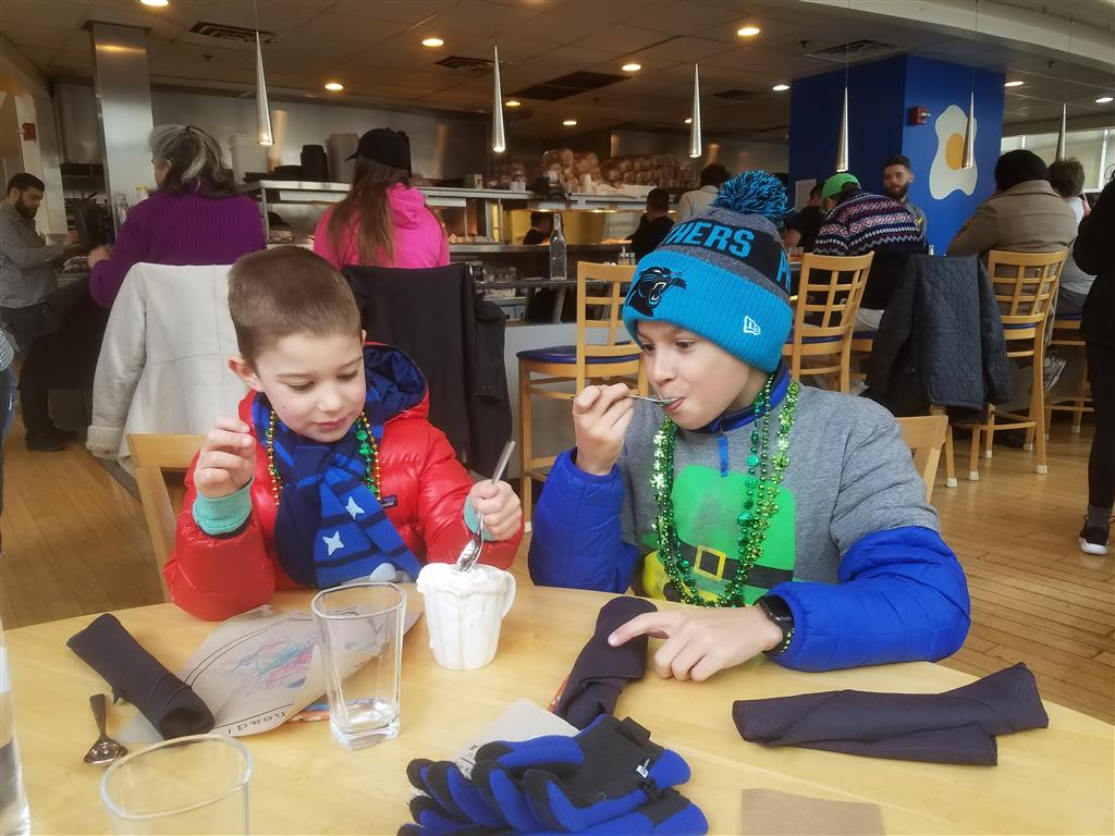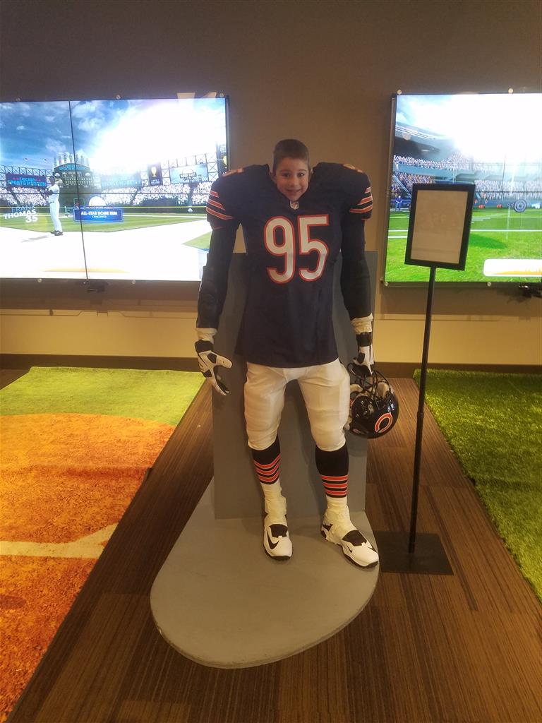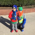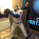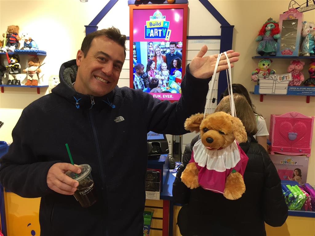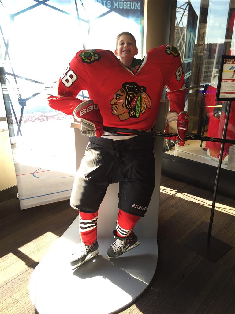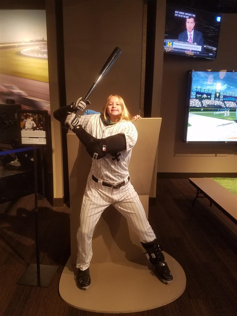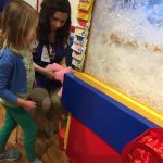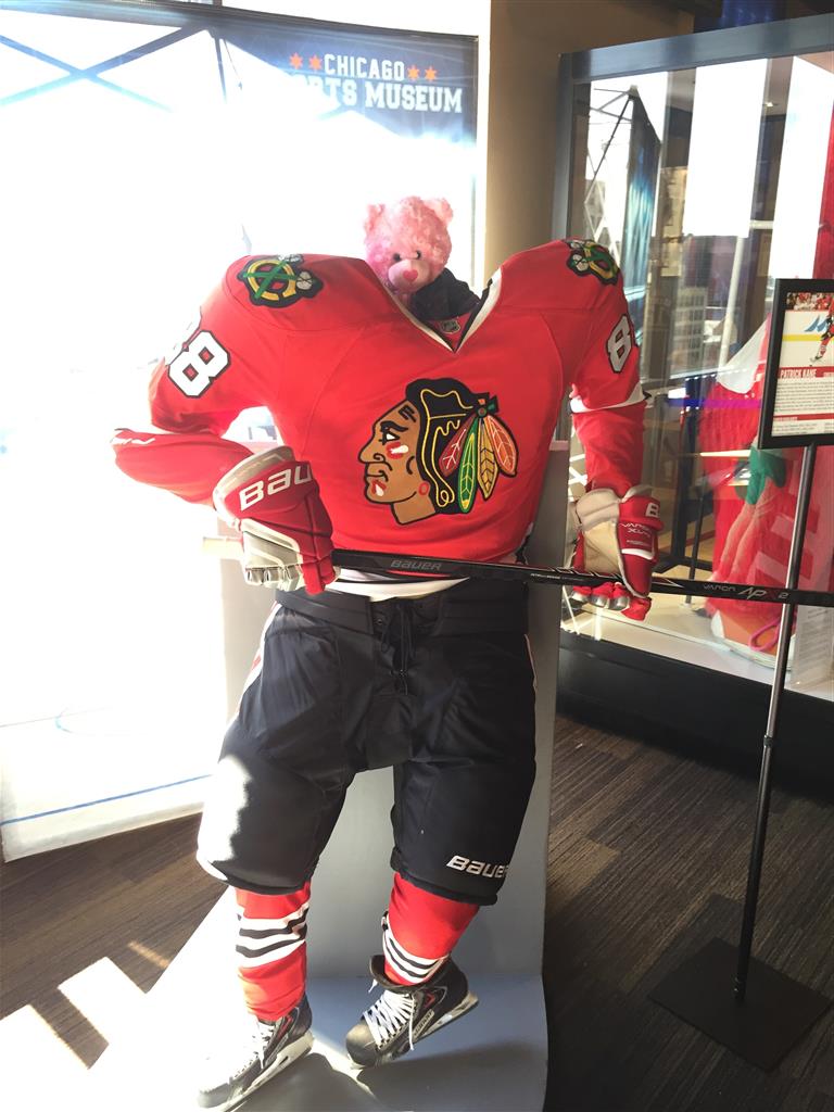 This weekend cousin Jack and Grandma and Grandpa came into town for a visit. Uncle B and Aunt Breanne did some fantastic planning, and we ended up with a fun filled weekend. Saturday started with the annual river dieing. It was pretty cold this year, but thankfully the sun was out and shining. A quick stop for breakfast and we were off to visit the Build a Bear store. Eleanor and Henry had never been, and Jack was excited to show them how it worked. Eleanor built a pink bear with a striped skirt, and she hasn’t stopped carrying it around with her since. Henry built a golden puppy with a St. Patrick’s Day shirt, and has slept with it each night since. So I’d say Build a Bear was a success! Next we visited the Illinois Sports Museum, which had some fun exhibits and computer simulations. Both kids liked putting their new stuffed friends up to pose as famous athletes.