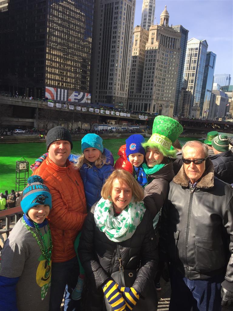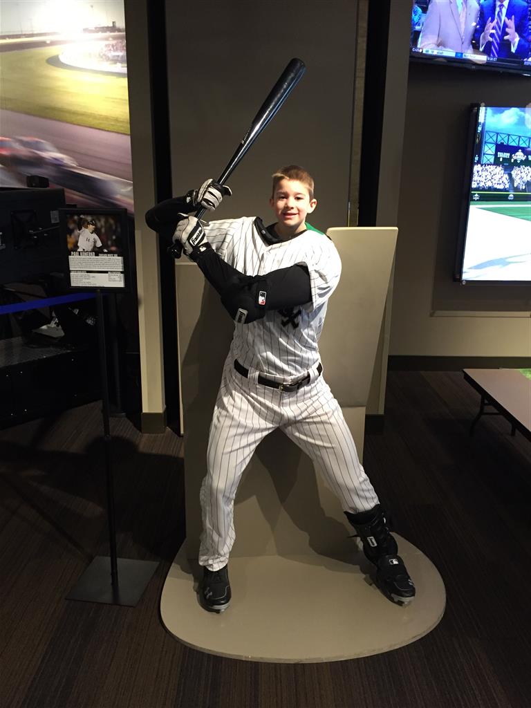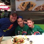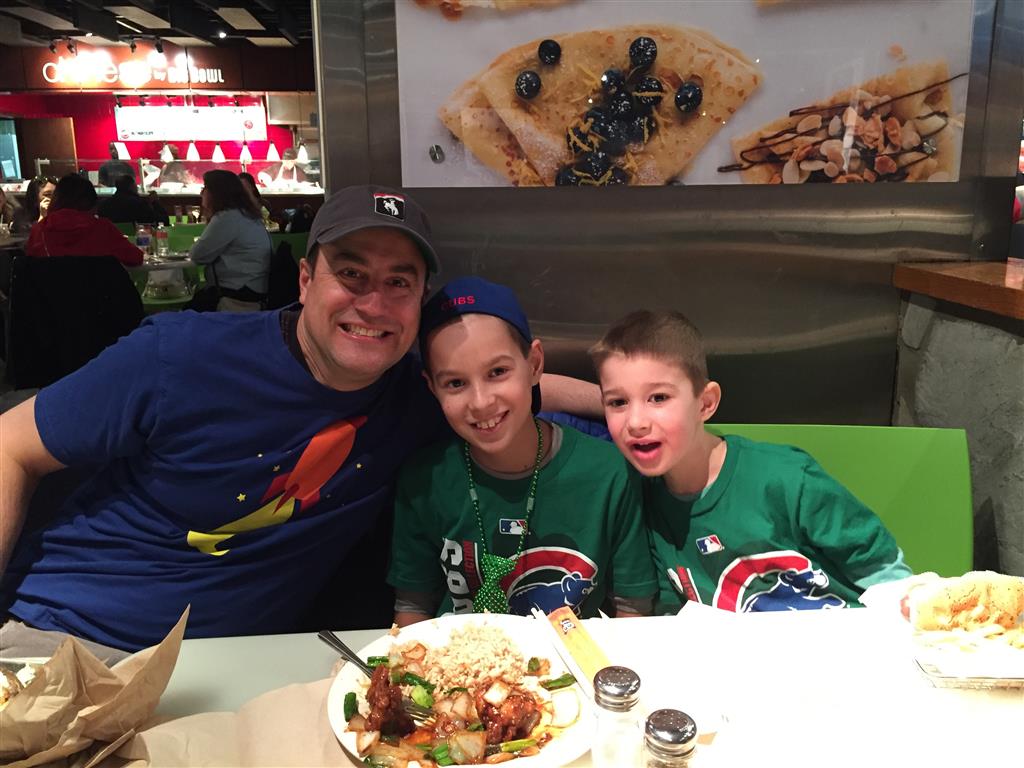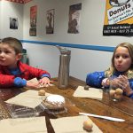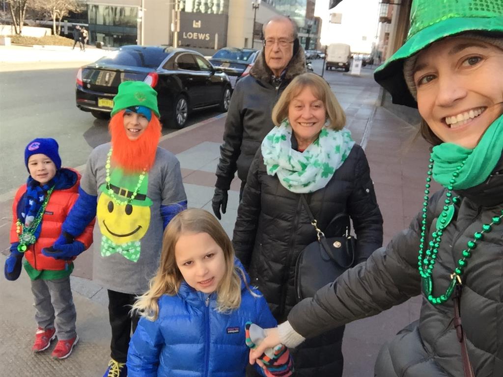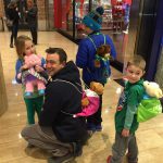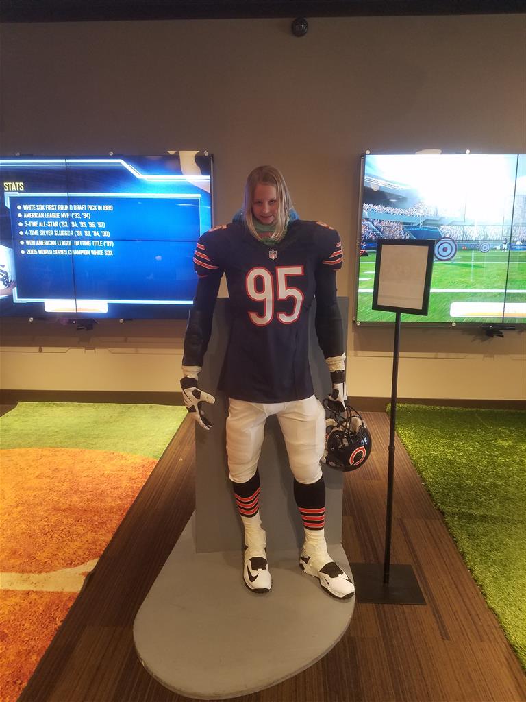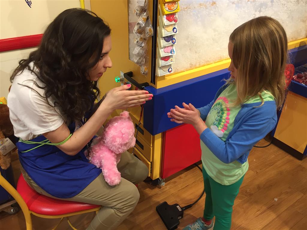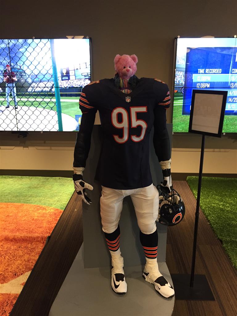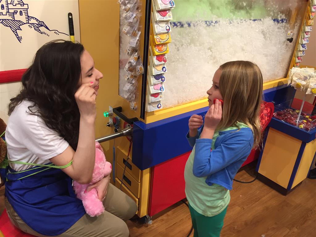 This weekend cousin Jack and Grandma and Grandpa came into town for a visit. Uncle B and Aunt Breanne did some fantastic planning, and we ended up with a fun filled weekend. Saturday started with the annual river dieing. It was pretty cold this year, but thankfully the sun was out and shining. A quick stop for breakfast and we were off to visit the Build a Bear store. Eleanor and Henry had never been, and Jack was excited to show them how it worked. Eleanor built a pink bear with a striped skirt, and she hasn’t stopped carrying it around with her since. Henry built a golden puppy with a St. Patrick’s Day shirt, and has slept with it each night since. So I’d say Build a Bear was a success! Next we visited the Illinois Sports Museum, which had some fun exhibits and computer simulations. Both kids liked putting their new stuffed friends up to pose as famous athletes.