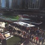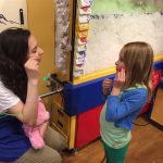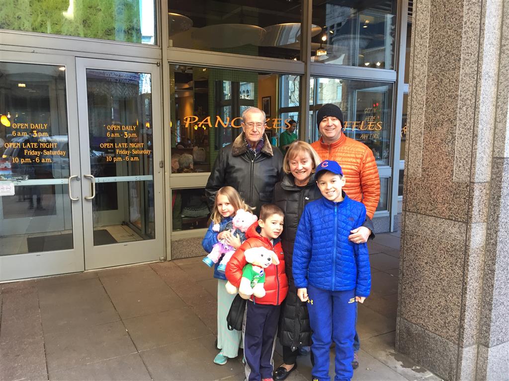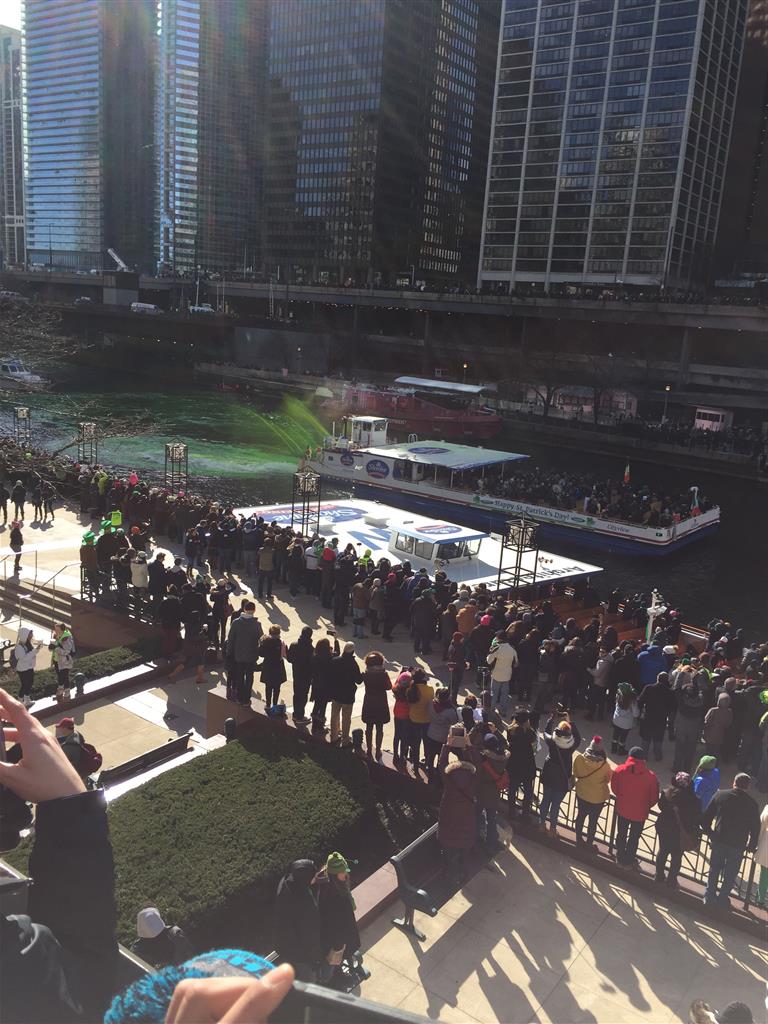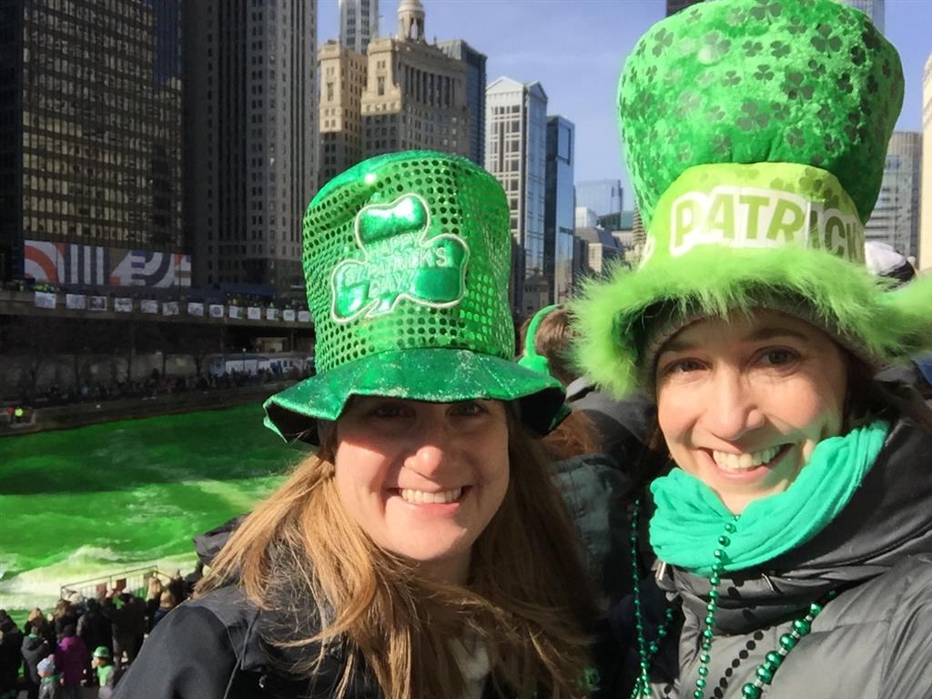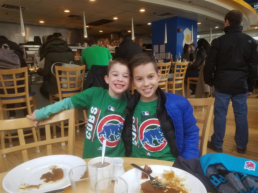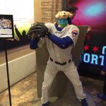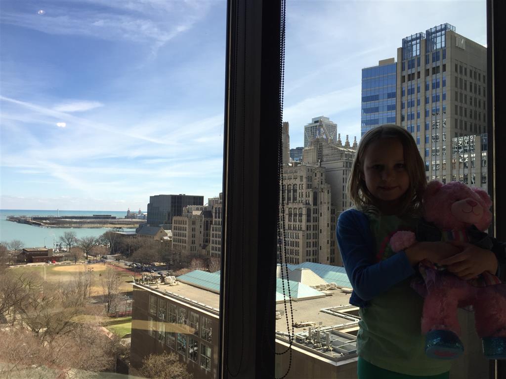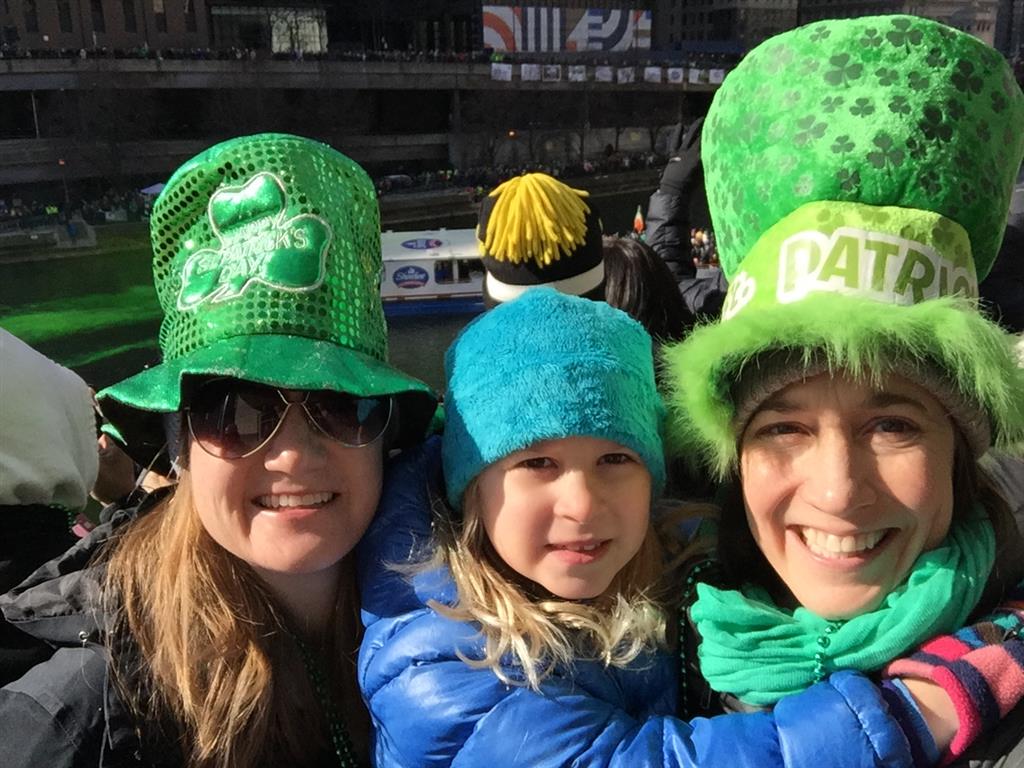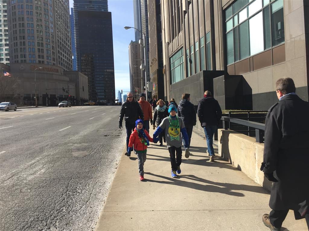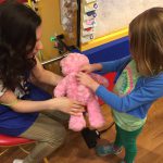 This weekend cousin Jack and Grandma and Grandpa came into town for a visit. Uncle B and Aunt Breanne did some fantastic planning, and we ended up with a fun filled weekend. Saturday started with the annual river dieing. It was pretty cold this year, but thankfully the sun was out and shining. A quick stop for breakfast and we were off to visit the Build a Bear store. Eleanor and Henry had never been, and Jack was excited to show them how it worked. Eleanor built a pink bear with a striped skirt, and she hasn’t stopped carrying it around with her since. Henry built a golden puppy with a St. Patrick’s Day shirt, and has slept with it each night since. So I’d say Build a Bear was a success! Next we visited the Illinois Sports Museum, which had some fun exhibits and computer simulations. Both kids liked putting their new stuffed friends up to pose as famous athletes.