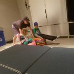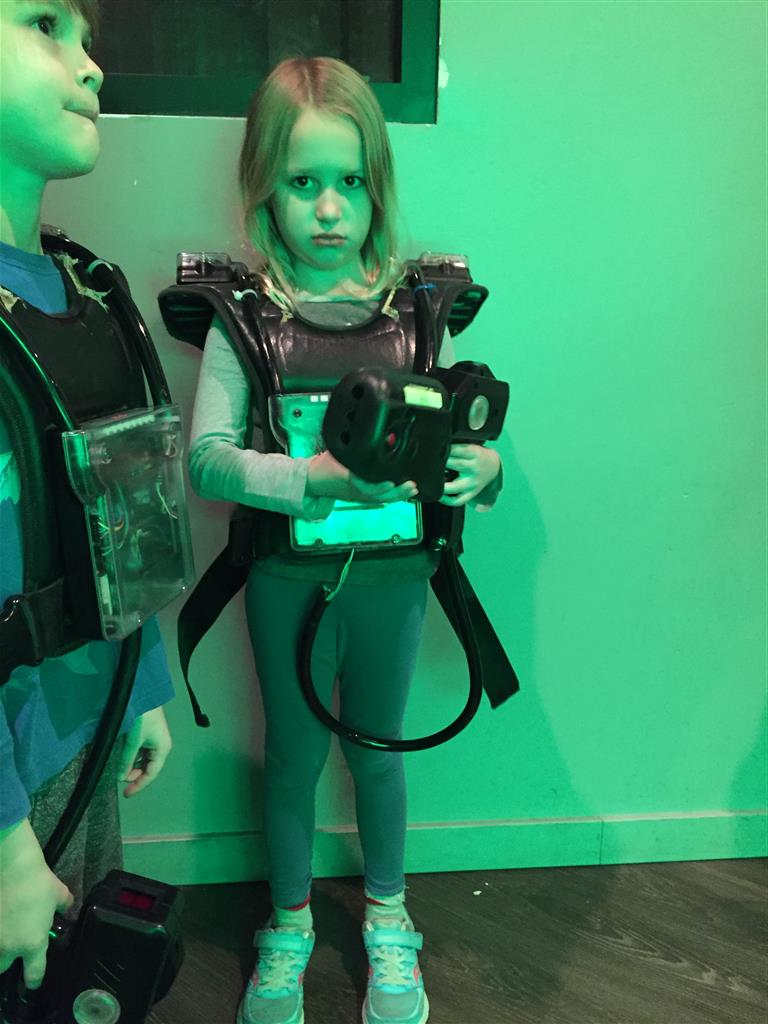 On Sunday, we had a relaxing breakfast and then some playtime, and then headed out to watch Uncle B play in his hockey game. Henry and Jack were excited to see him all dressed up in his pads. Eleanor and Mom had to skip out to go to a birthday party – and Eleanor got to play her first game of Laser Tag. She was a bit uncertain getting equipped, but ended up loving it!