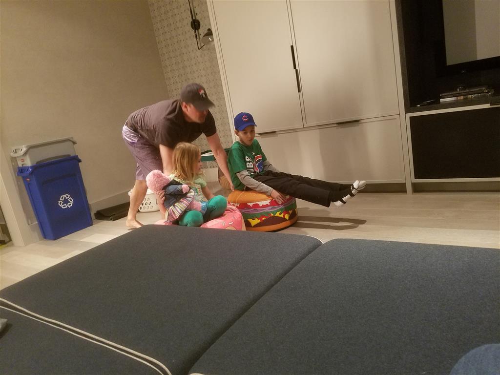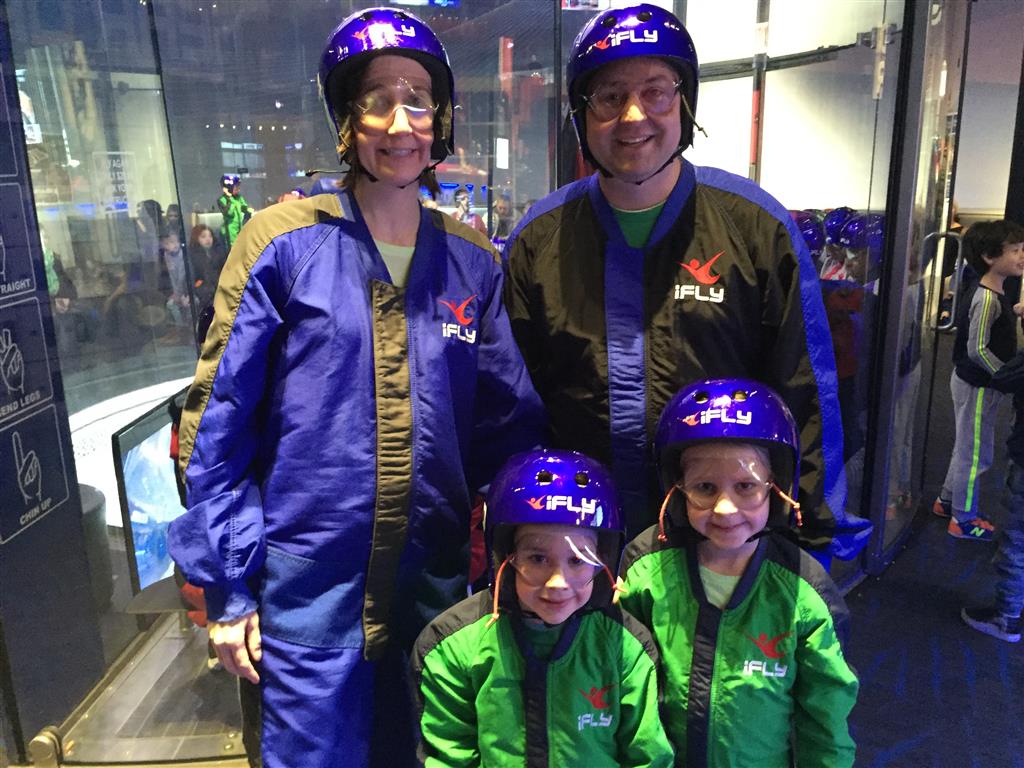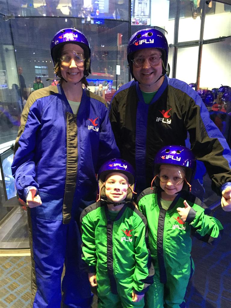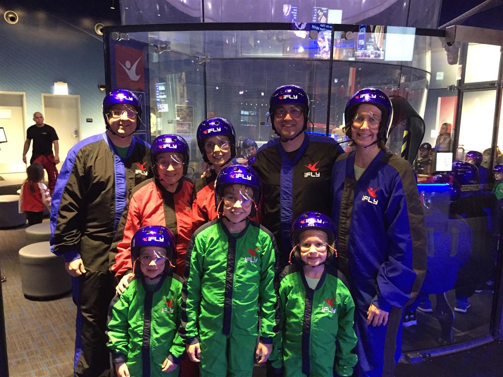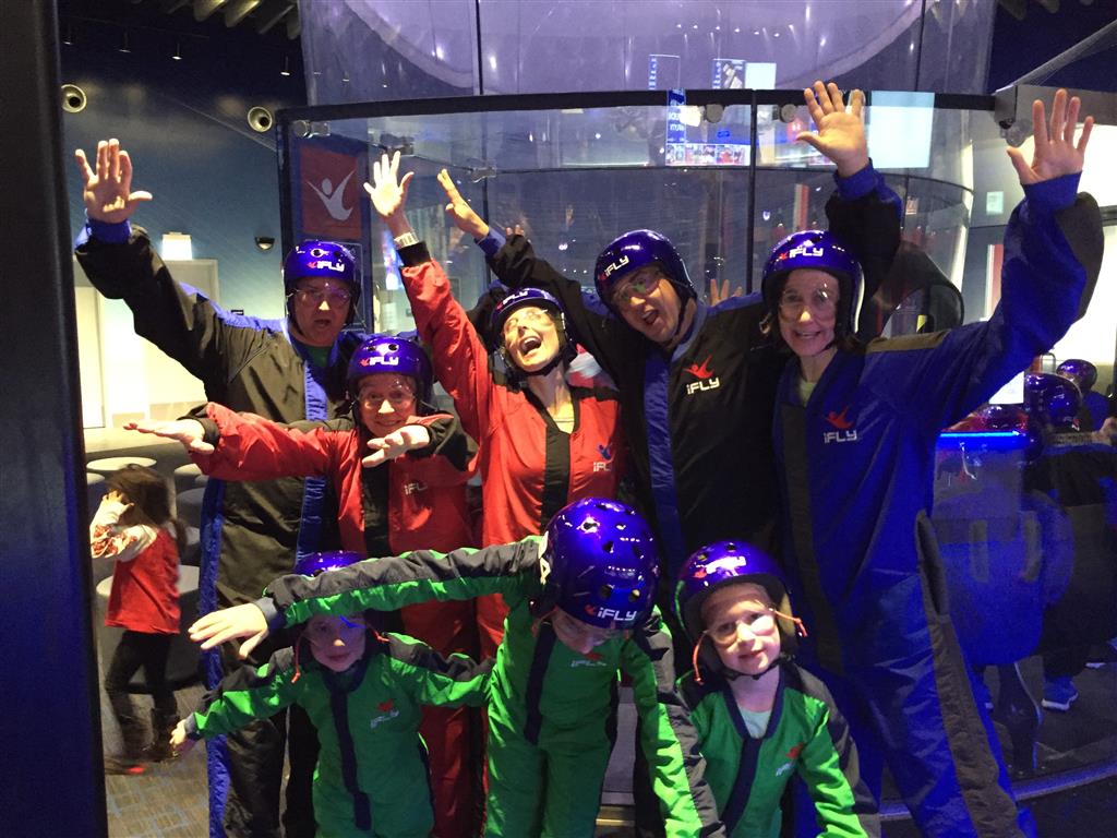 The final activity of the day was indoor skydiving! Eleanor and Henry were both excited and nervous about it, but thy both did great. Eleanor had a huge smile on her face the whole time, and Henry really liked it up until the point where the instructor took him up for the “high flight”, which was perhaps a bit too much. We ended the day with some dinner and playtime at Uncle B and Aunt Breanne’s house.