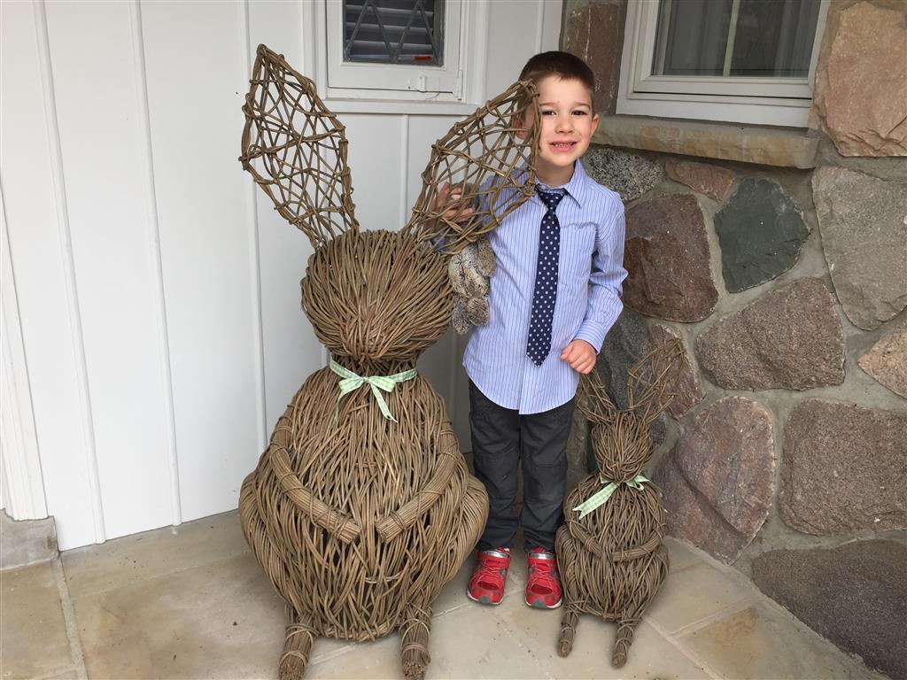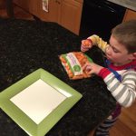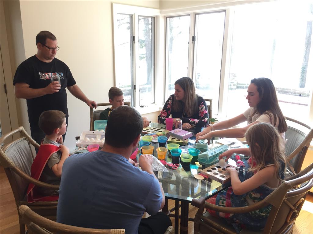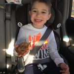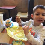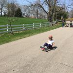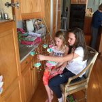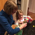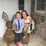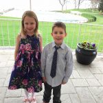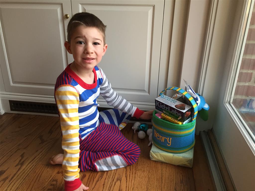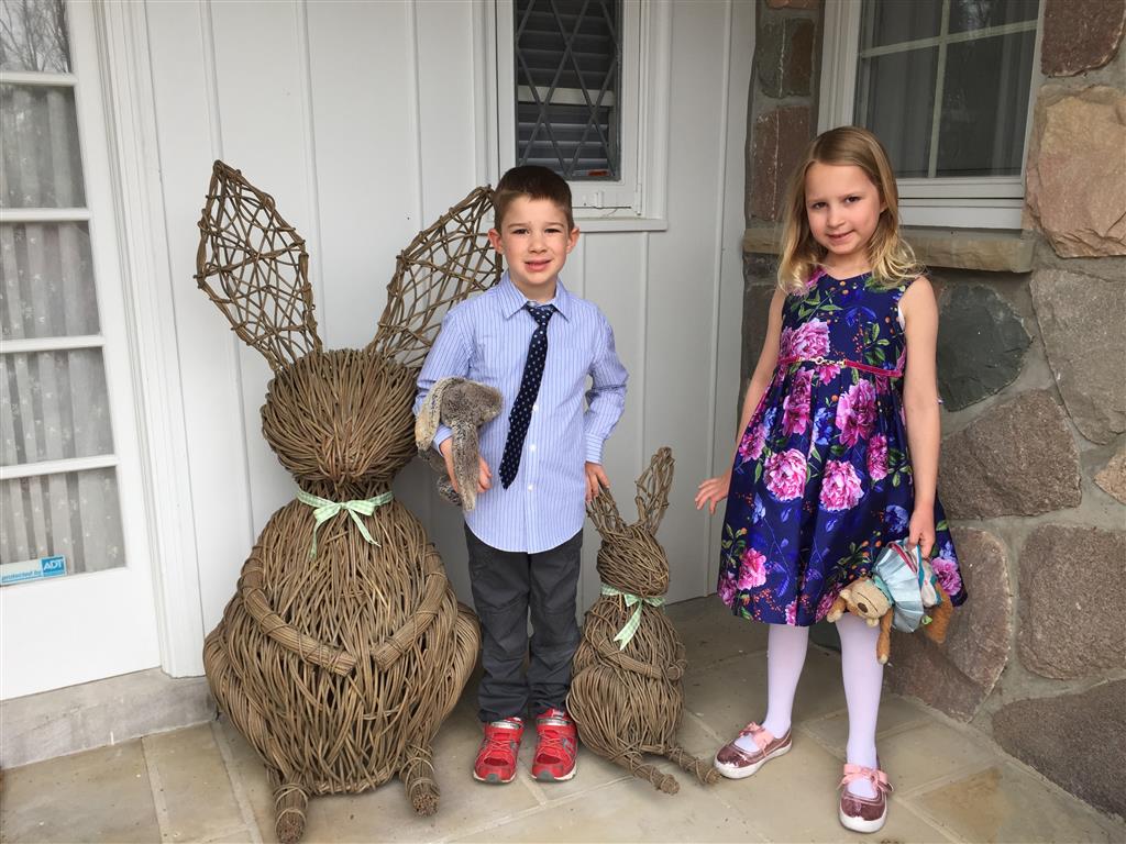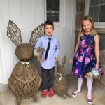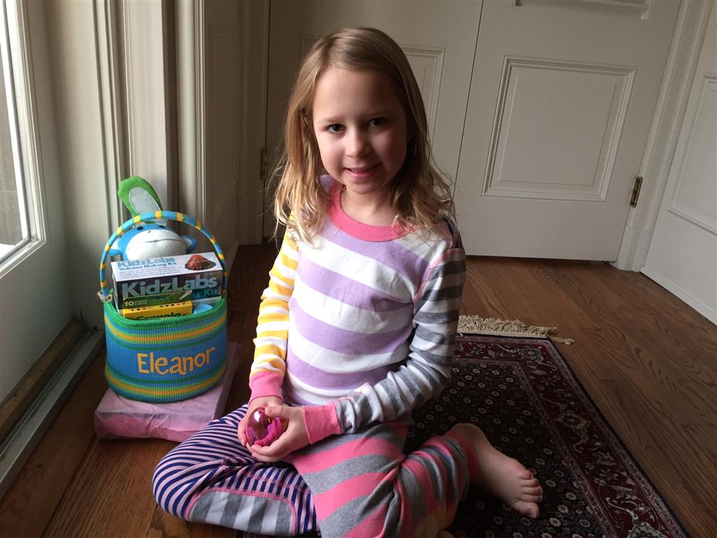 Henry and Eleanor celebrated Easter this weekend with a visit to Grandma and Grandpa’s house. We had beautiful weather on Saturday so there was lots of scootering in the driveway, plus dying Easter Eggs and making a bunny cake – and we also celebrated Grandma’s birthday. On Sunday, the kiddos woke up early and were excited to find their Easter Baskets. We then had a yummy brunch and the weather co-operated just enough so that we could fire off a few model rockets. Then, it was back in the car to head home. We were a bit desperate for some quick food for dinner on the road, so we ended up at a McDonald’s – it was the kids first happy meals. There were underwhelmed by the food, but really liked the Smurf House toys that came with it.