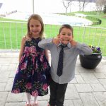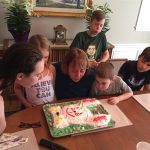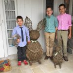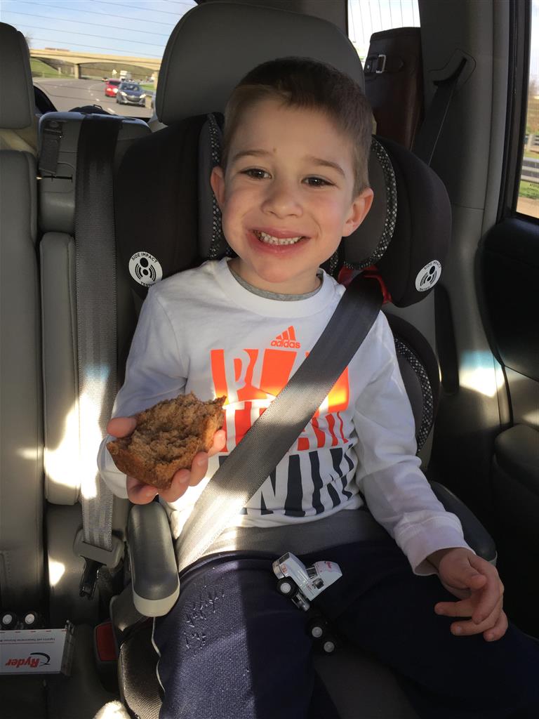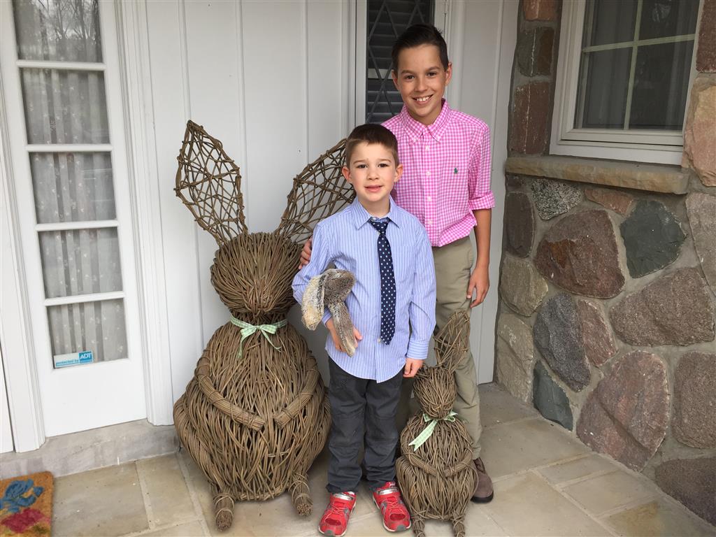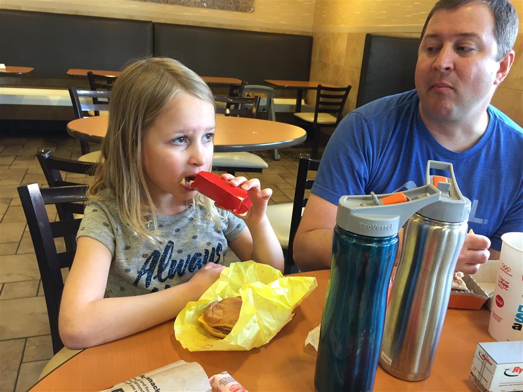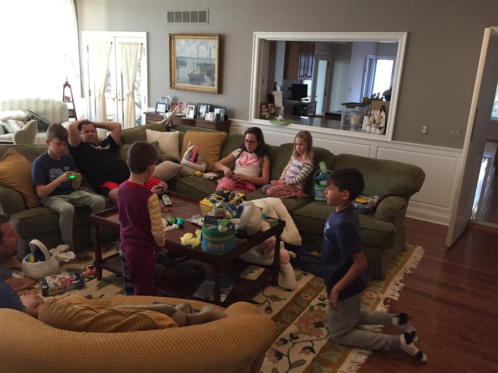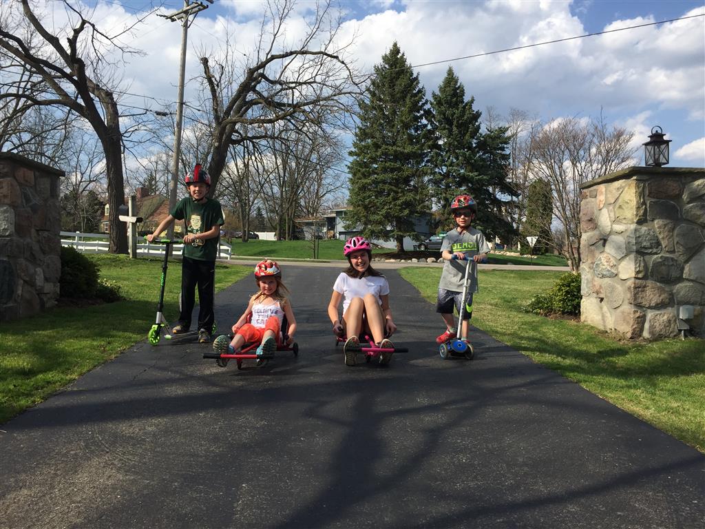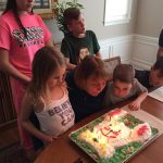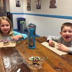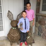 Henry and Eleanor celebrated Easter this weekend with a visit to Grandma and Grandpa’s house. We had beautiful weather on Saturday so there was lots of scootering in the driveway, plus dying Easter Eggs and making a bunny cake – and we also celebrated Grandma’s birthday. On Sunday, the kiddos woke up early and were excited to find their Easter Baskets. We then had a yummy brunch and the weather co-operated just enough so that we could fire off a few model rockets. Then, it was back in the car to head home. We were a bit desperate for some quick food for dinner on the road, so we ended up at a McDonald’s – it was the kids first happy meals. There were underwhelmed by the food, but really liked the Smurf House toys that came with it.