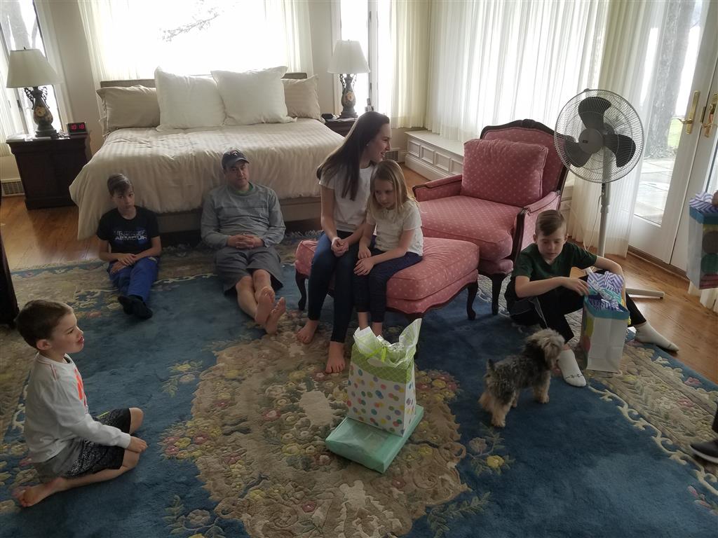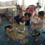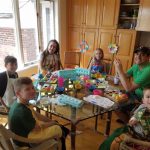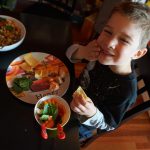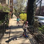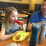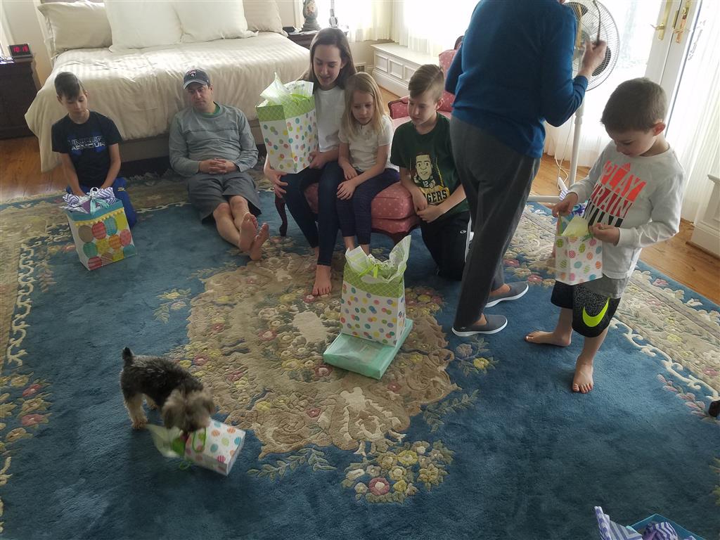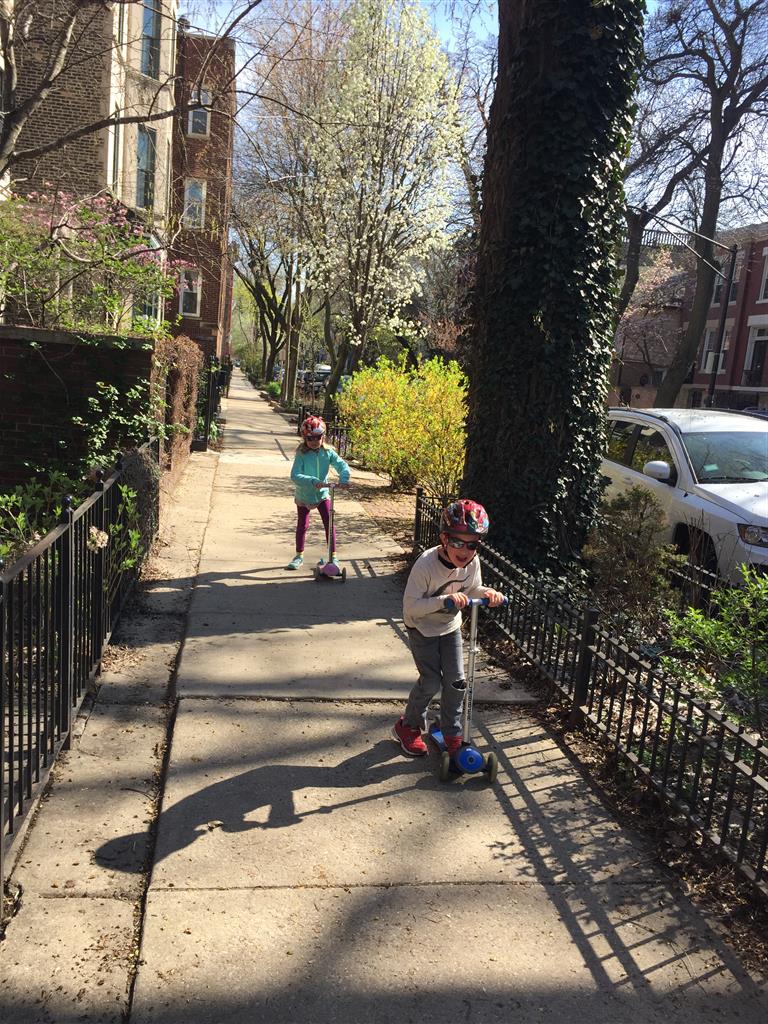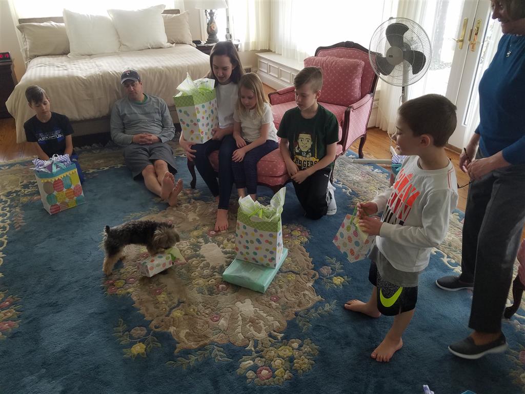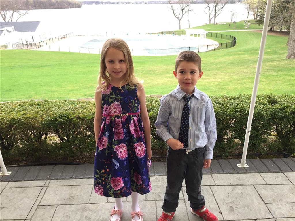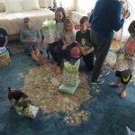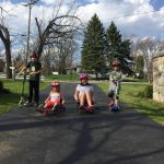 Henry and Eleanor celebrated Easter this weekend with a visit to Grandma and Grandpa’s house. We had beautiful weather on Saturday so there was lots of scootering in the driveway, plus dying Easter Eggs and making a bunny cake – and we also celebrated Grandma’s birthday. On Sunday, the kiddos woke up early and were excited to find their Easter Baskets. We then had a yummy brunch and the weather co-operated just enough so that we could fire off a few model rockets. Then, it was back in the car to head home. We were a bit desperate for some quick food for dinner on the road, so we ended up at a McDonald’s – it was the kids first happy meals. There were underwhelmed by the food, but really liked the Smurf House toys that came with it.