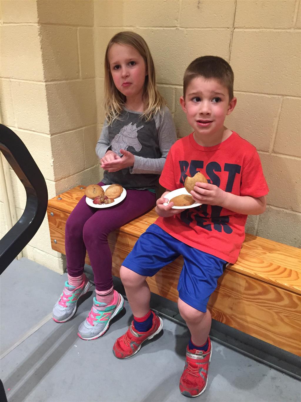 Also exciting this week, Henry moved up a level in swimming, and he is super excited because in this new level they learn the dolphin kick. The school also had their spring art fair, and Eleanor’s “found items” self portrait was on display. Eleanor and Henry were most excited about the cookies that were also available during the art show.