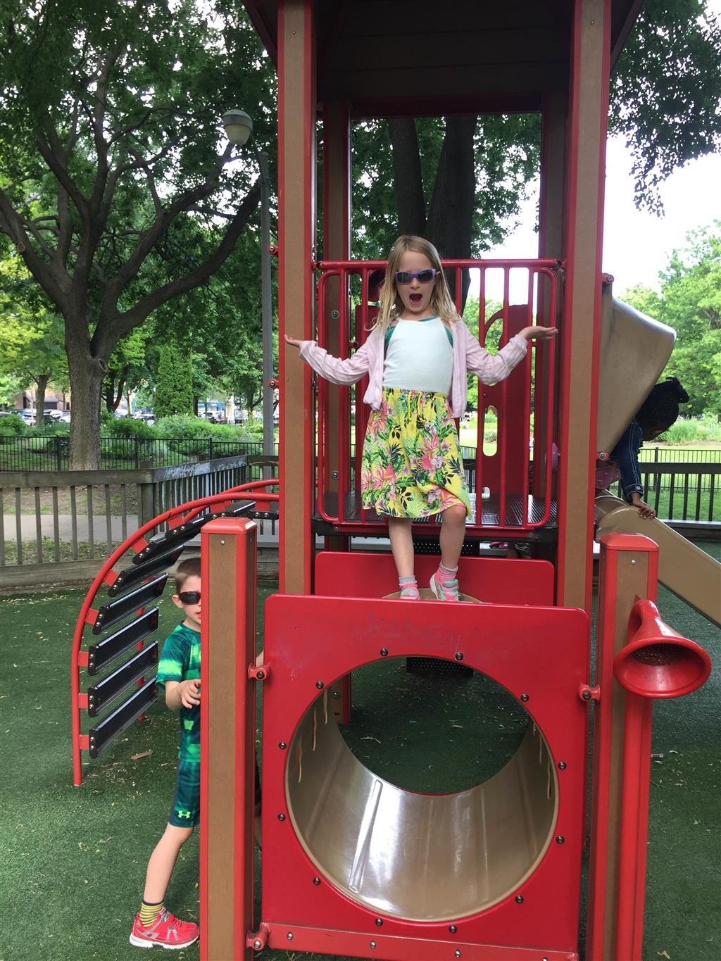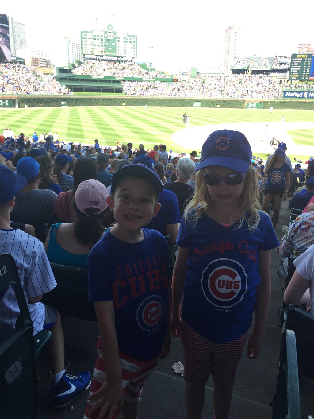 Eleanor and Henry celebrated their last day of school this week! Henry’s class had a last day party and invited the parents in to see some of the work they did all year, and to watch an end of the year slideshow. Eleanor’s class took an end of the year picnic field trip. On their first day of summer vacation, Mom took the kiddos up to a pool for a day of relaxing and swimming. Then, over the weekend, we had a relaxing Saturday with a cheesburger cookout, and on Sunday we went to a Cubs game (a win!). Our goal was to make it to the seventh inning stretch so that Henry could sing “Take Me Out to the Ballgame”, and we did it! By then, things were looking good for a victory so we ended up staying to the end and got to sing “Go Cubs Go!” as well!
