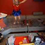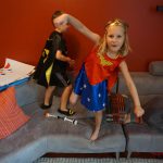Eleanor and Henry had a fun week celebrating Mom’s birthday and enjoying their summer days. Eleanor’s friend Lincoln came over for a fun play date, and the three kids decided to set up a “Trail Mix Stand”. Unfortunately, there were no customer, but that didn’t stop the trail mix from disappearing :) Eleanor and Henry also had a blast helping the neighbors plant some flowers in our common area, and set up a little herb garden on one side. The week ended with a martial arts display between Batman and Wonder Woman.