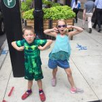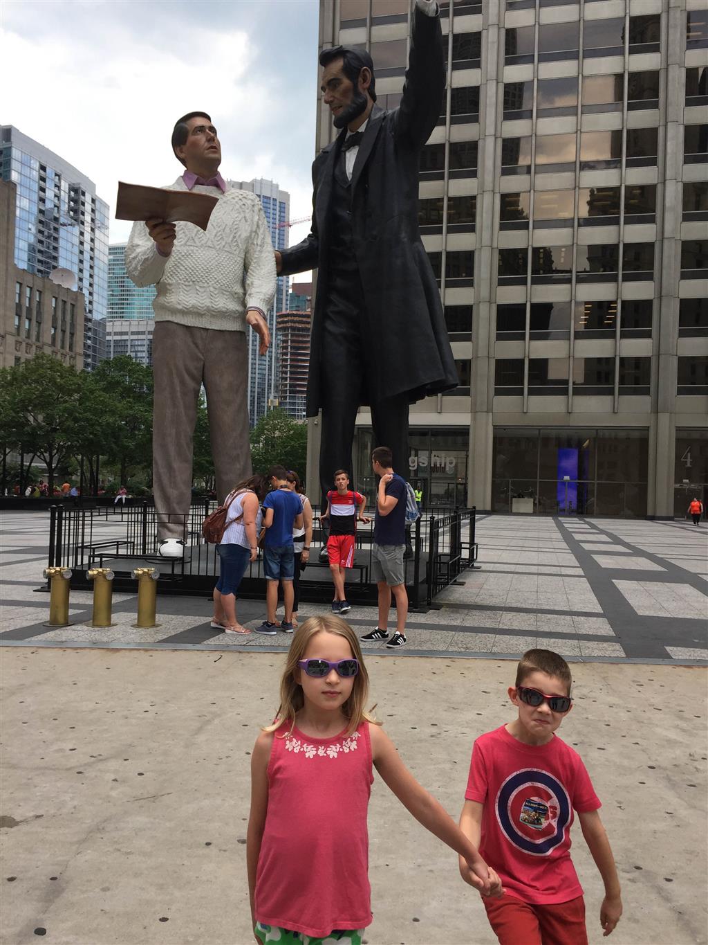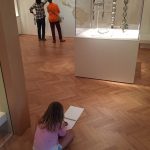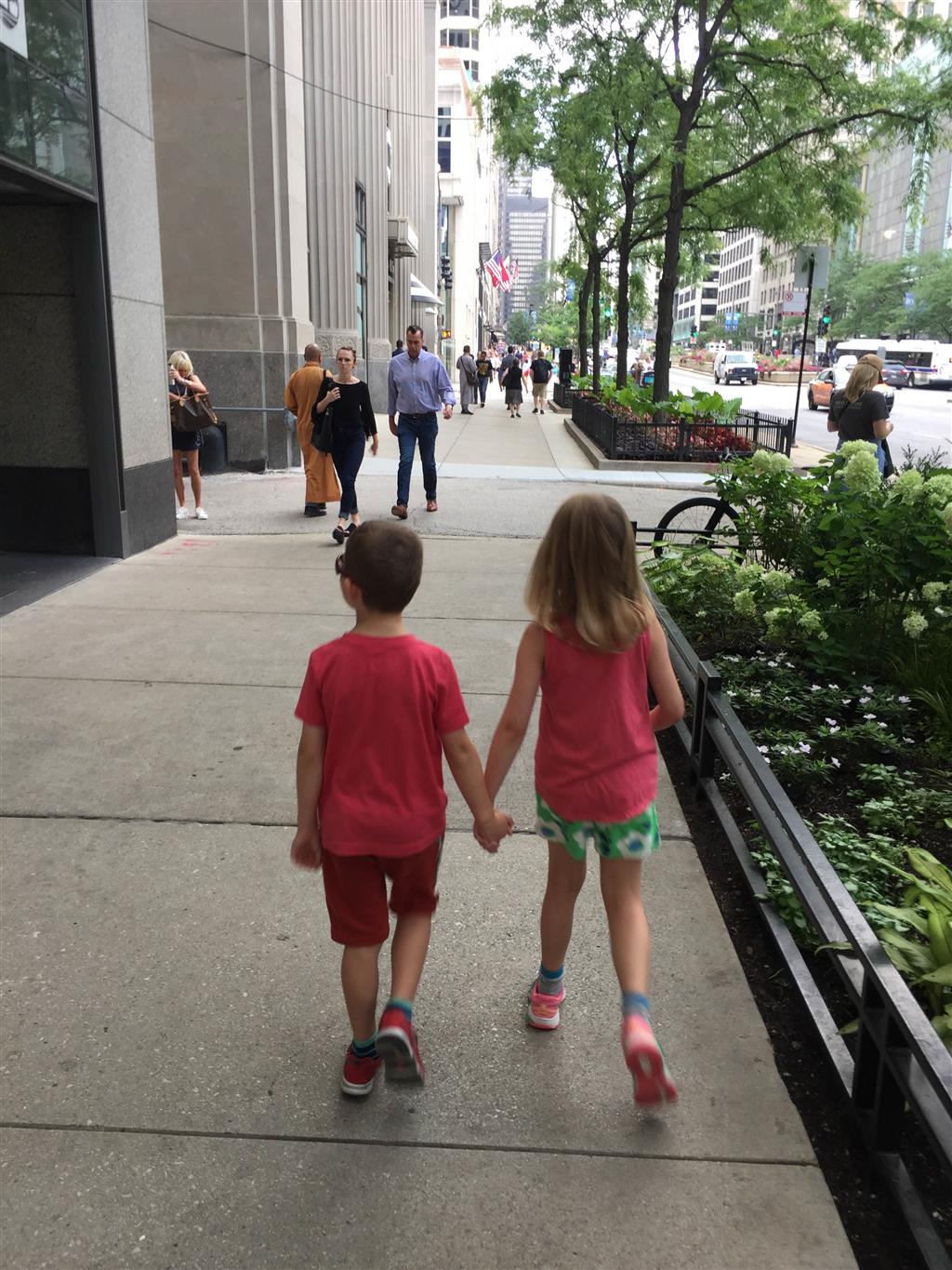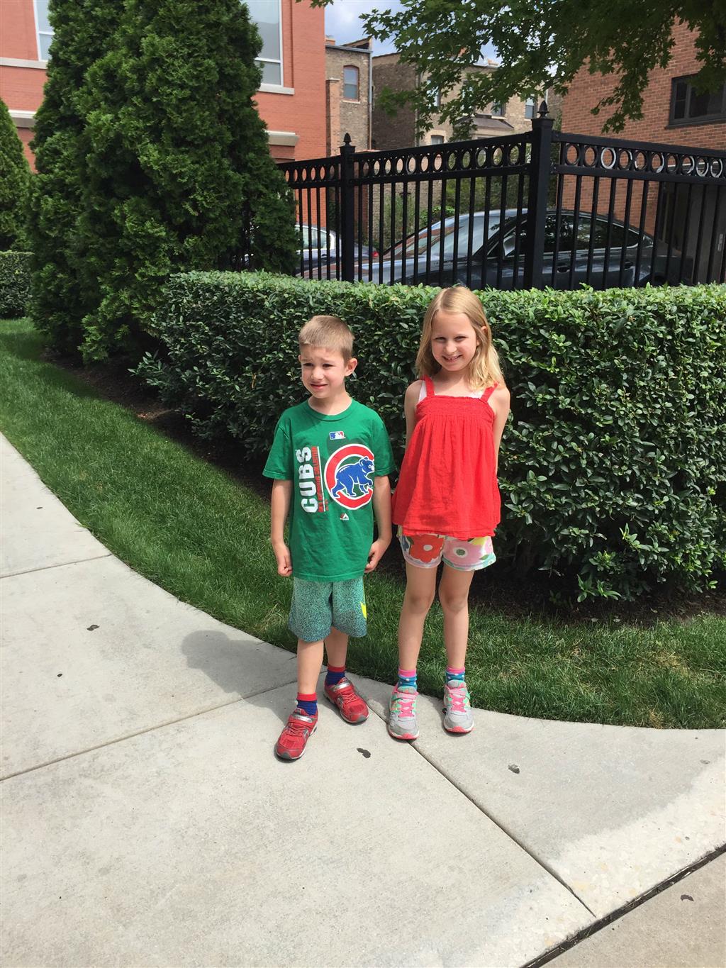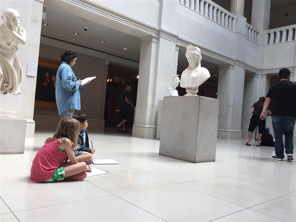 This week, Eleanor and Henry and Mom all had art camp together at the Chicago Art Institute. It was a pretty neat class – they got to visit various rooms in the museum, they did lots of skethcing, both free choice and of particular exhibits, and also got to create some of their own art. The camp was just in the afternoon, so they got to come downtown early and meet Dad for lunch one day, which was a fun treat. On the weekend, we visited with Eleanor’s friend Lyla who invited us over to her house while her street was doing a block party. We also took some time to just relax at home