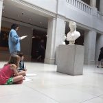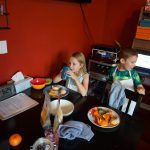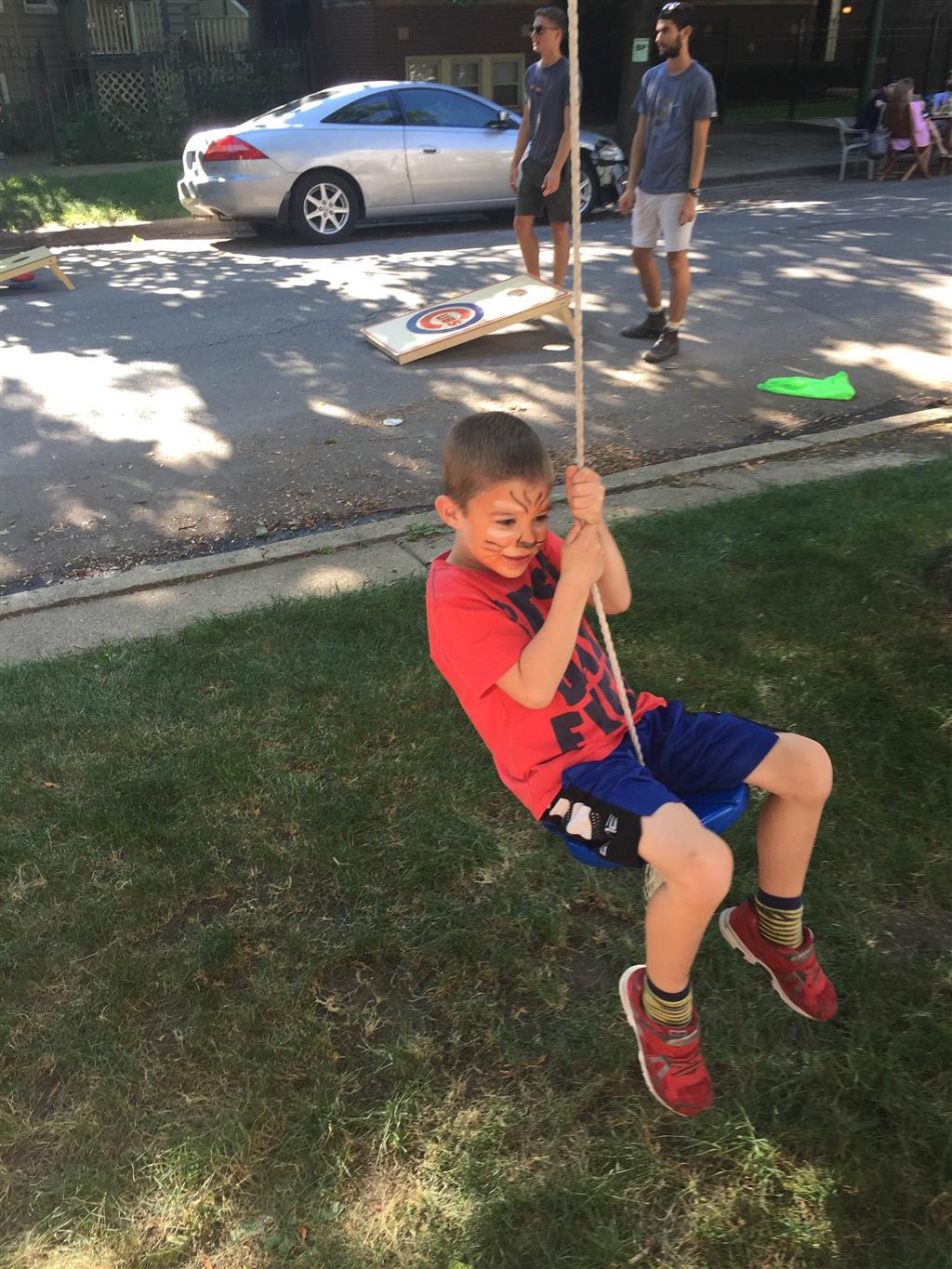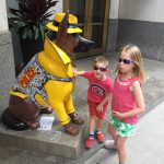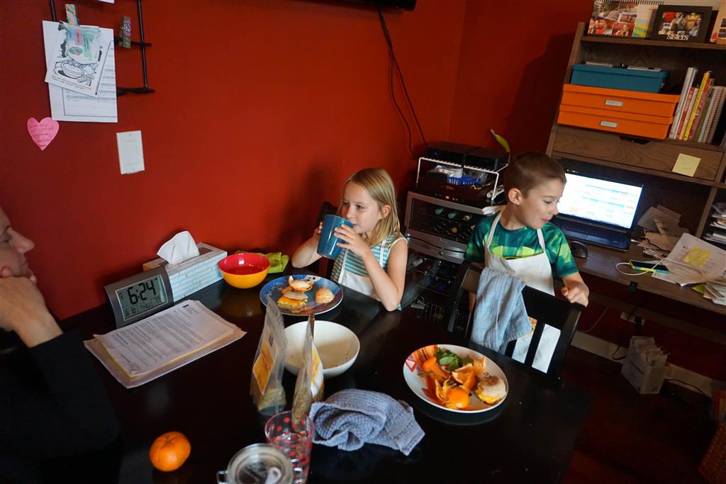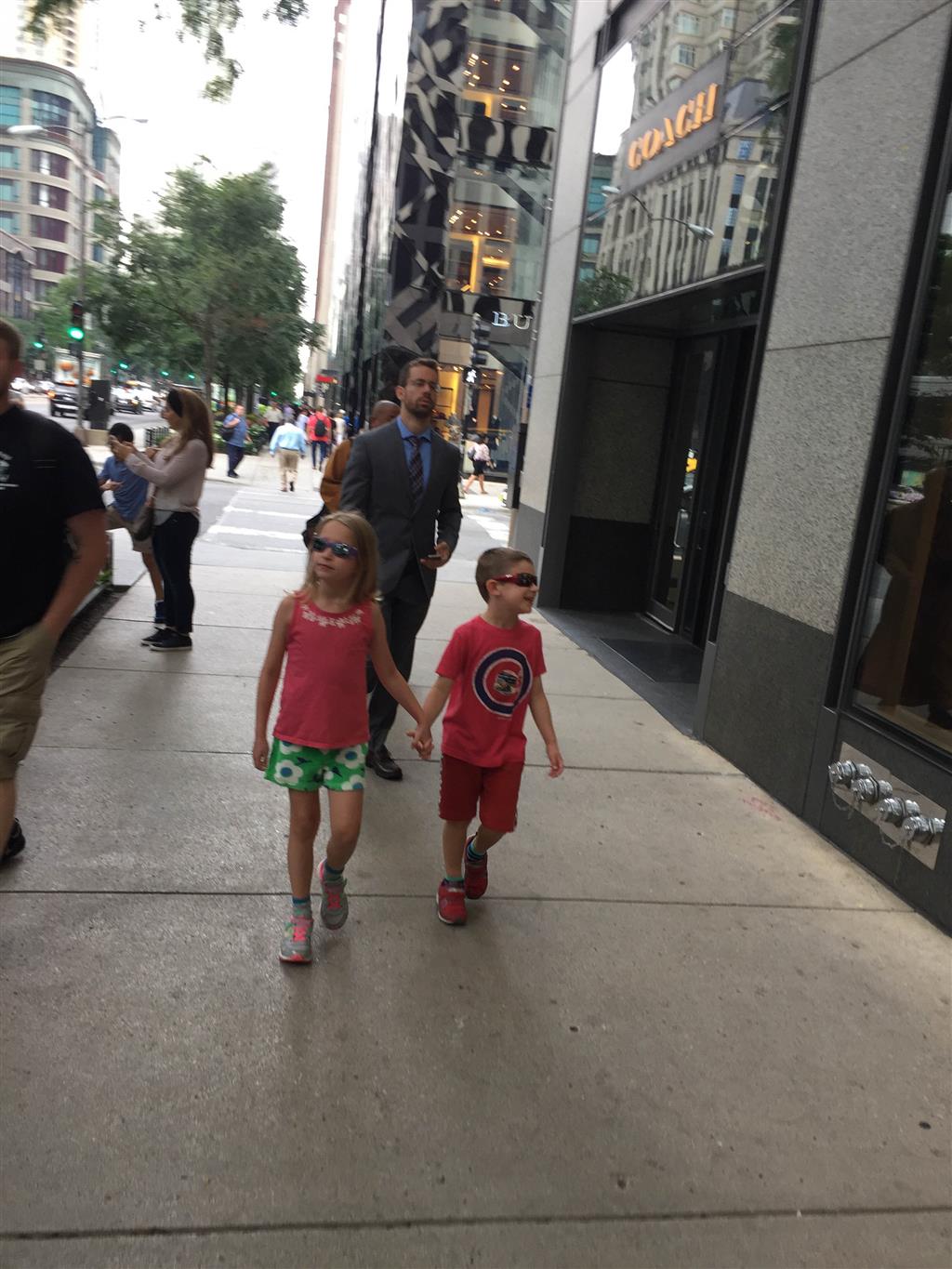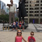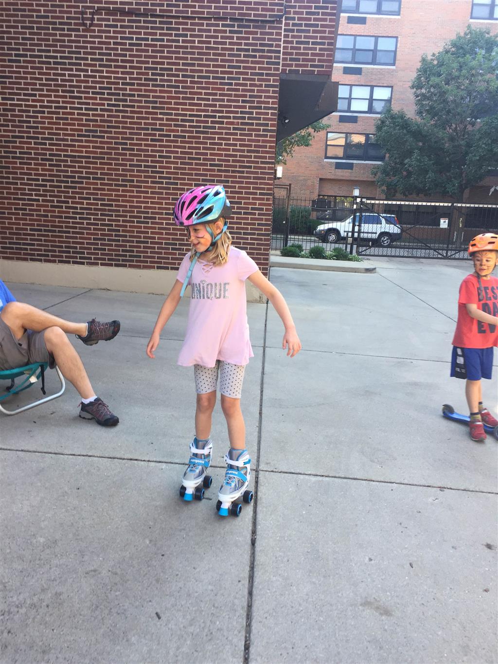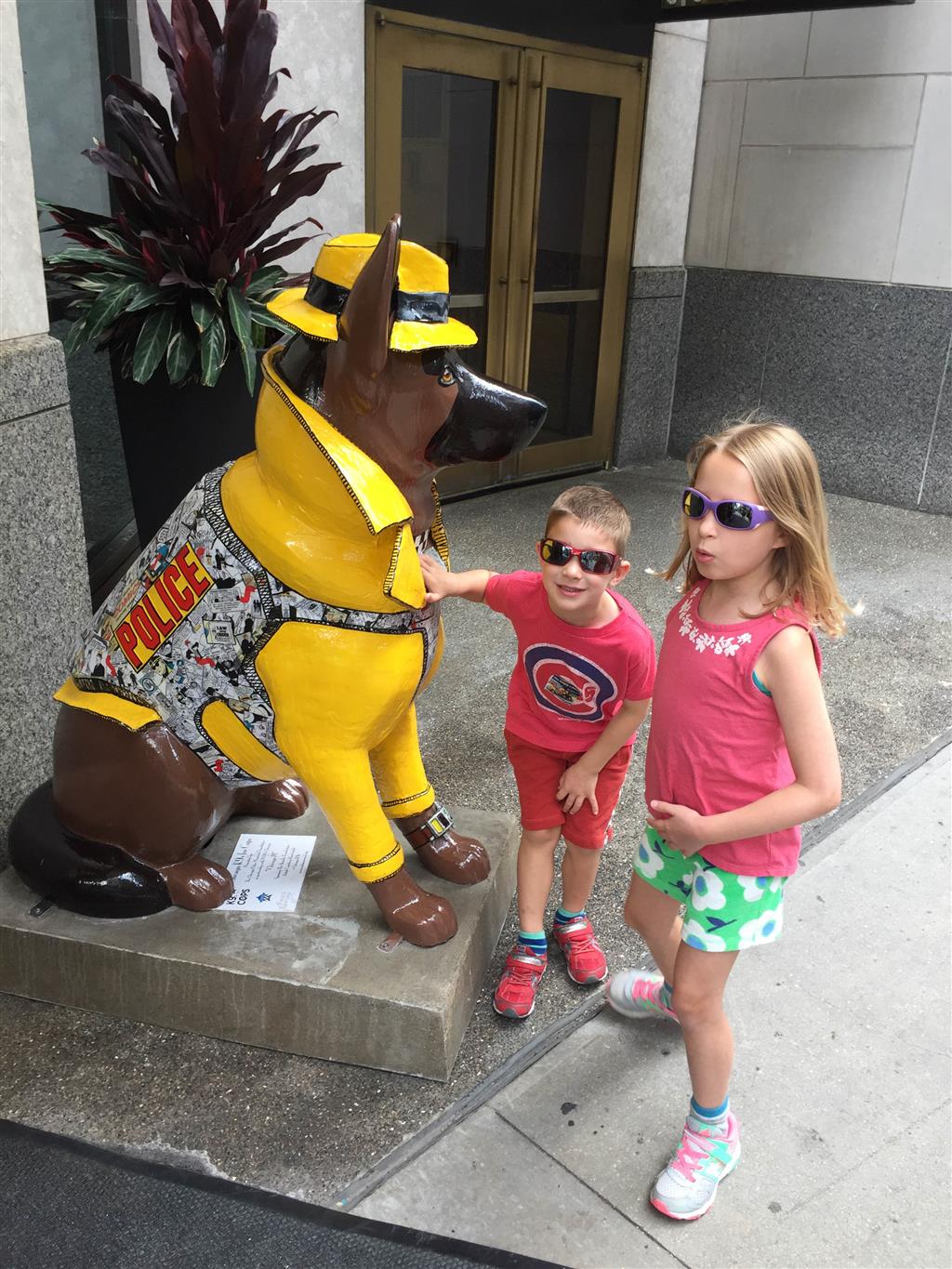 This week, Eleanor and Henry and Mom all had art camp together at the Chicago Art Institute. It was a pretty neat class – they got to visit various rooms in the museum, they did lots of skethcing, both free choice and of particular exhibits, and also got to create some of their own art. The camp was just in the afternoon, so they got to come downtown early and meet Dad for lunch one day, which was a fun treat. On the weekend, we visited with Eleanor’s friend Lyla who invited us over to her house while her street was doing a block party. We also took some time to just relax at home