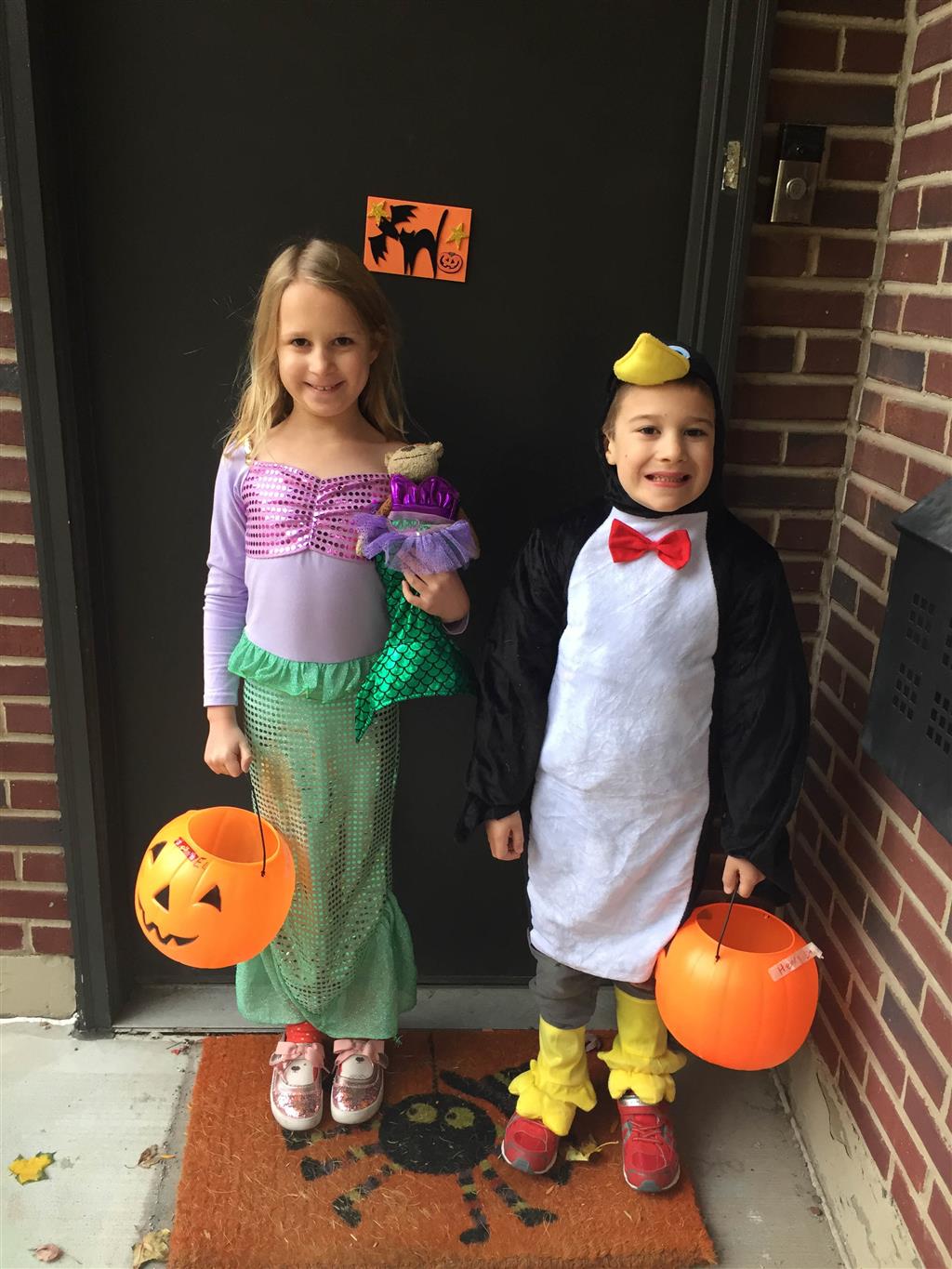 Eleanor and Henry had a fun Halloween trick-or-treating again with our friends Charlie and Tyler. This year, Eleanor and Monkey were both mermaids, and Henry was a penguin. Each year it seems like the street gets smaller and smaller, but both kiddos were still content to just do that block and then head in. They have had a fun time picking out their favorite types of candy from their haul!