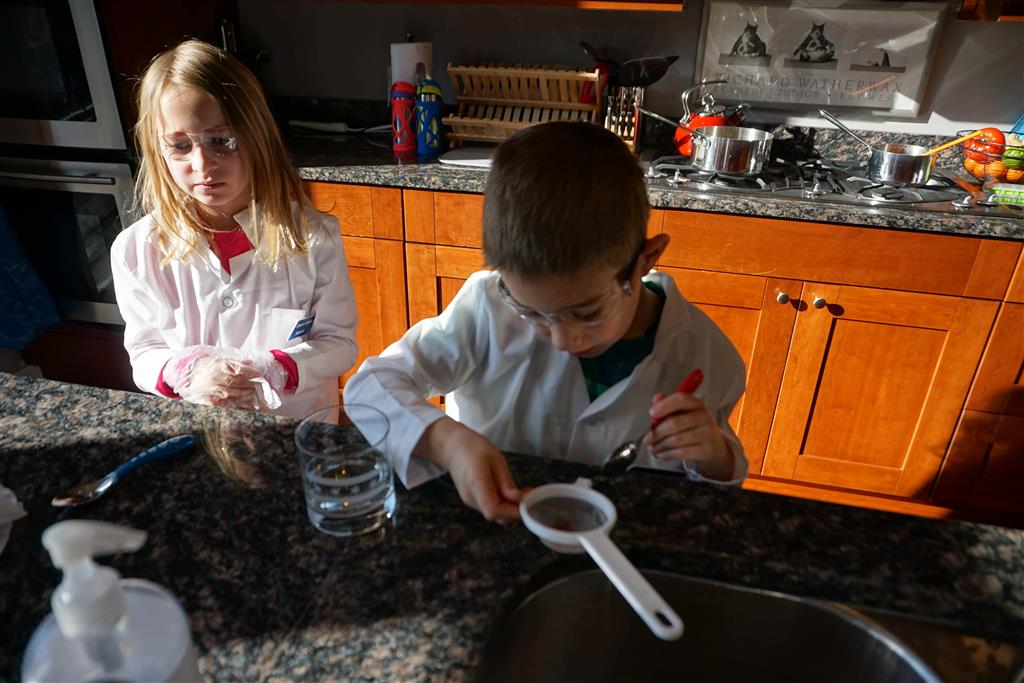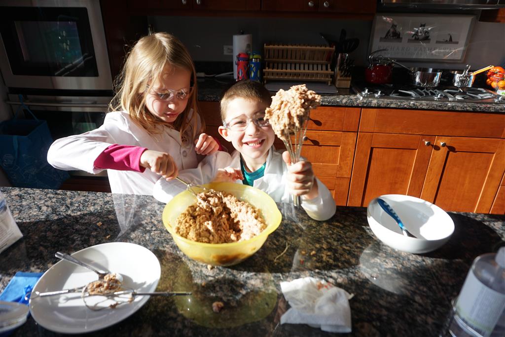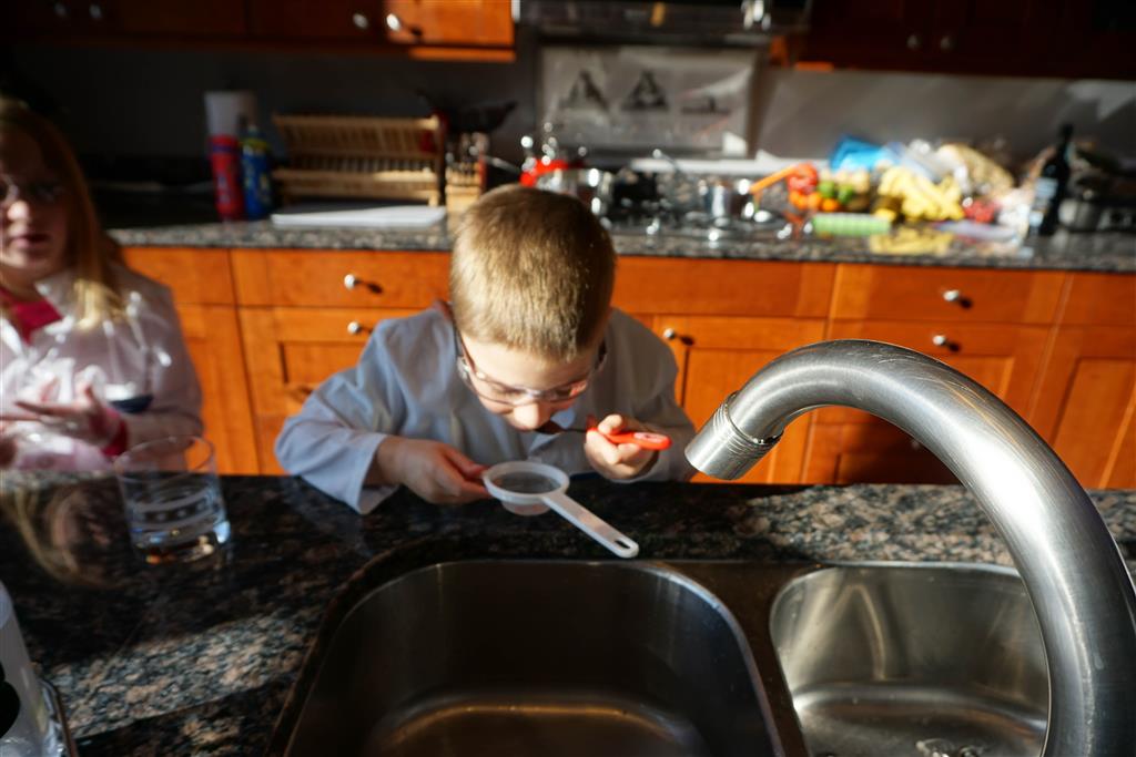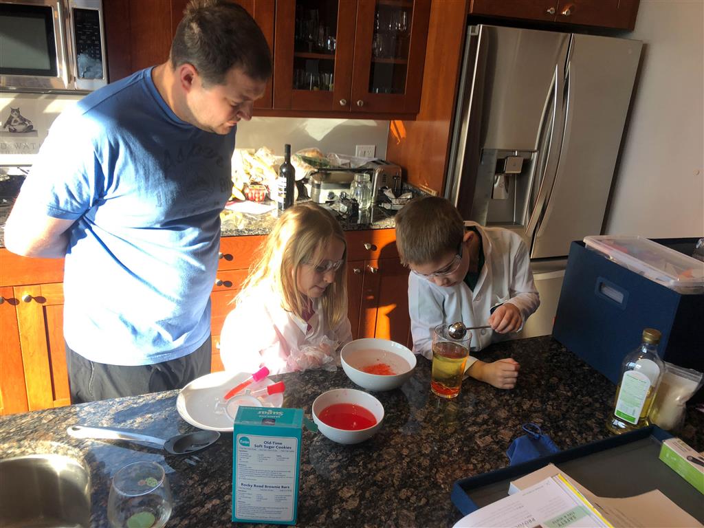 After two weeks off and two fun trips, it was back to reality for Eleanor and Henry. It was tough getting out the door for school on Monday, and by the end of the week, the kids were exhausted. Lucky for us, we get a three day weekend to recover. On Saturday, Dad and Henry had restaurant night, where we picked the menu, shopped for the ingredients, cooked and served dinner. Henry choose cheeseburgers and corn, with ice cream for desert and chips and guacamole for an appetizer. On Sunday, we pulled out the science experiment box, and made just edible juice gel balls, and started a rock candy project. The kids were surprised to learn that we need to wait a whole week for the rock candy to grow.