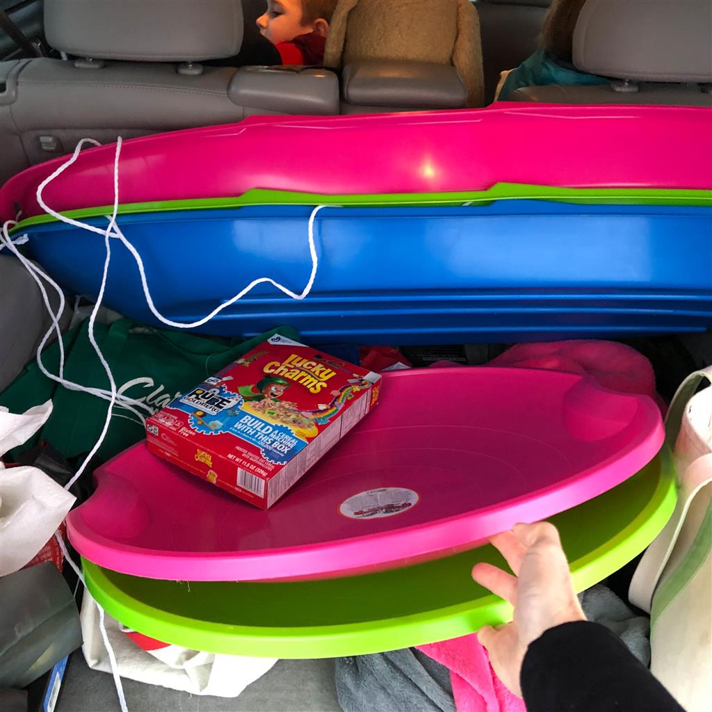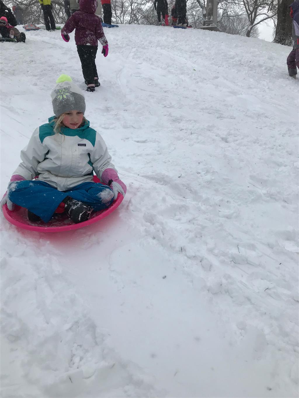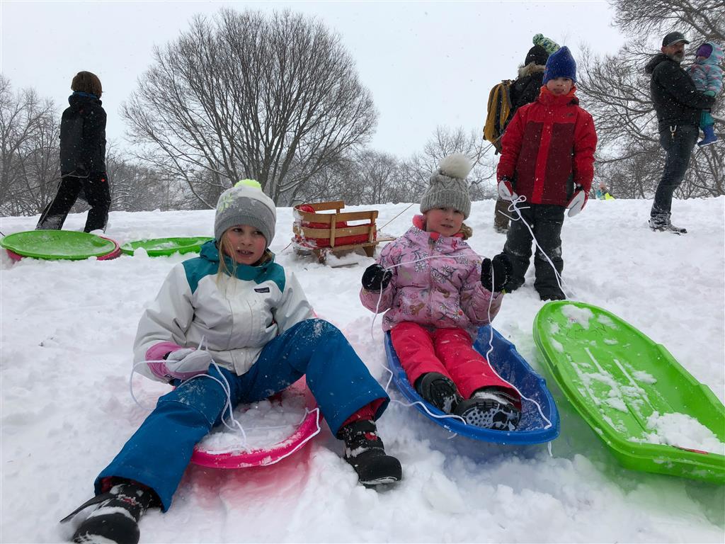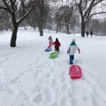 Eleanor and Henry enjoyed a snow day on Friday – hitting the sledding hill with their friends Lincoln and Mason. They had some advanced warning, so on the way home from school on Thursday they stocked up with some new sleds and a box of Lucky Charms for breakfast! Both kids enjoyed the sledding, although Eleanor mentioned that “Going back up the hill was hard work!”.