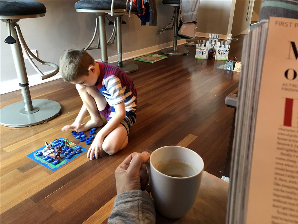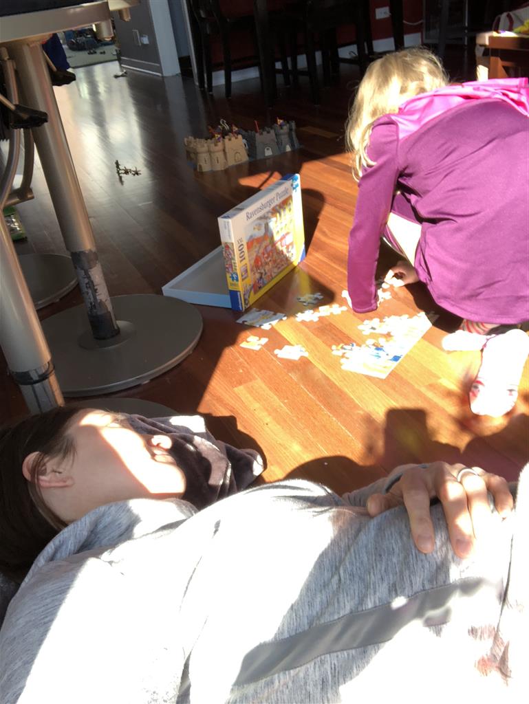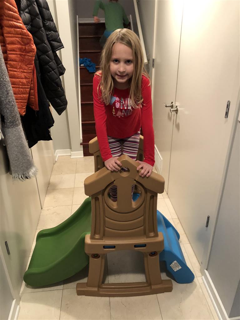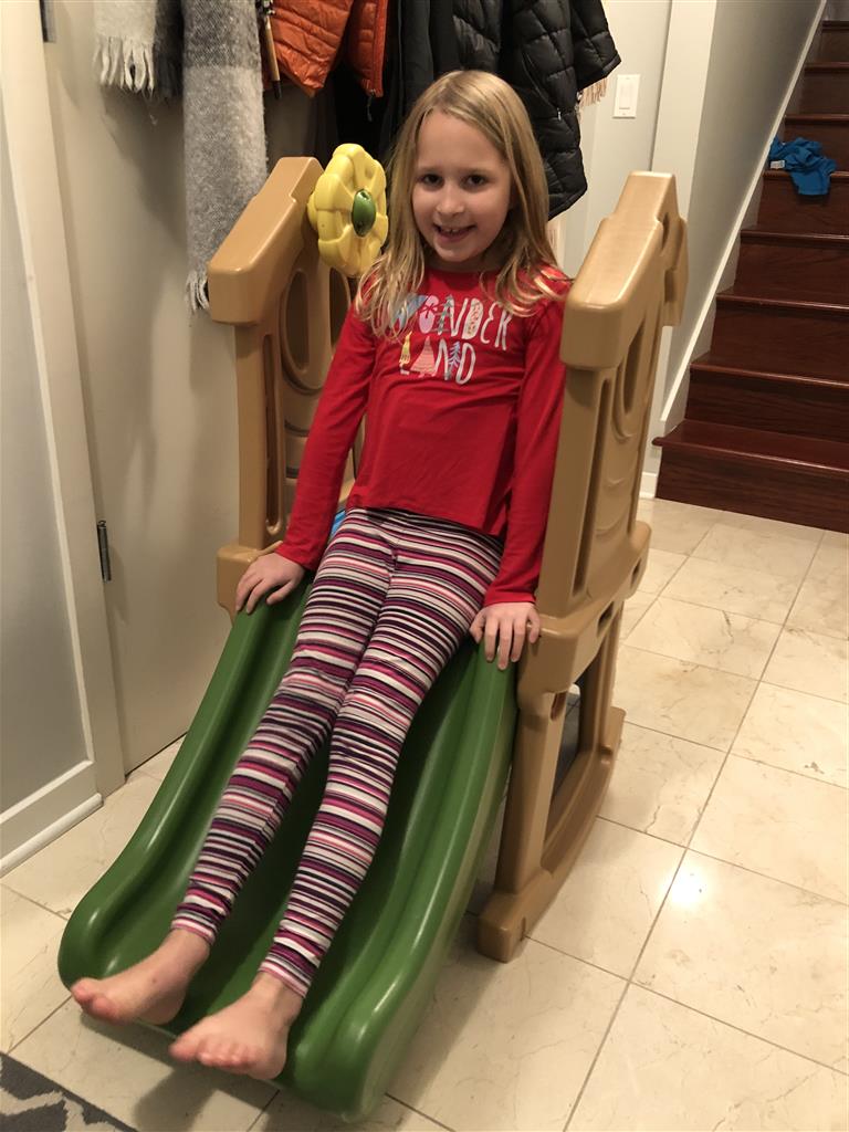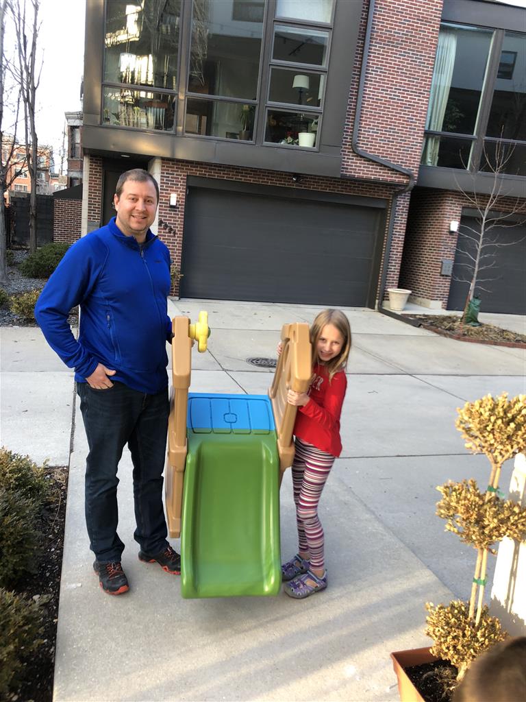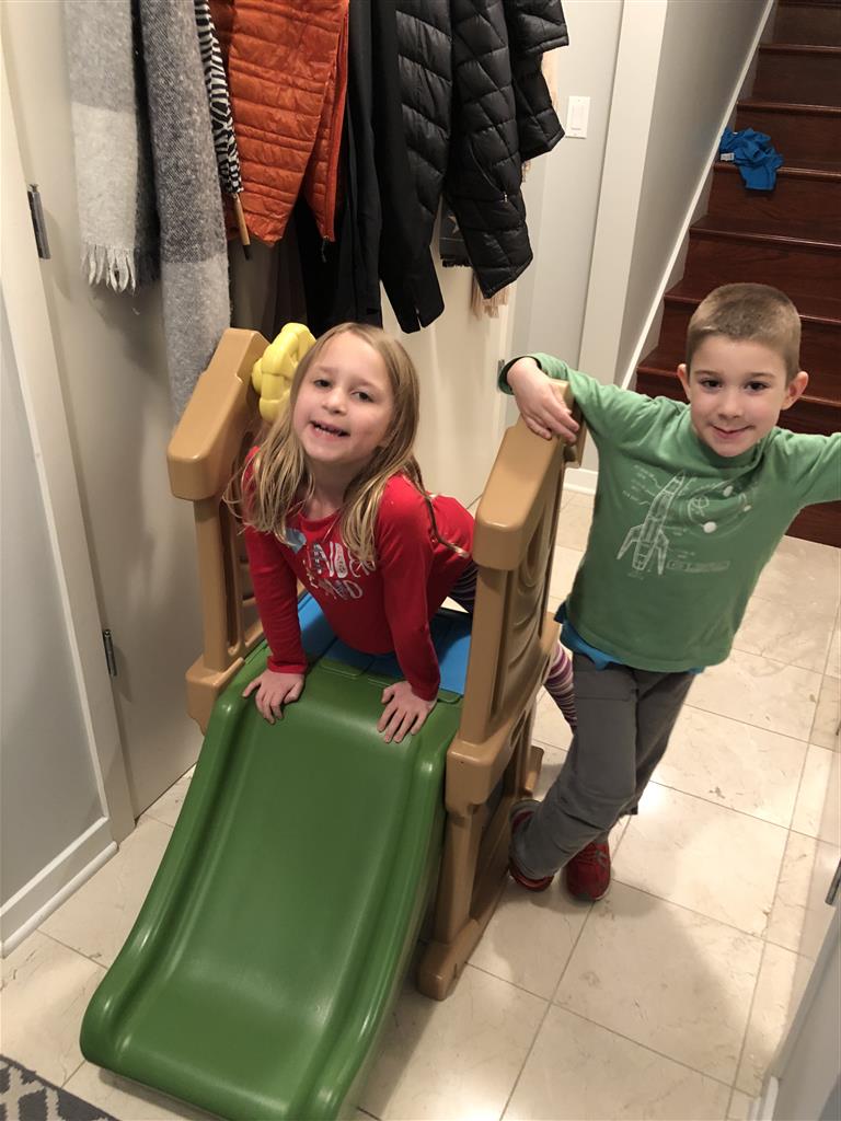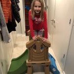 Eleanor and Henry had a week of getting back adjusted to routine. Monday and Tuesday were a little rough, but by the middle of the week they had settled in. On Friday, Eleanor had her first sewing class, which went really well. She ended up being the only student in the class, so she got lots of one on one attention. She decided that her first project would be a dress for Monkey – she didn’t finish it so hopefully next week we will have a picture of the finished product. We had a fun weekend, Henry had a basketball game on Saturday morning, and his team won and he was awarded the coaches medal for the game. He was super excited about it, and very proud of his medal. On Sunday, both kids had birthday parties to go to – Henry’s at an arcade and Eleanor’s at an art studio. Almost forgot, we finally gave away the slide this week – we got it for Eleanor’s first birthday and it served us well. Eleanor really didn’t want to give it away, but it found a great new home with our next door neighbors.