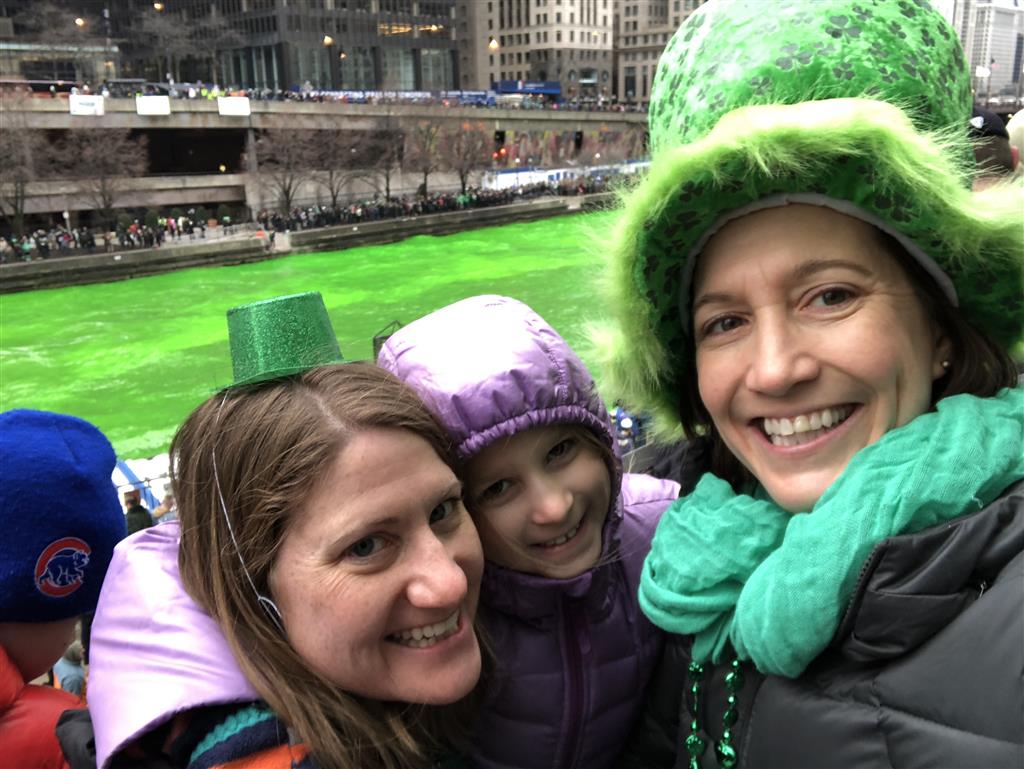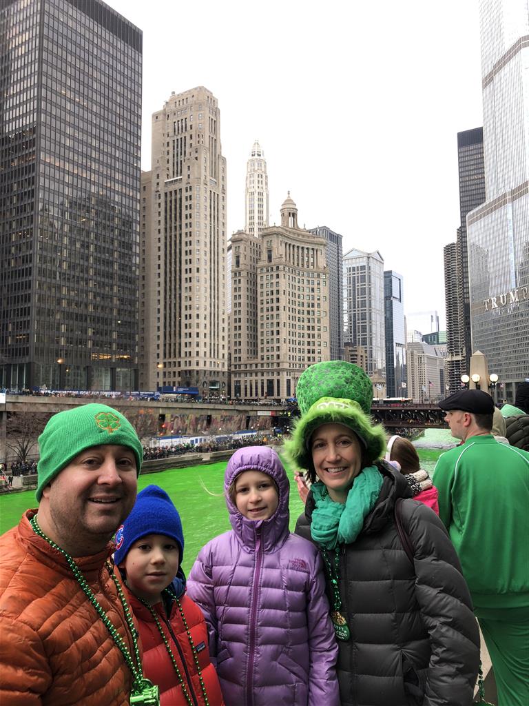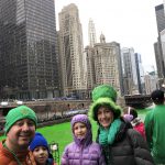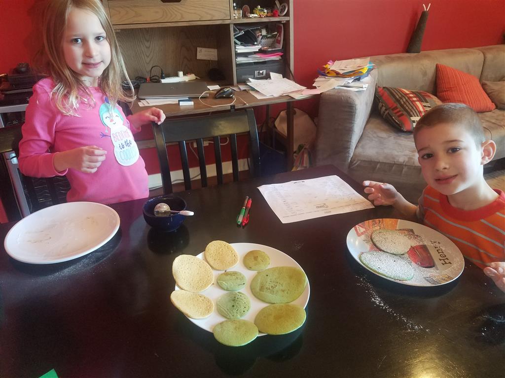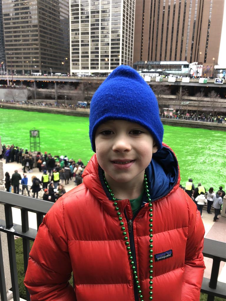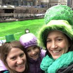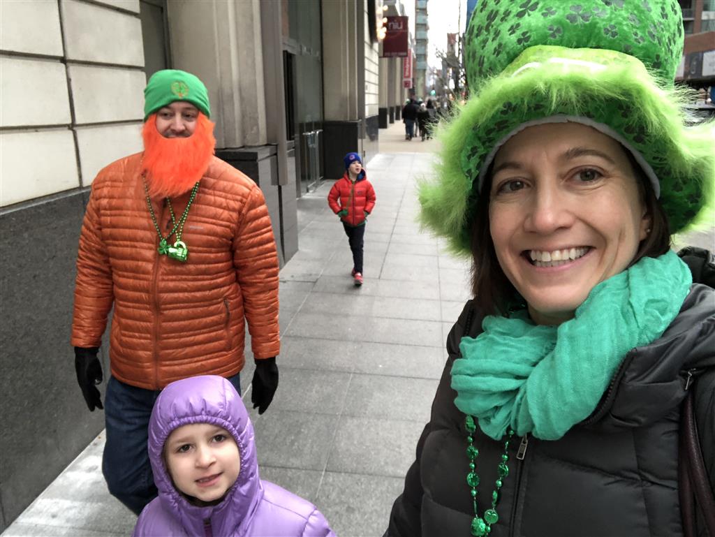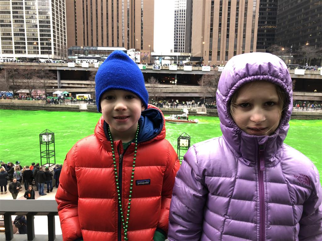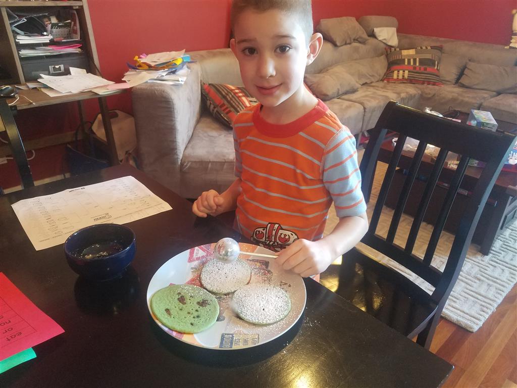 Eleanor and Henry celebrated St. Patrick’s Day with our traditional trip to see the river dyeing. After a nice brunch, Eleanor headed up to a birthday party, and Henry and Dad checked out the parade for the first time. Henry enjoyed it for a while, but was ready to leave about half way through. On Sunday, we enjoyed some warmer weather with some bike riding, scootering and basketball in the driveway. Oh yeah, and we had green pancakes.