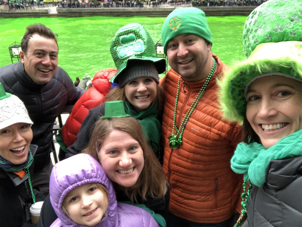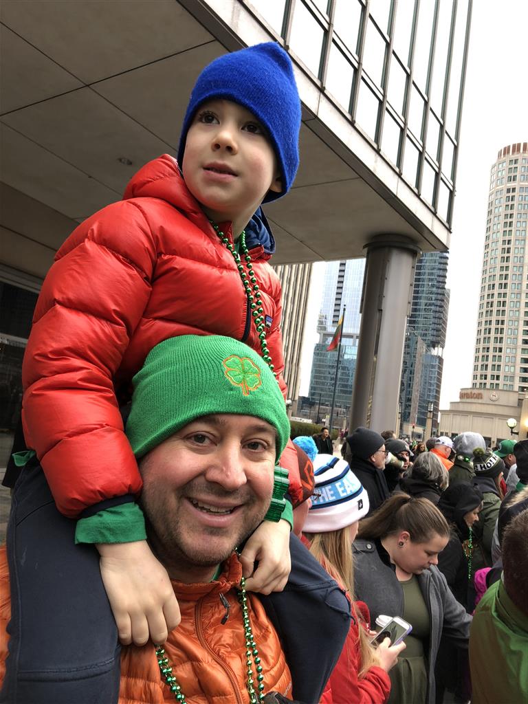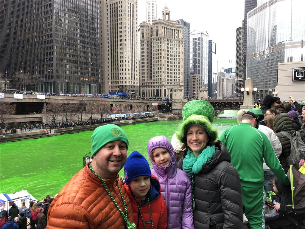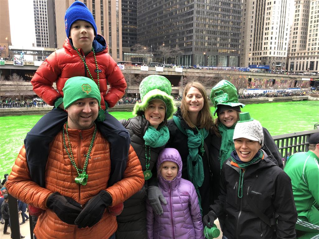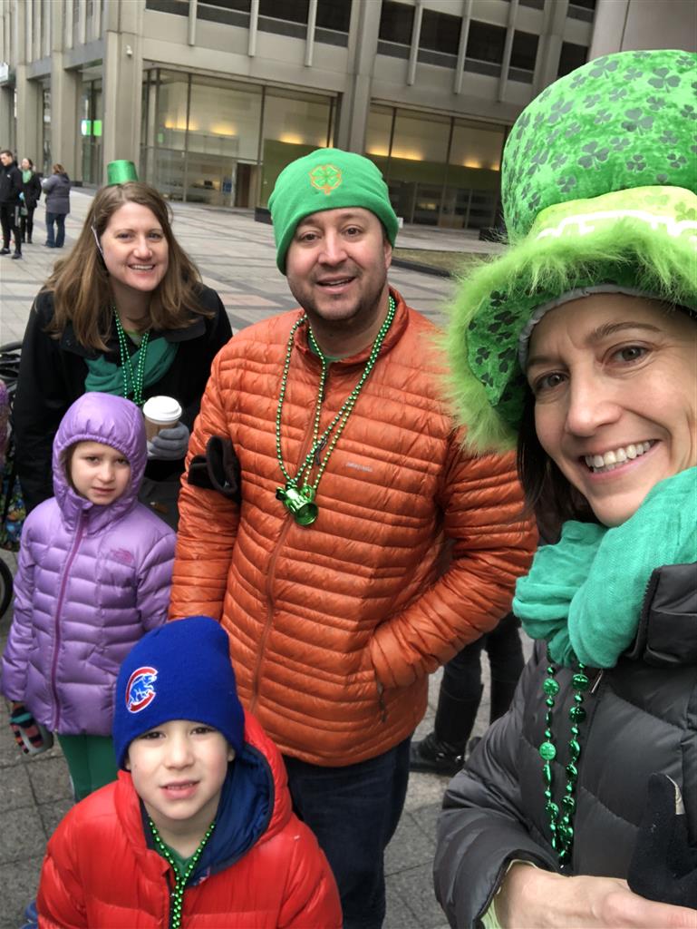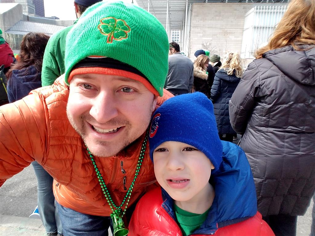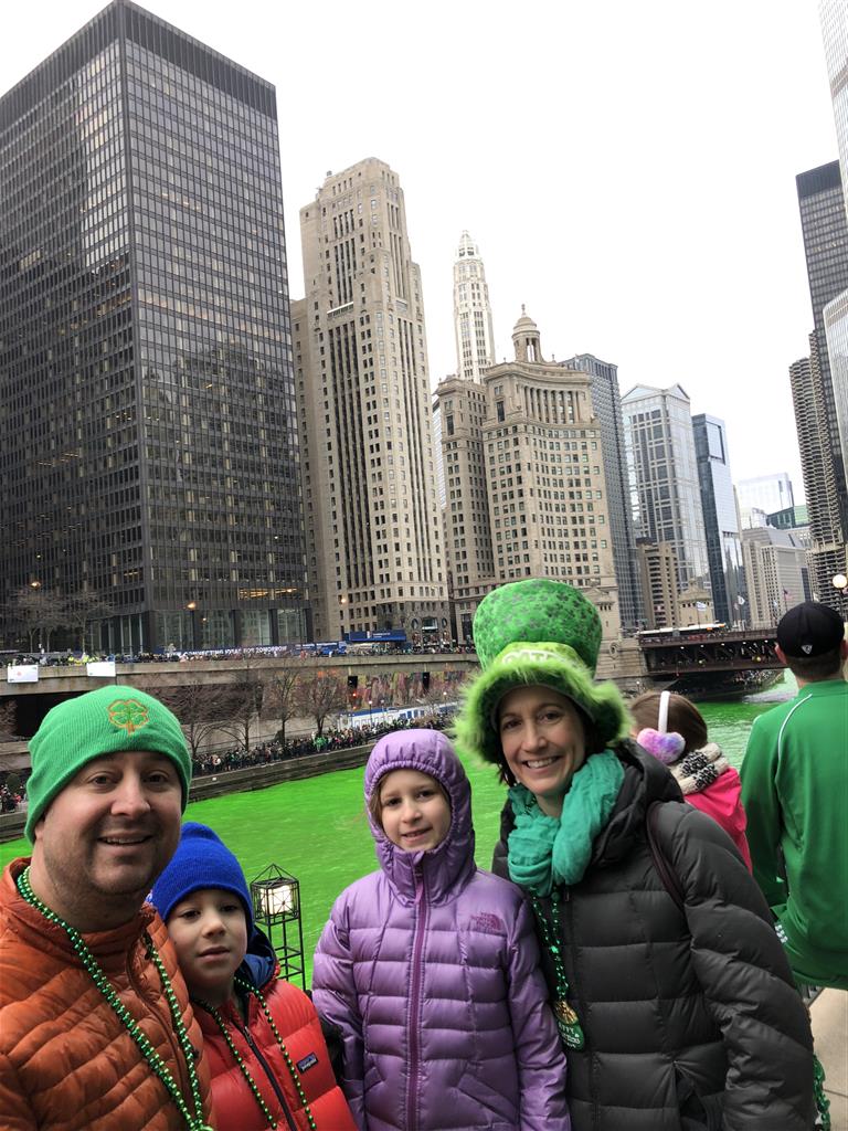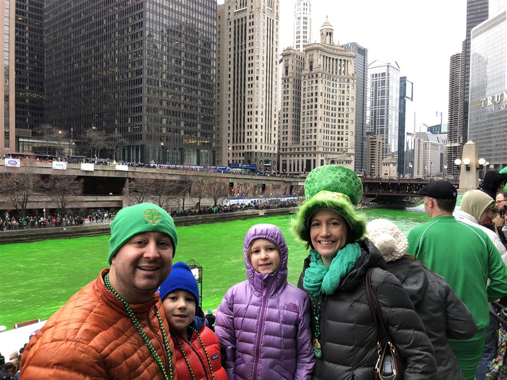 Eleanor and Henry celebrated St. Patrick’s Day with our traditional trip to see the river dyeing. After a nice brunch, Eleanor headed up to a birthday party, and Henry and Dad checked out the parade for the first time. Henry enjoyed it for a while, but was ready to leave about half way through. On Sunday, we enjoyed some warmer weather with some bike riding, scootering and basketball in the driveway. Oh yeah, and we had green pancakes.