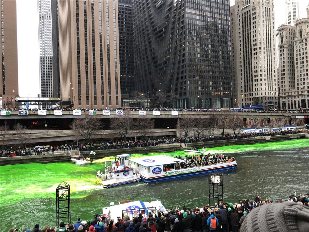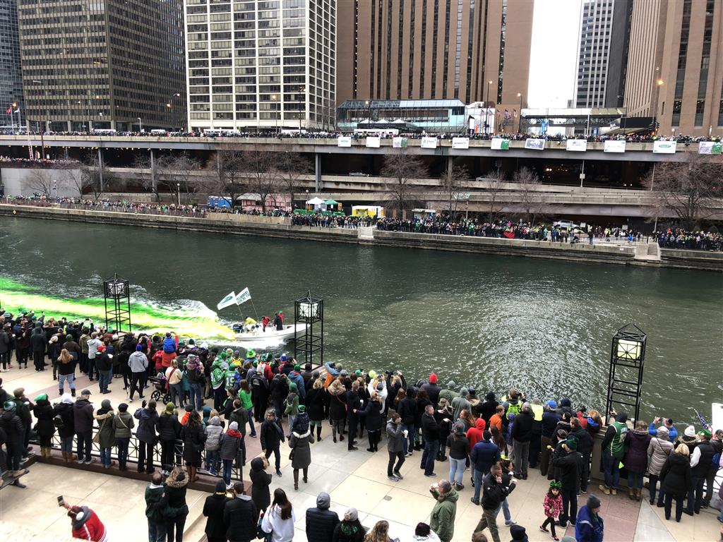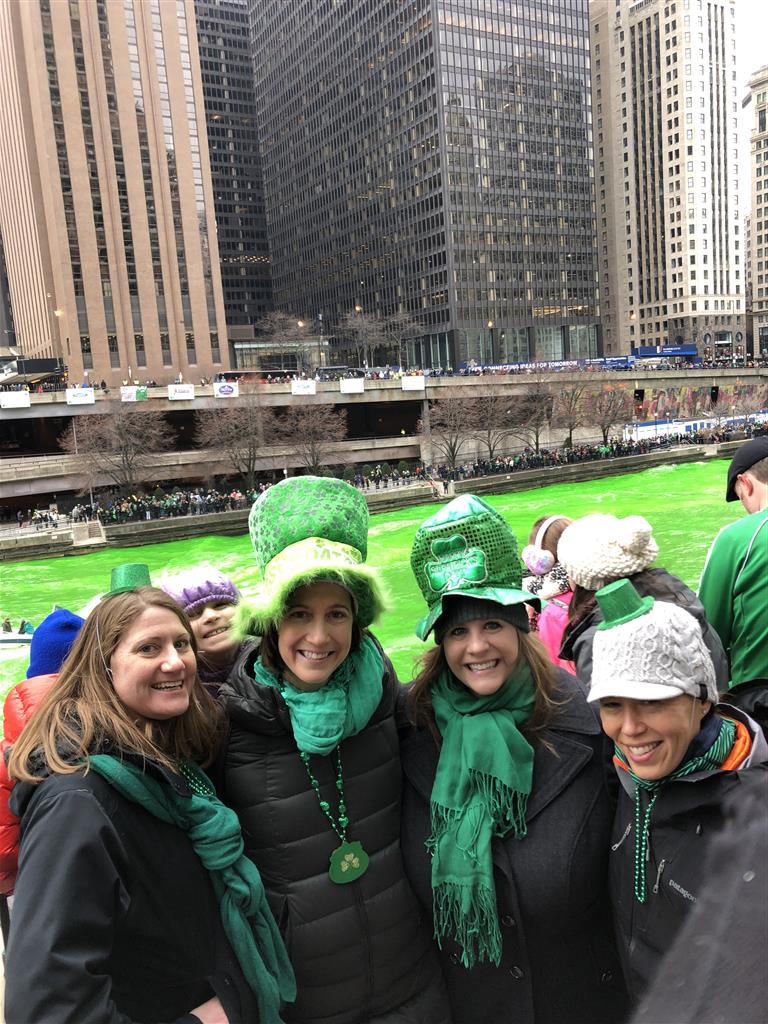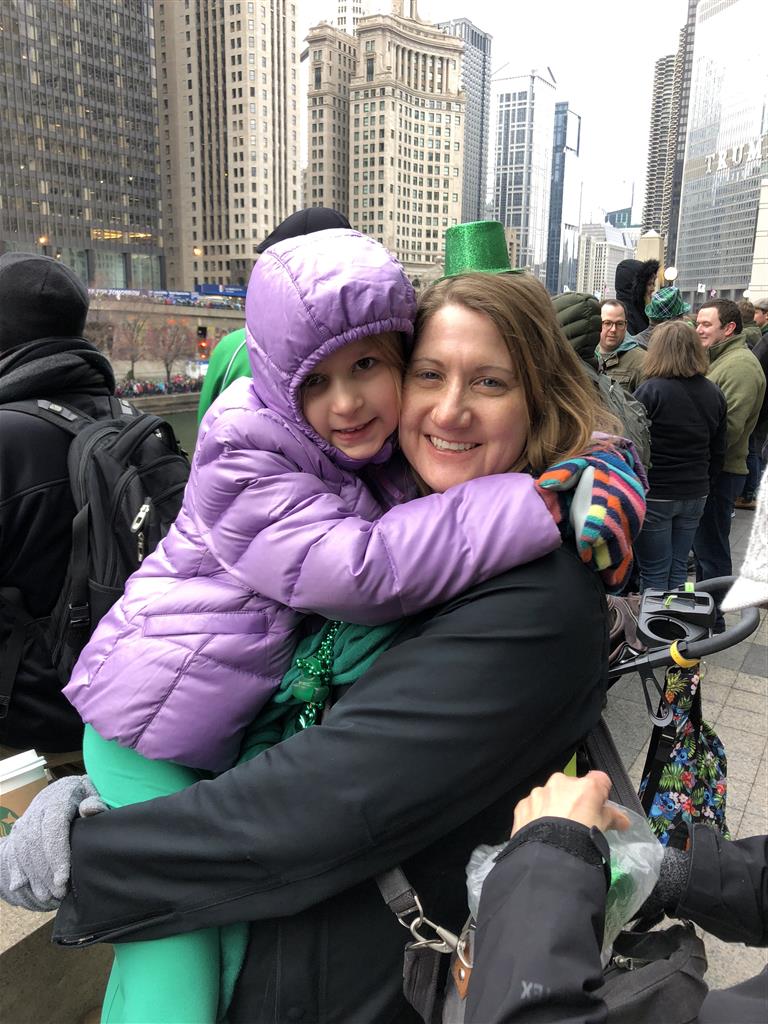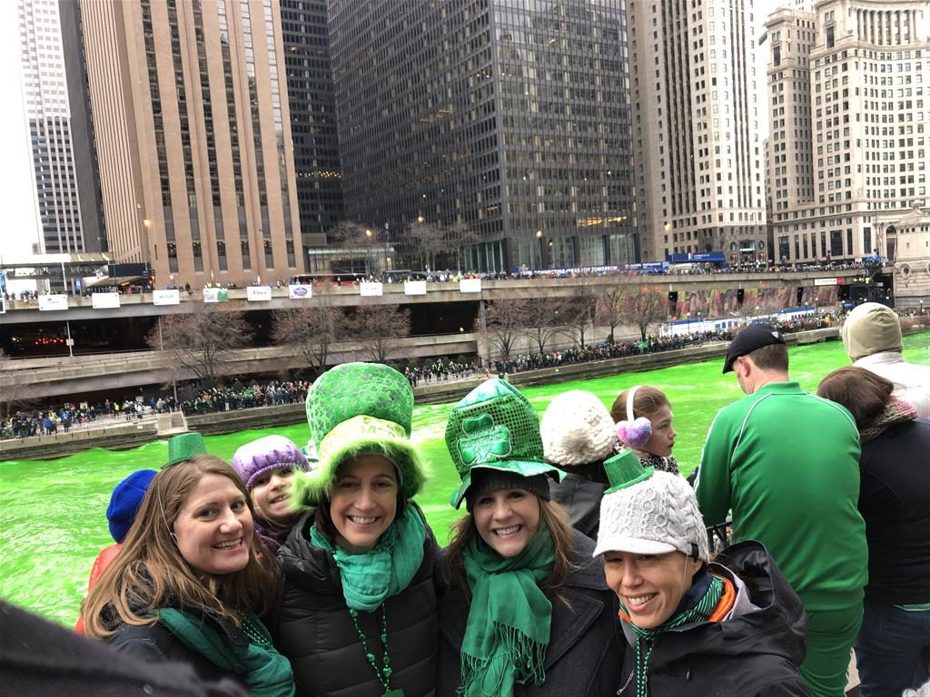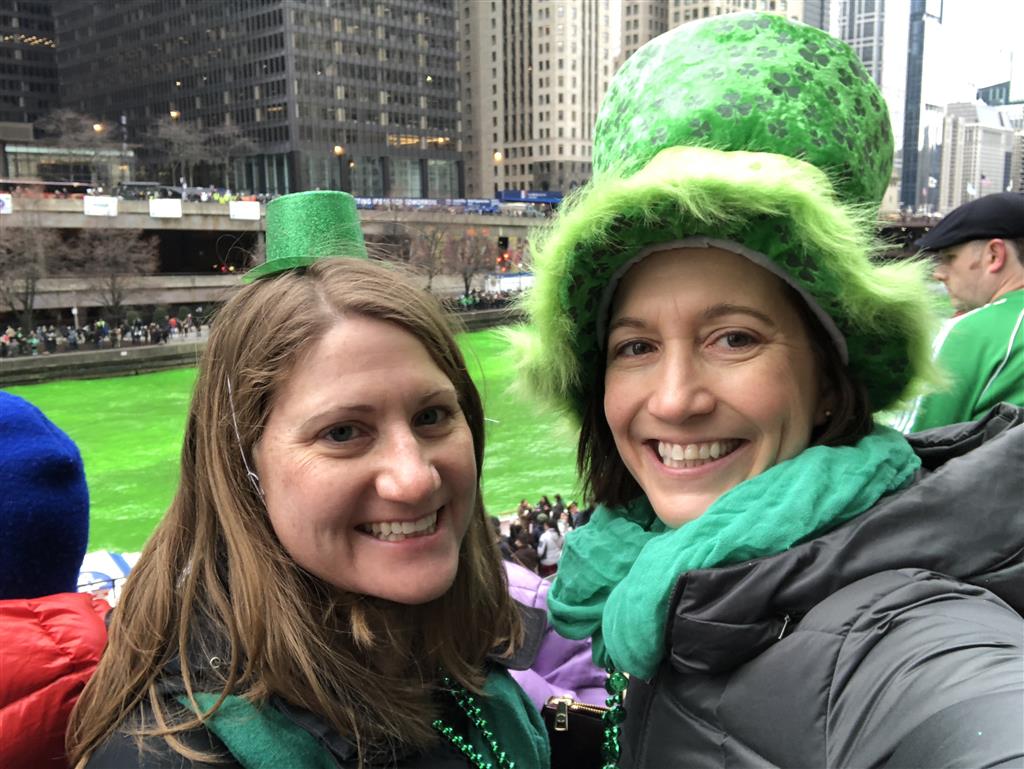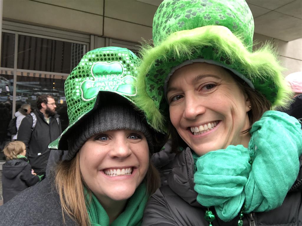 Eleanor and Henry celebrated St. Patrick’s Day with our traditional trip to see the river dyeing. After a nice brunch, Eleanor headed up to a birthday party, and Henry and Dad checked out the parade for the first time. Henry enjoyed it for a while, but was ready to leave about half way through. On Sunday, we enjoyed some warmer weather with some bike riding, scootering and basketball in the driveway. Oh yeah, and we had green pancakes.